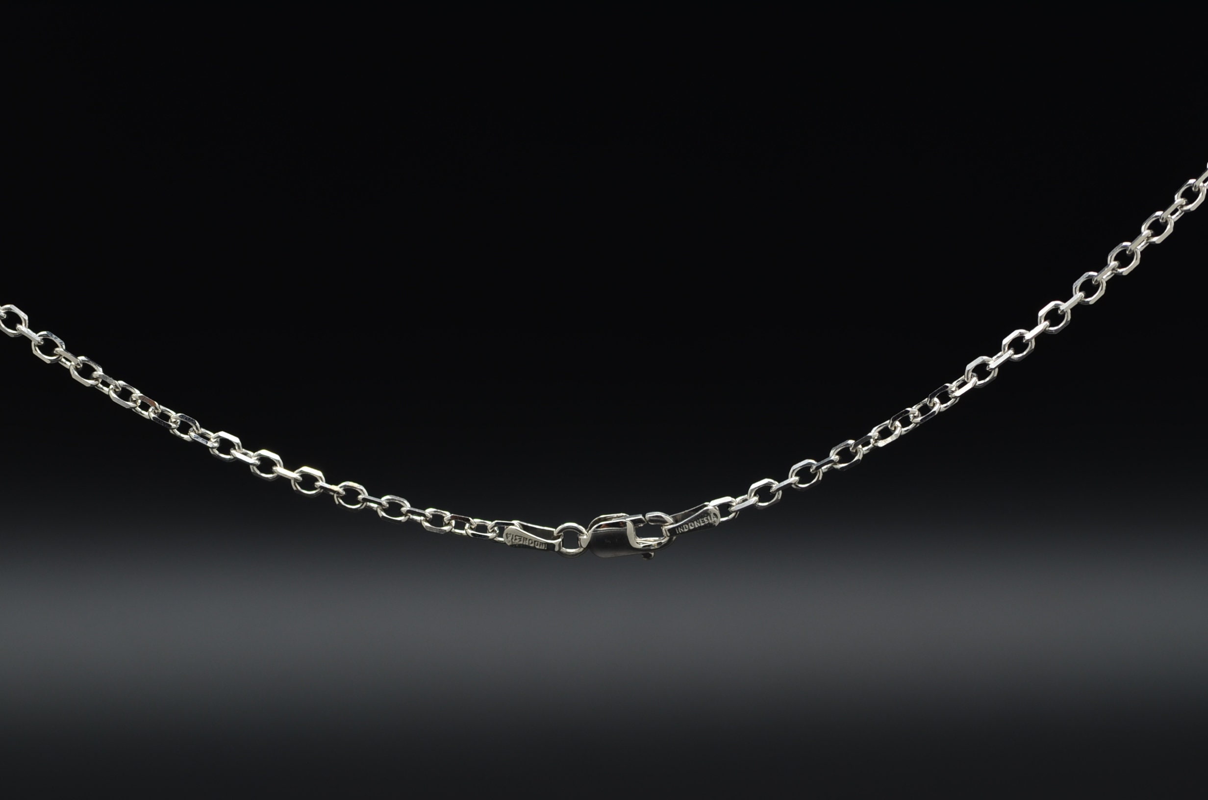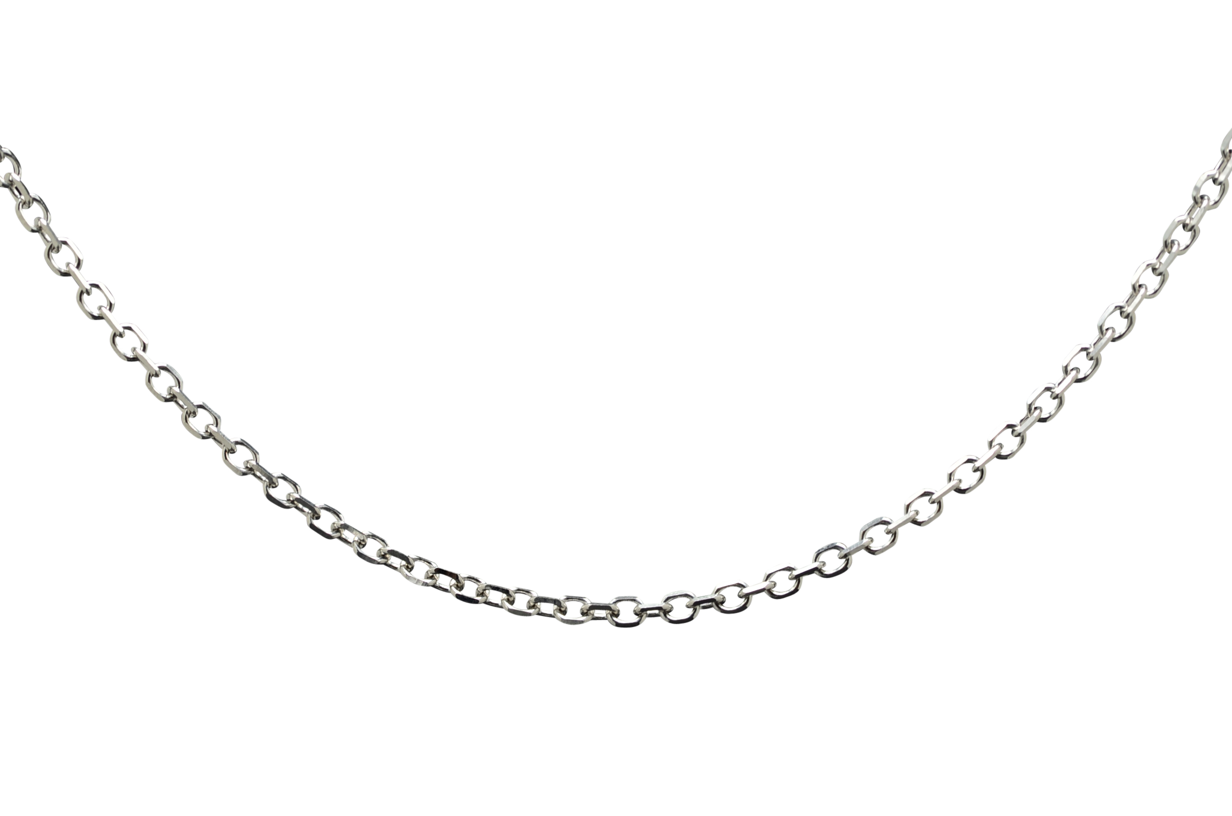 14K White Gold Cable Link Chain. This 18 inch necklace features a lobster style clasp and is smooth to wear.