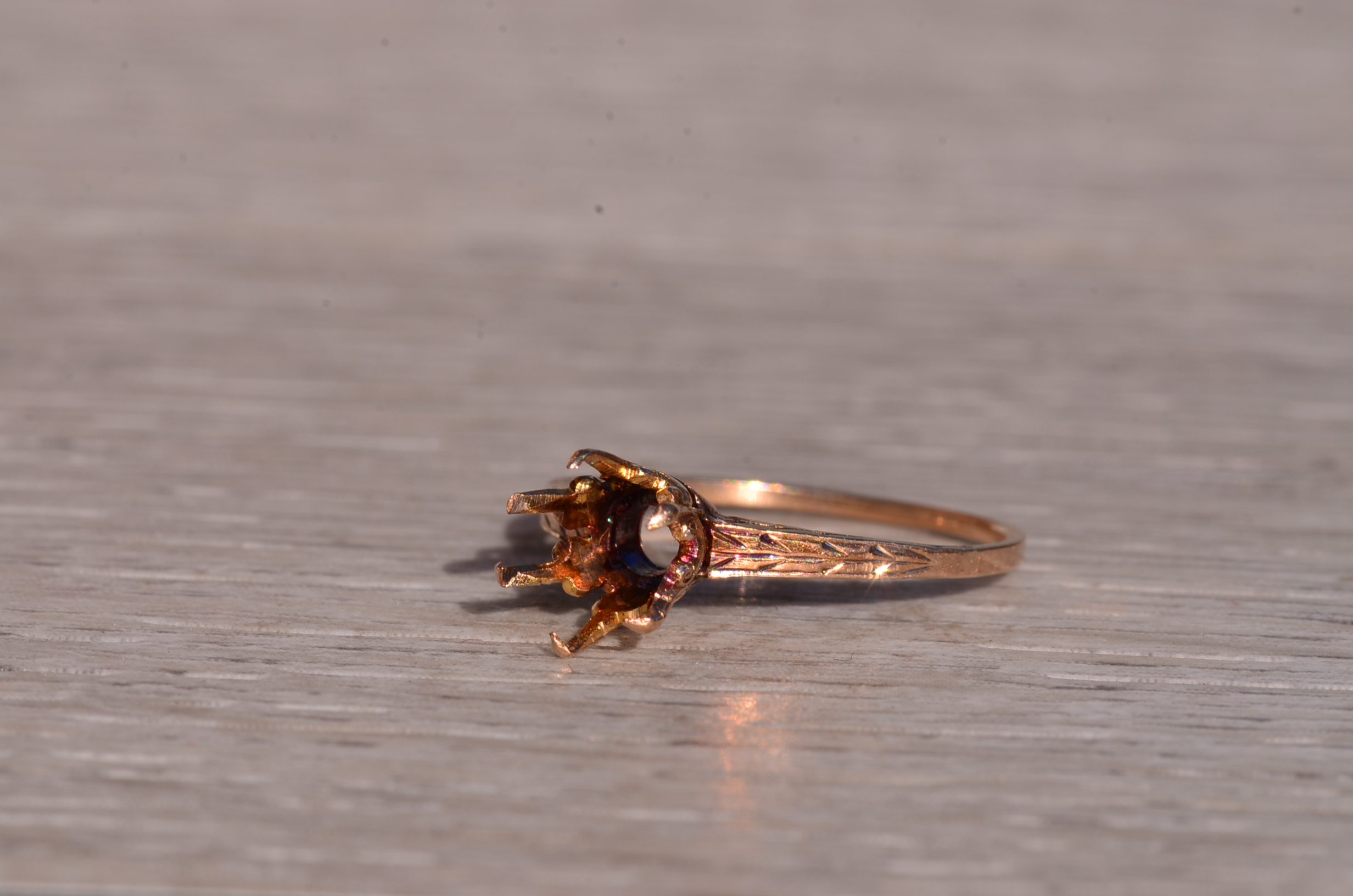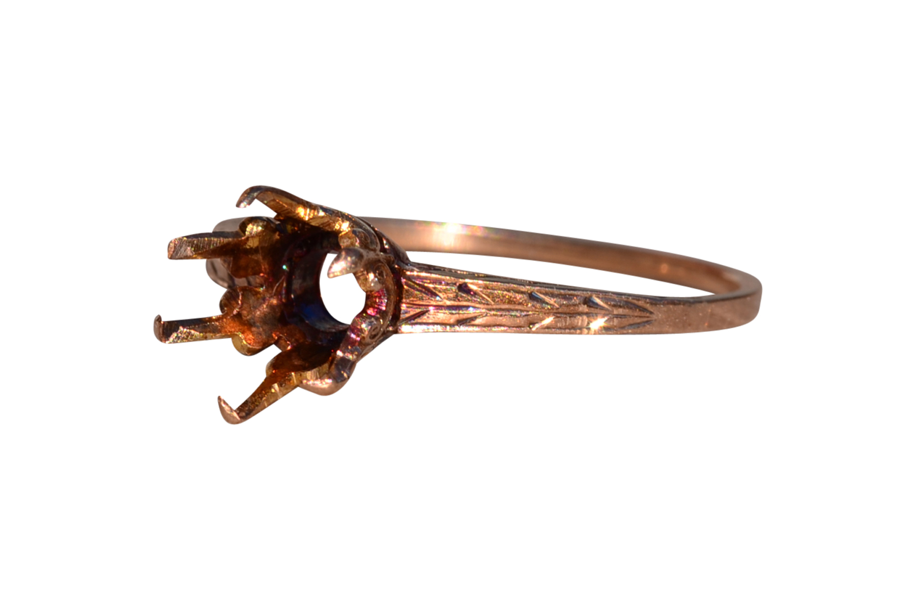 Antique Art Deco Era Rose Gold Engagement Ring Mounting in 14 karat rose gold.
