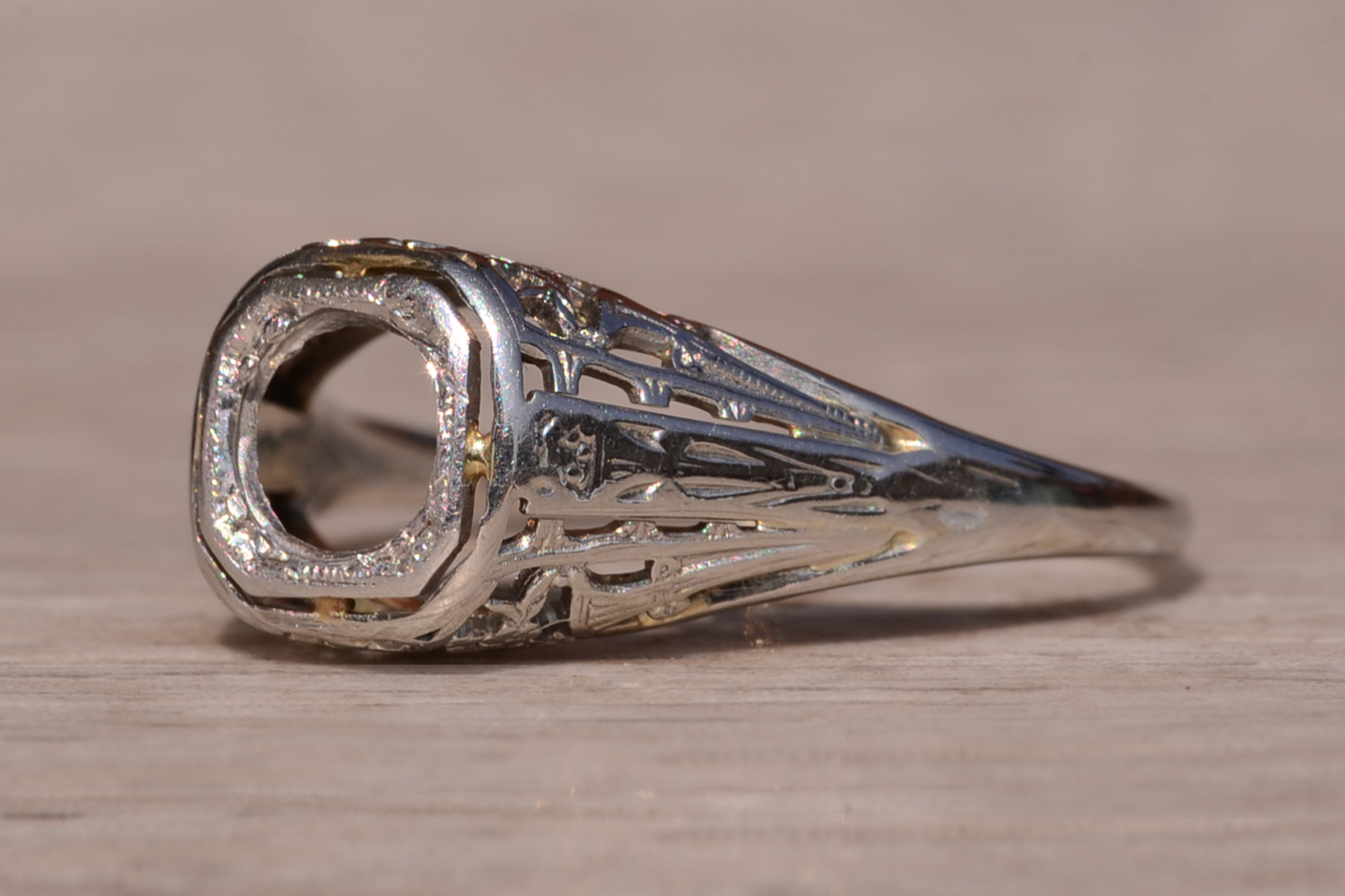 Antique Filigree Mounting in 18 karat White Gold.