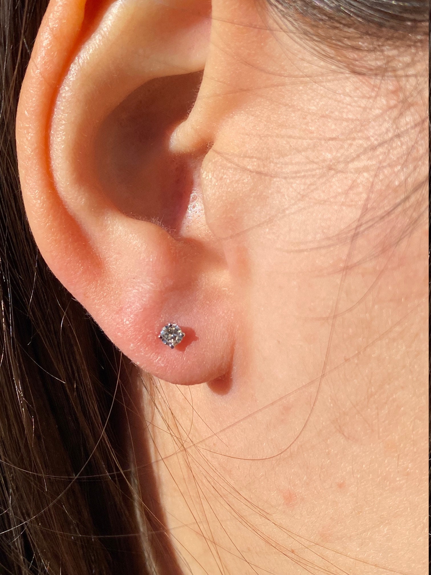 Ladies 14K White Gold 0.28CTW Diamond Stud Earrings. Classic and simple in style, these stud earrings feature 0.28 total carats of diamonds. The diamonds measure 3.25mm in width and have an approximate Gemological Institute of America clarity grade of SI1 and a color grade of I. The earrings are complete with standard posts and push style backings.