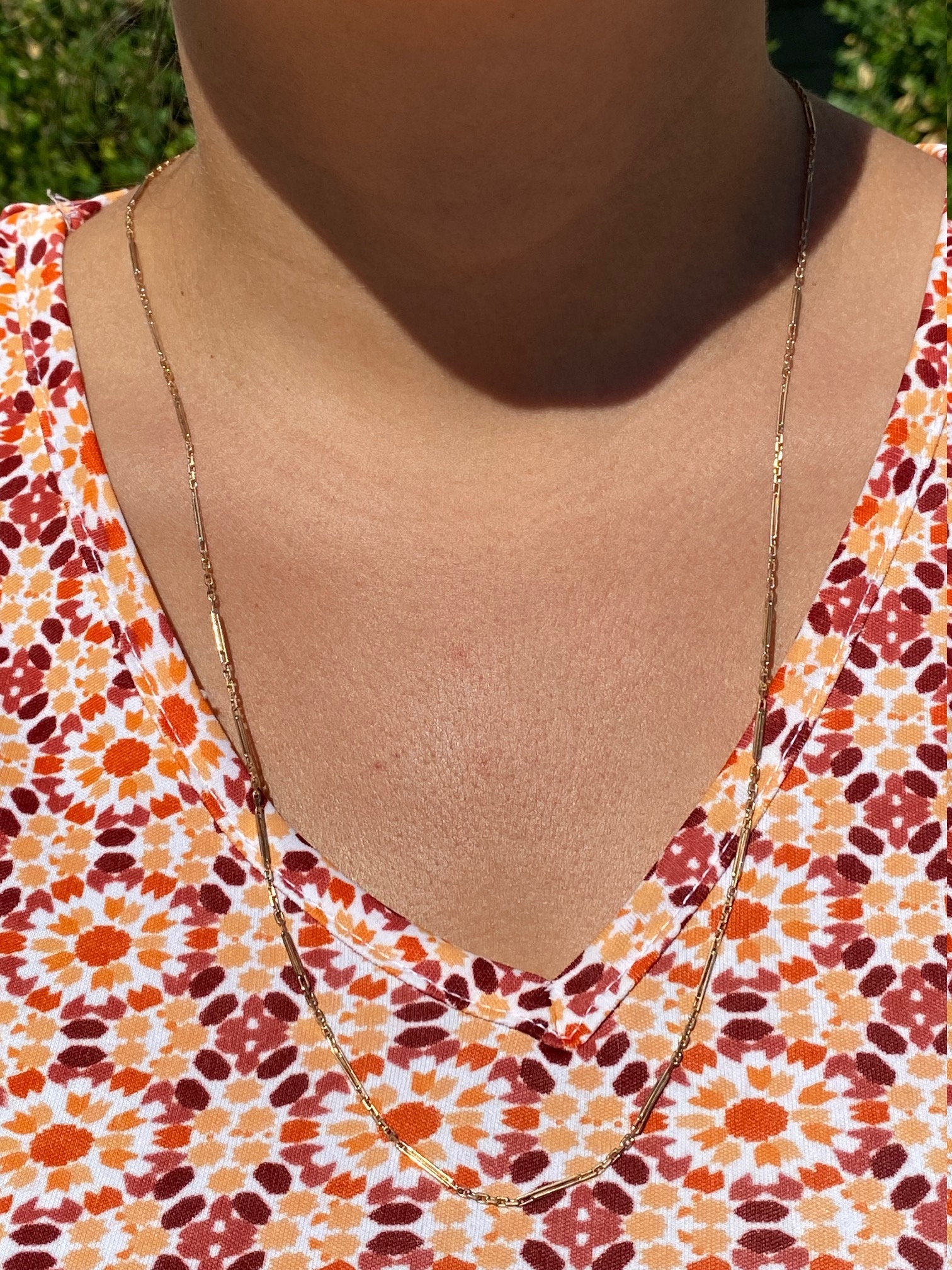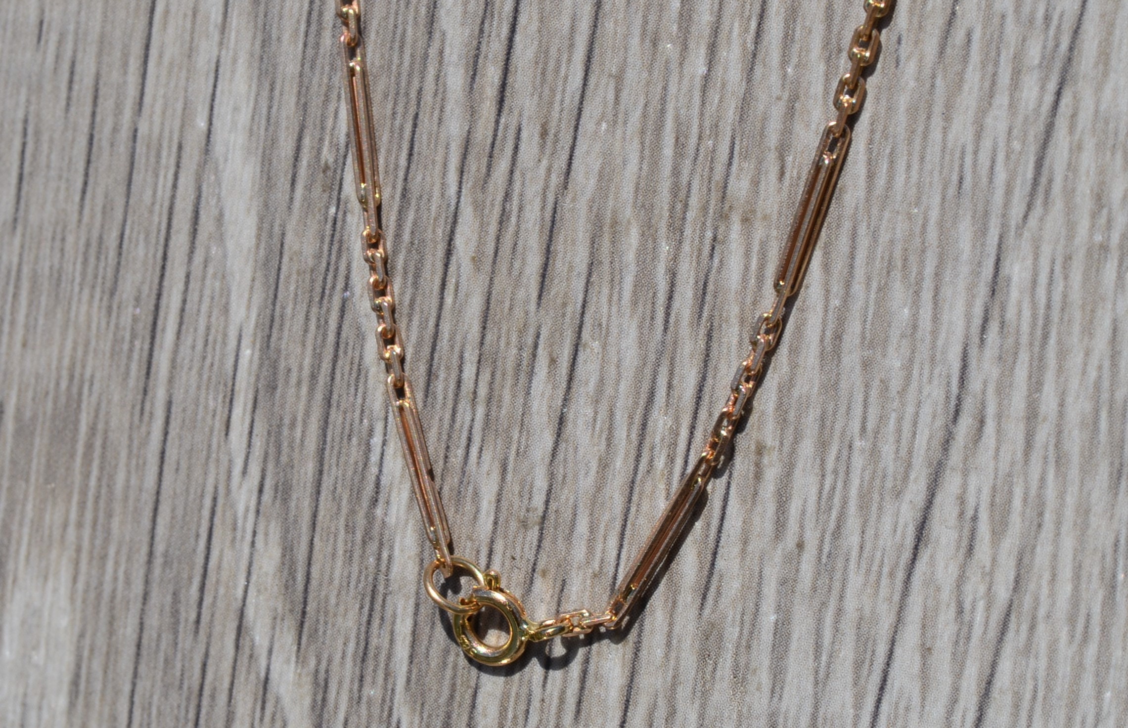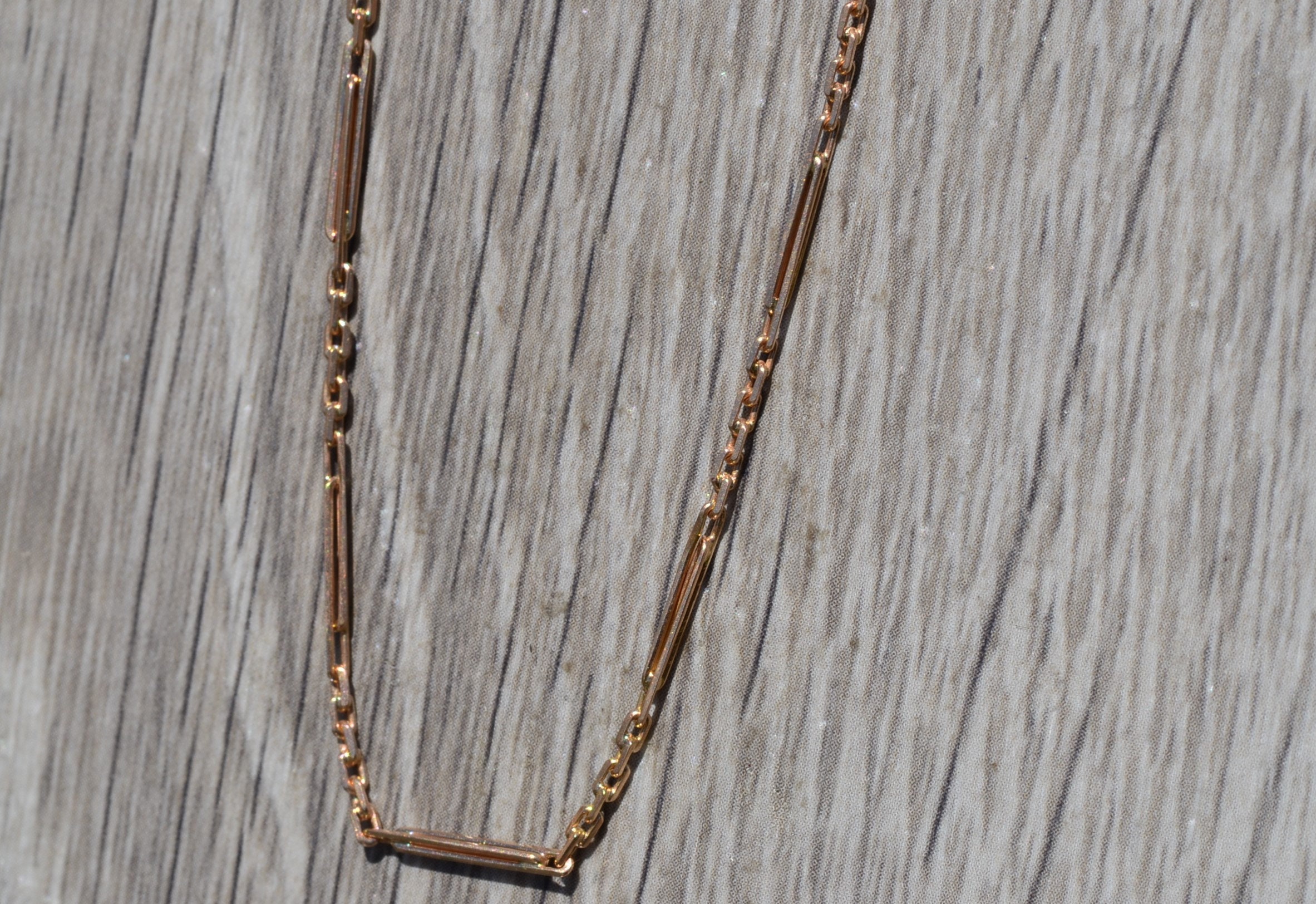 Ladies Antique Station Chain in 14K Rose Gold. Crafted in 14 karat rose gold, this unique station chain measures 28 inches in length and is very well made. Layer this chain or wear it by itself, the choice is yours!