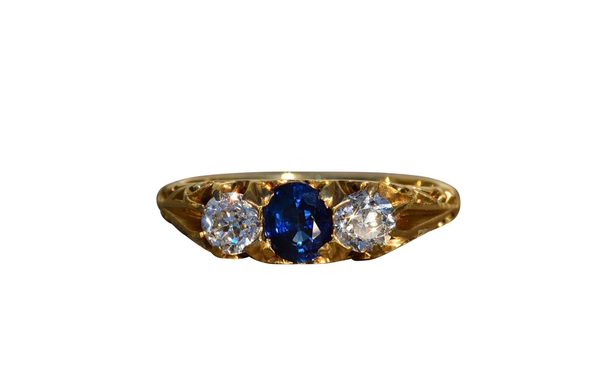 SOLD: The Buren: Antique Tiffany & Co. Sapphire and Diamond Trilogy Ring in Yellow Gold