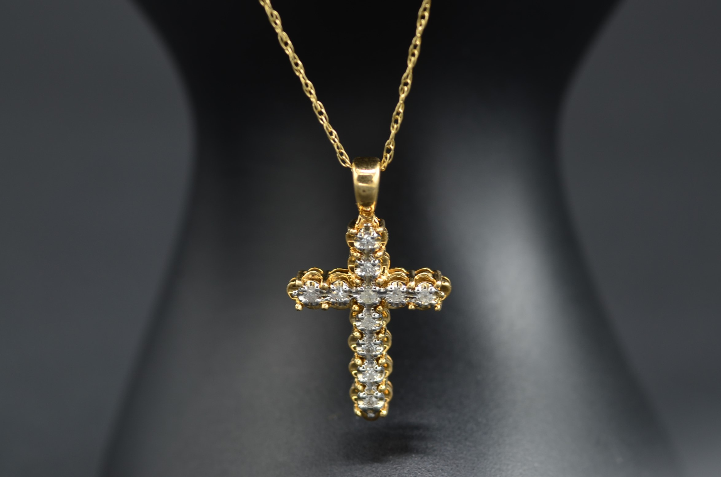 SOLD – The Challis: Vintage 14 Karat Yellow Gold Cross Pendant set with Diamonds