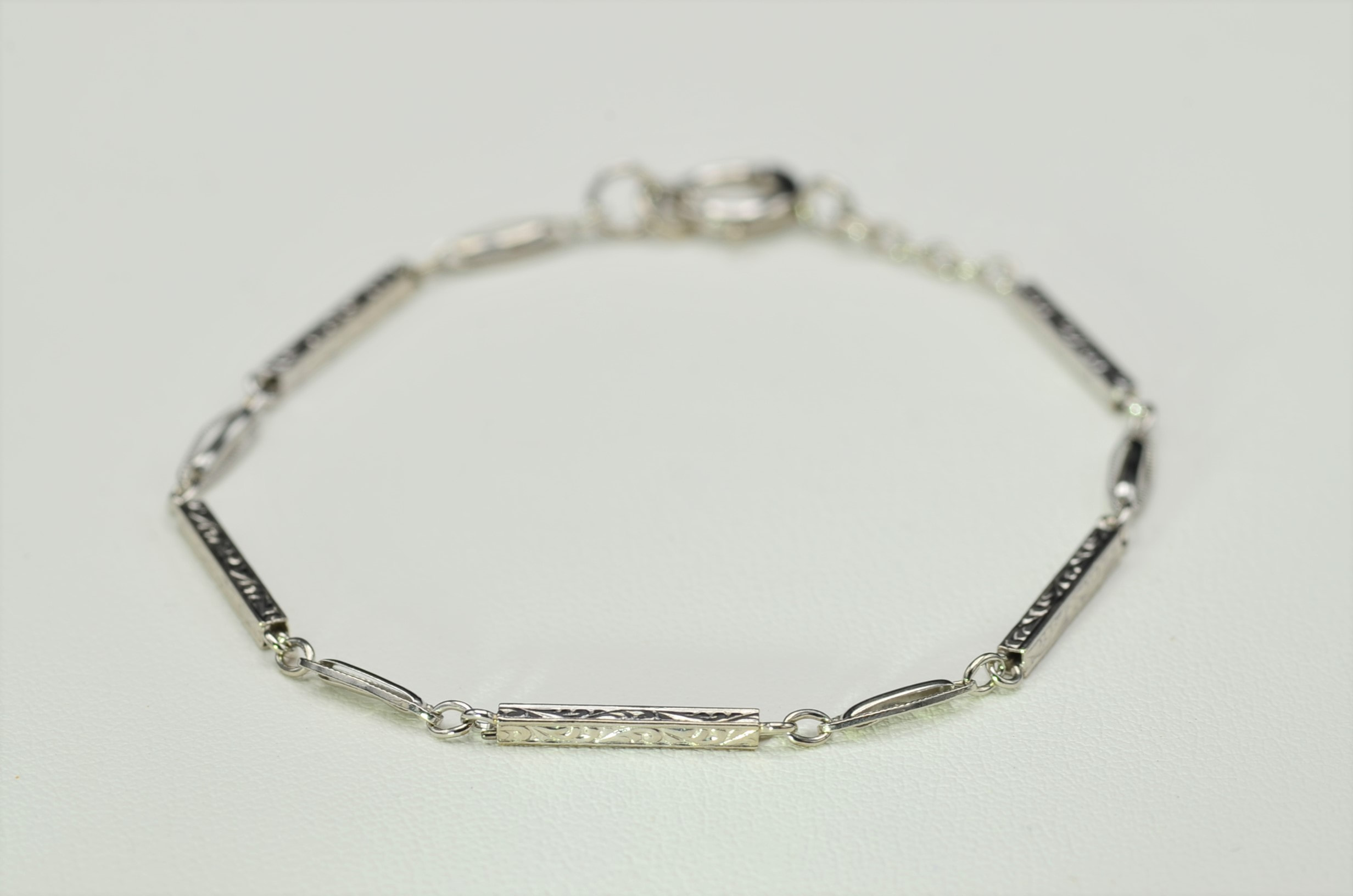 SOLD – The Valdo: Ladies Antique White Gold Hand Engraved Hand Made Bracelet