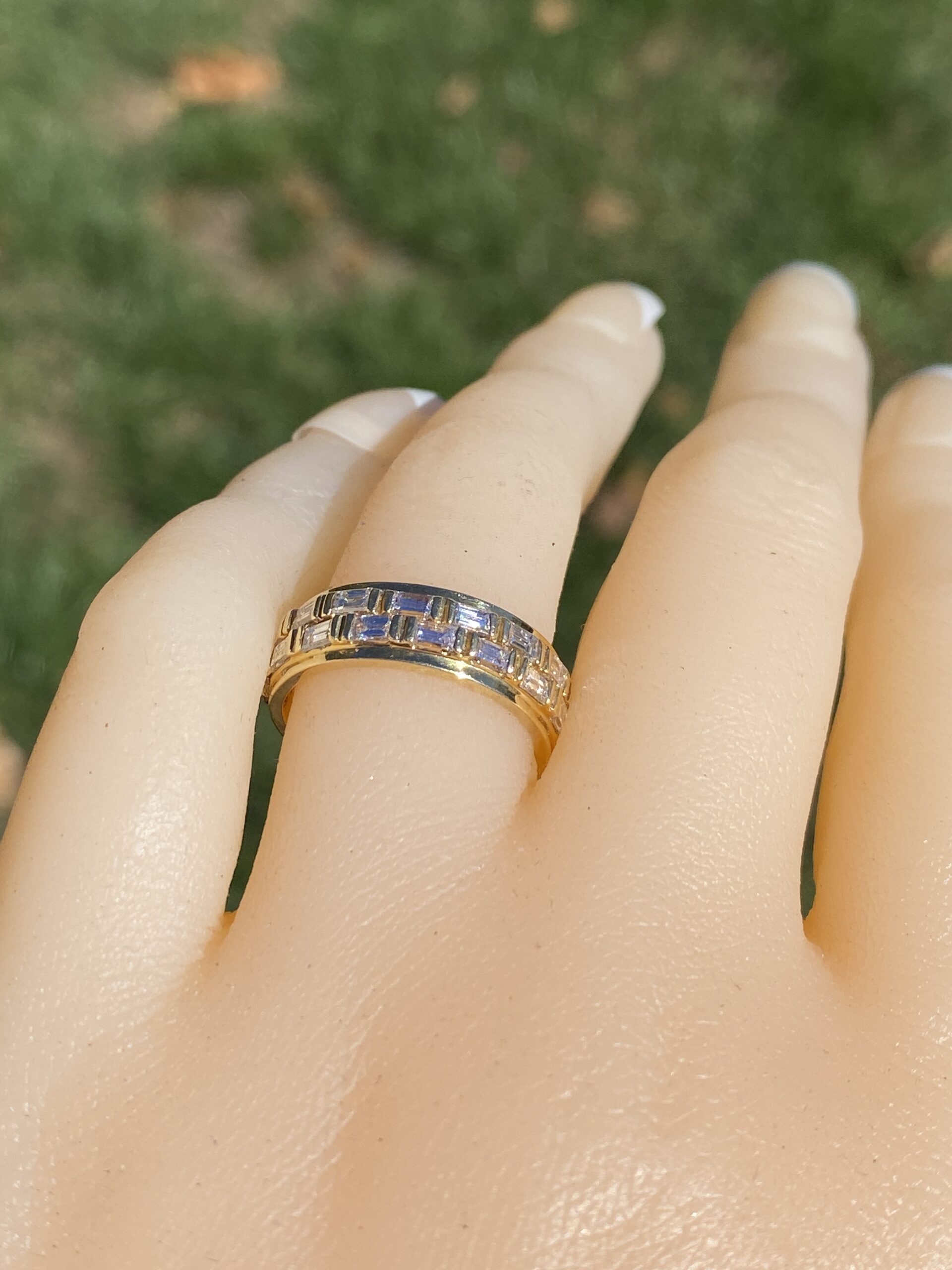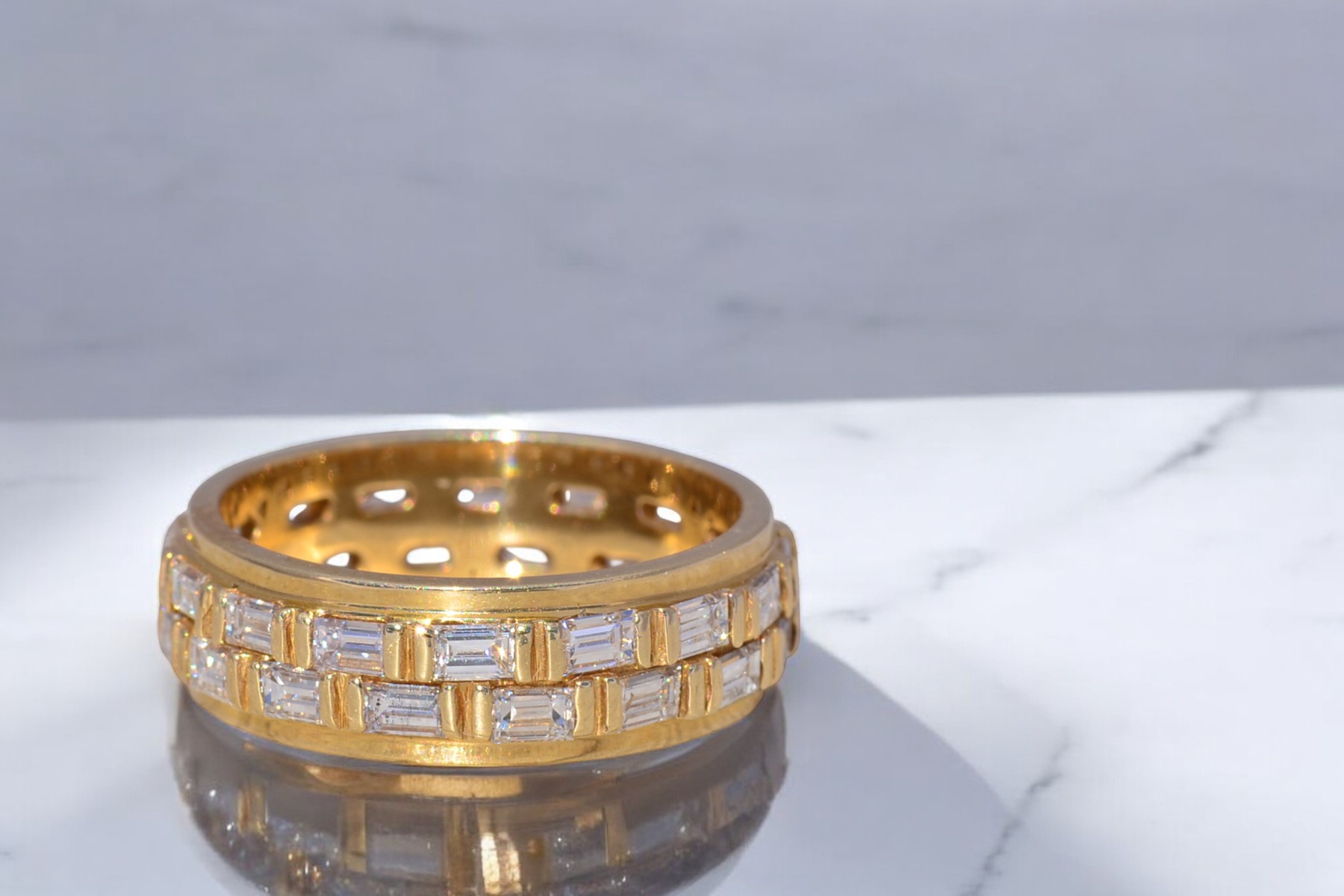 The Baguette Elegance: Straight Baguette Cut Natural Diamond Eternity Band in Yellow Gold