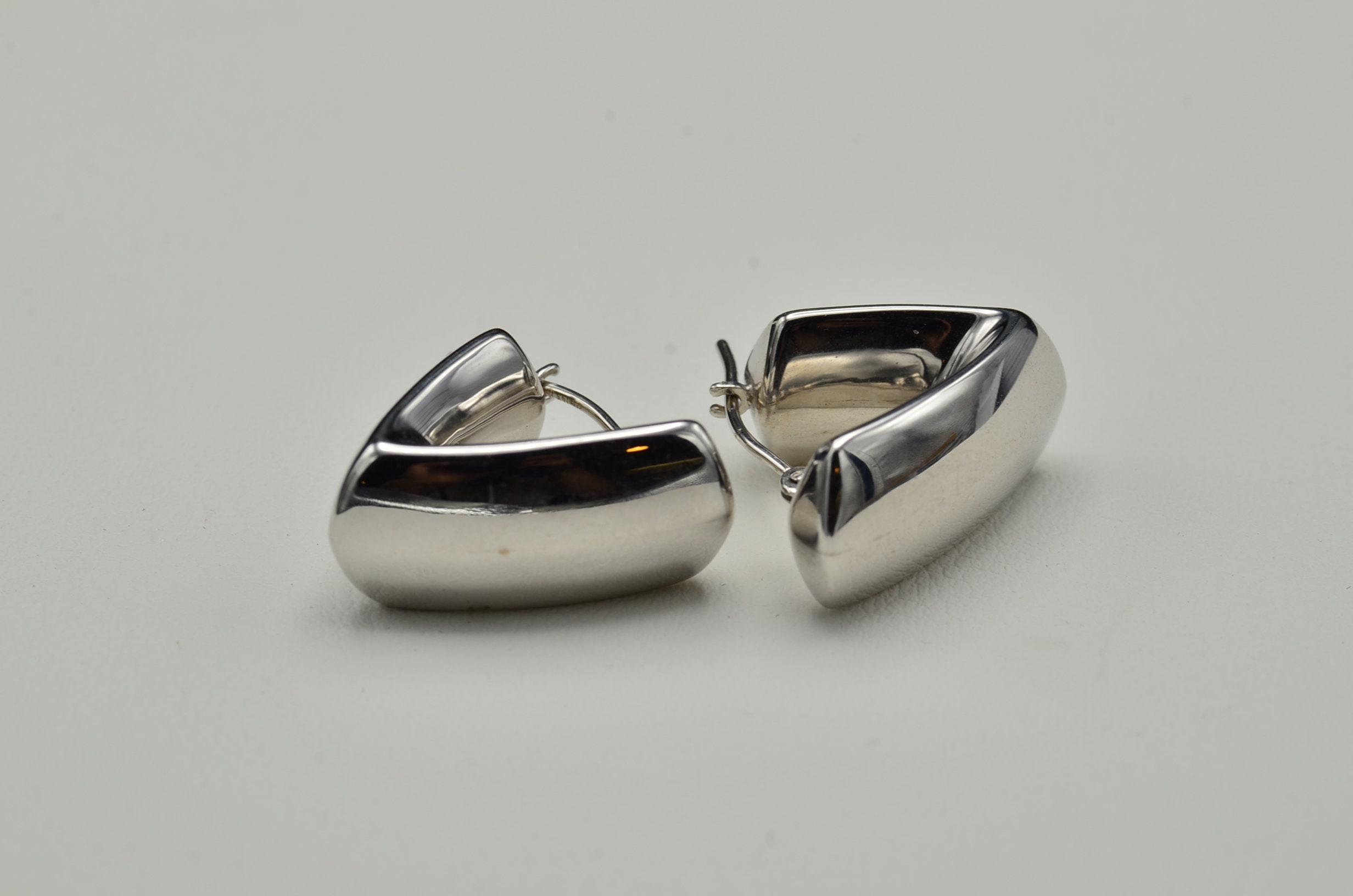 Ladies Polished 14K White Gold Drop Earrings. These lightweight, yet bold earrings are crafted in 14 karat white gold and measure approximately 0.75 inches in height.