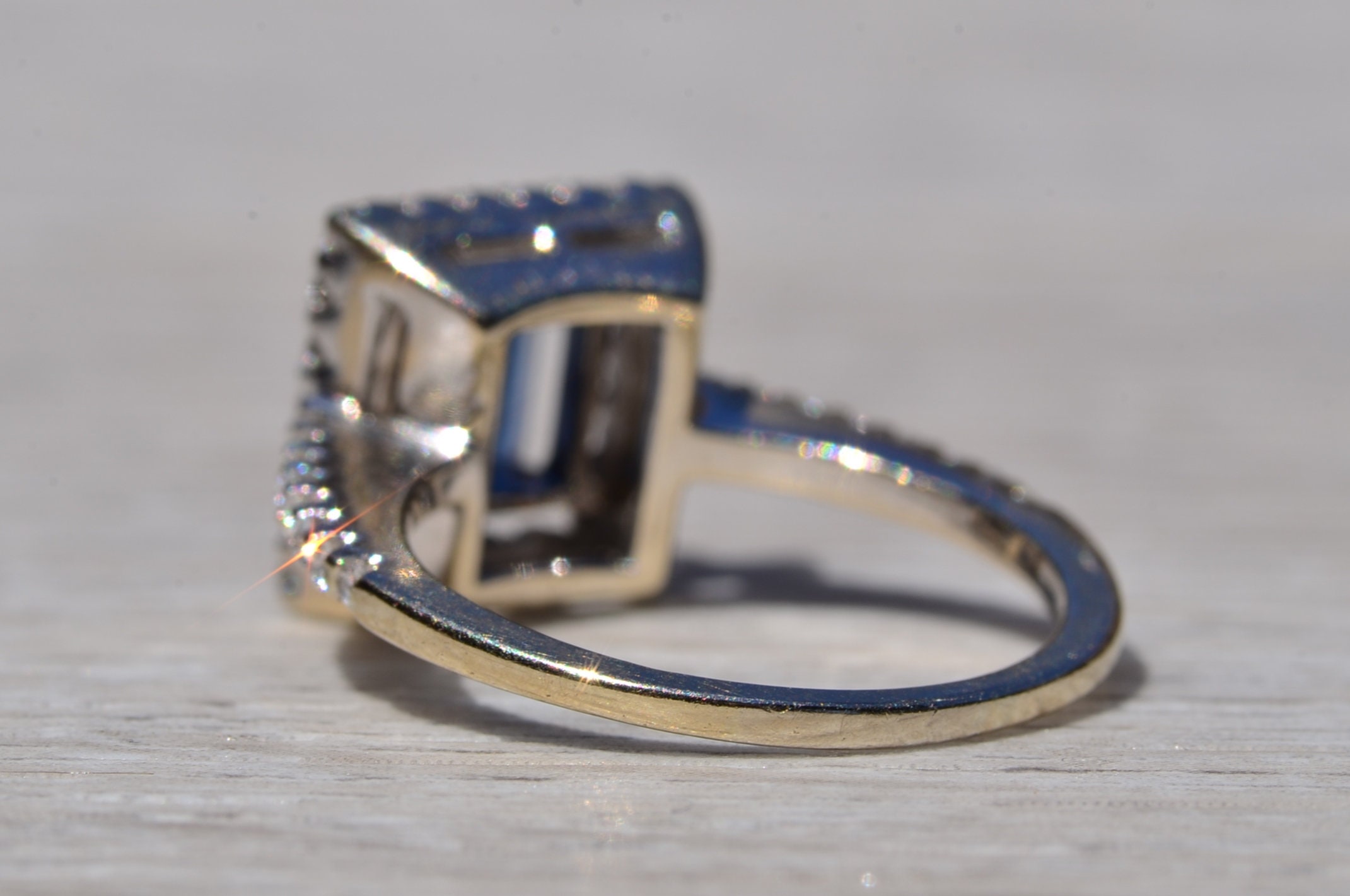 The Bell Mountain: Diffused Emerald Cut Blue Sapphire Engagement Ring and Wedding Set with Custom Band - Image 9