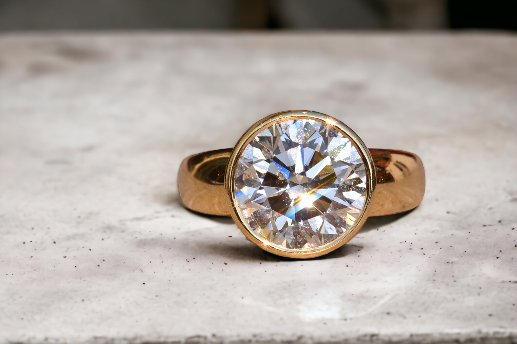 You're viewing: The Bezeler: Bezel Set Round Brilliant Cut Natural Diamond Engagement Ring in Yellow Gold $57,212.16