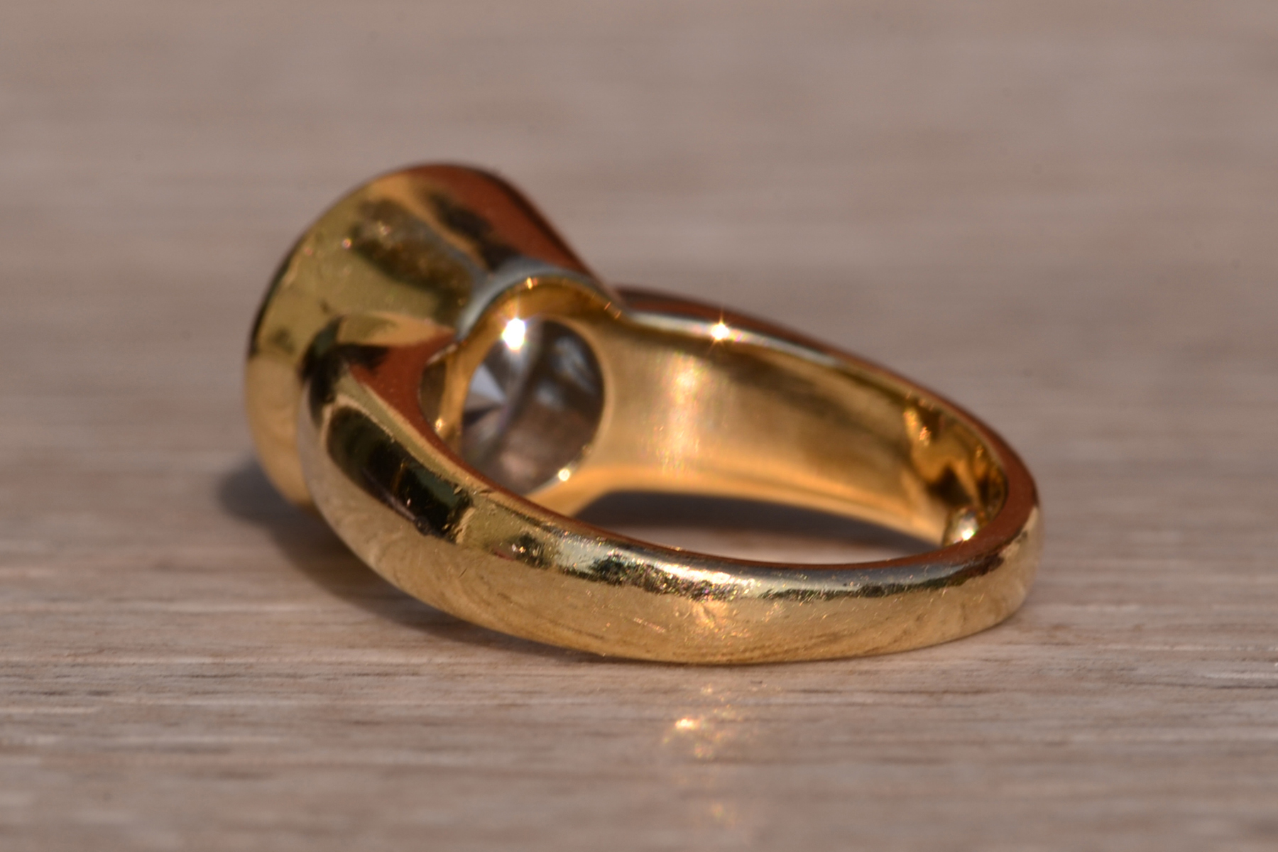 The Bezeler:  Bezel Set Round Brilliant Cut Natural Diamond Engagement Ring in Yellow Gold - Image 2