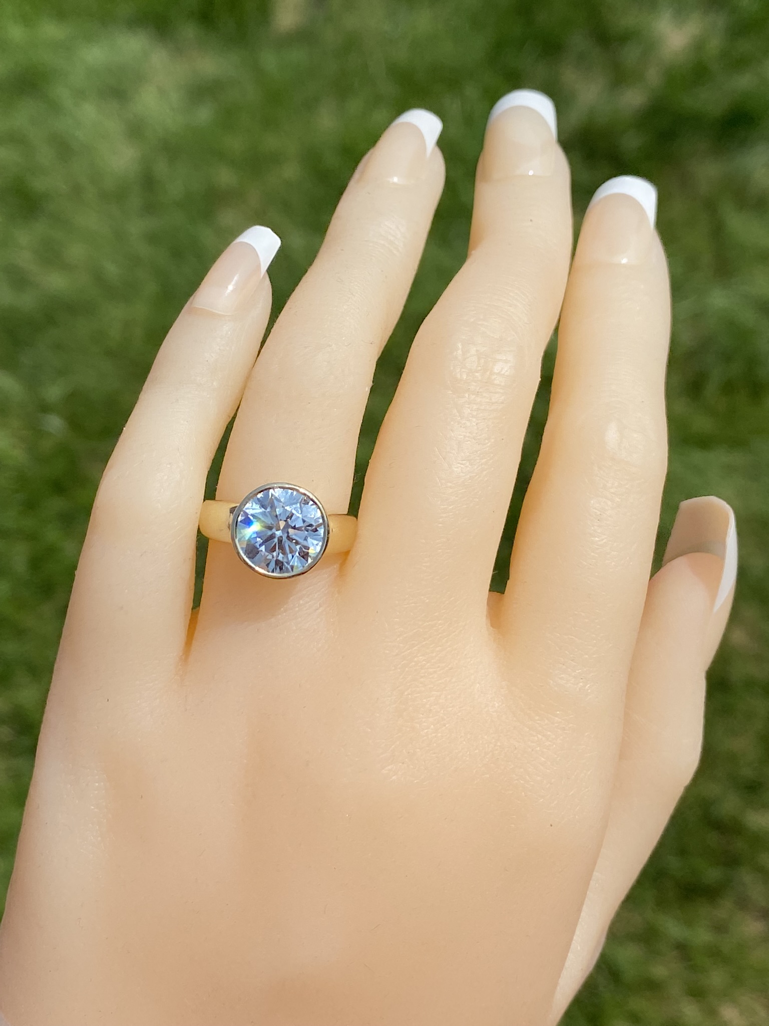The Bezeler:  Bezel Set Round Brilliant Cut Natural Diamond Engagement Ring in Yellow Gold - Image 10