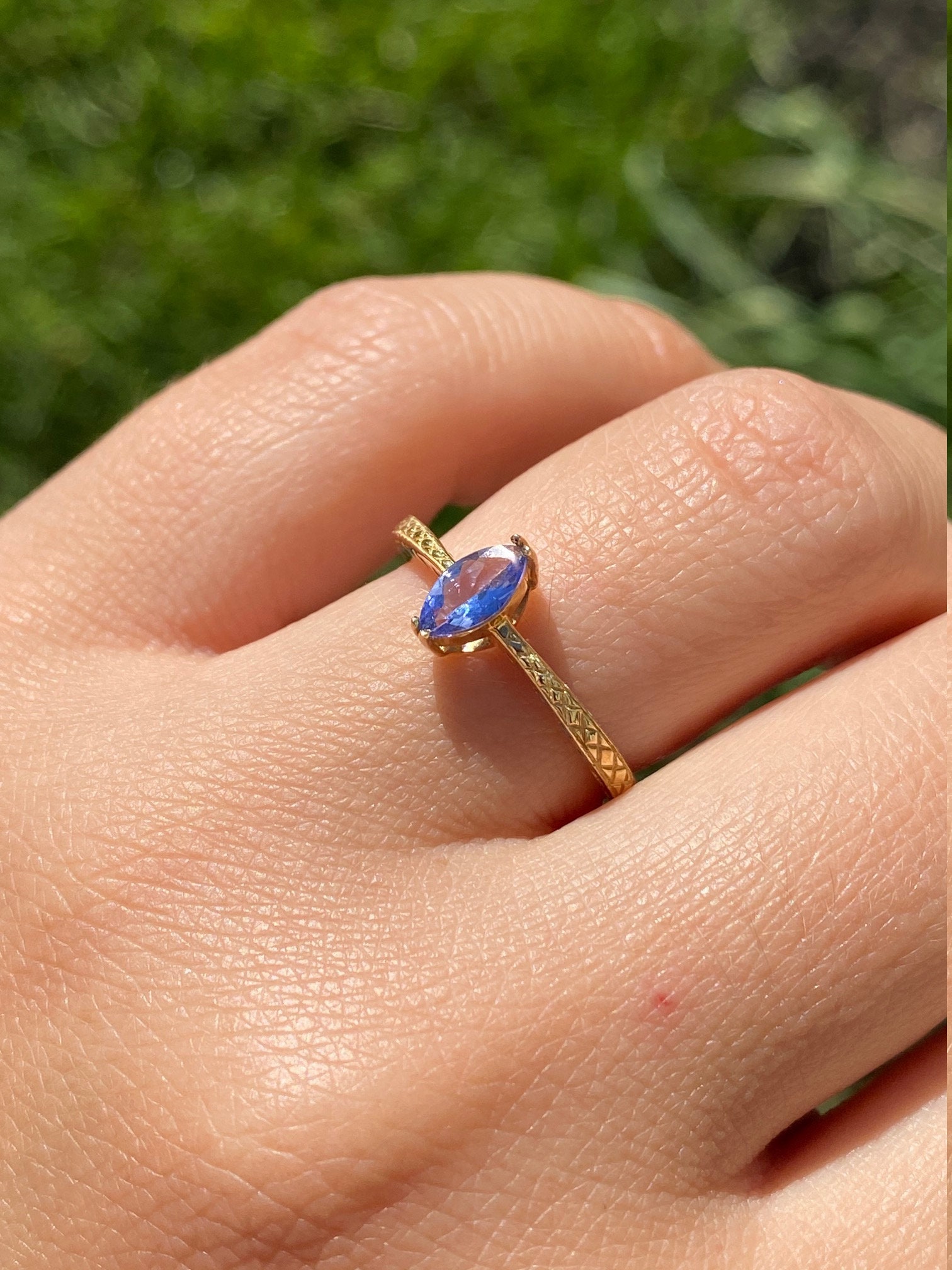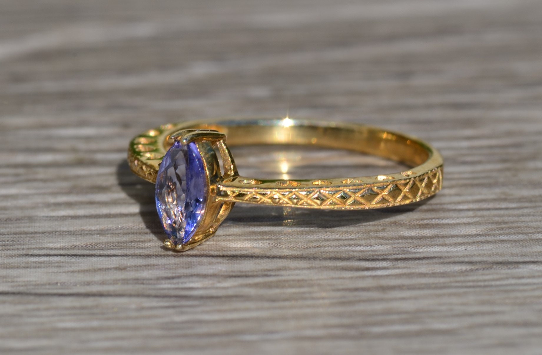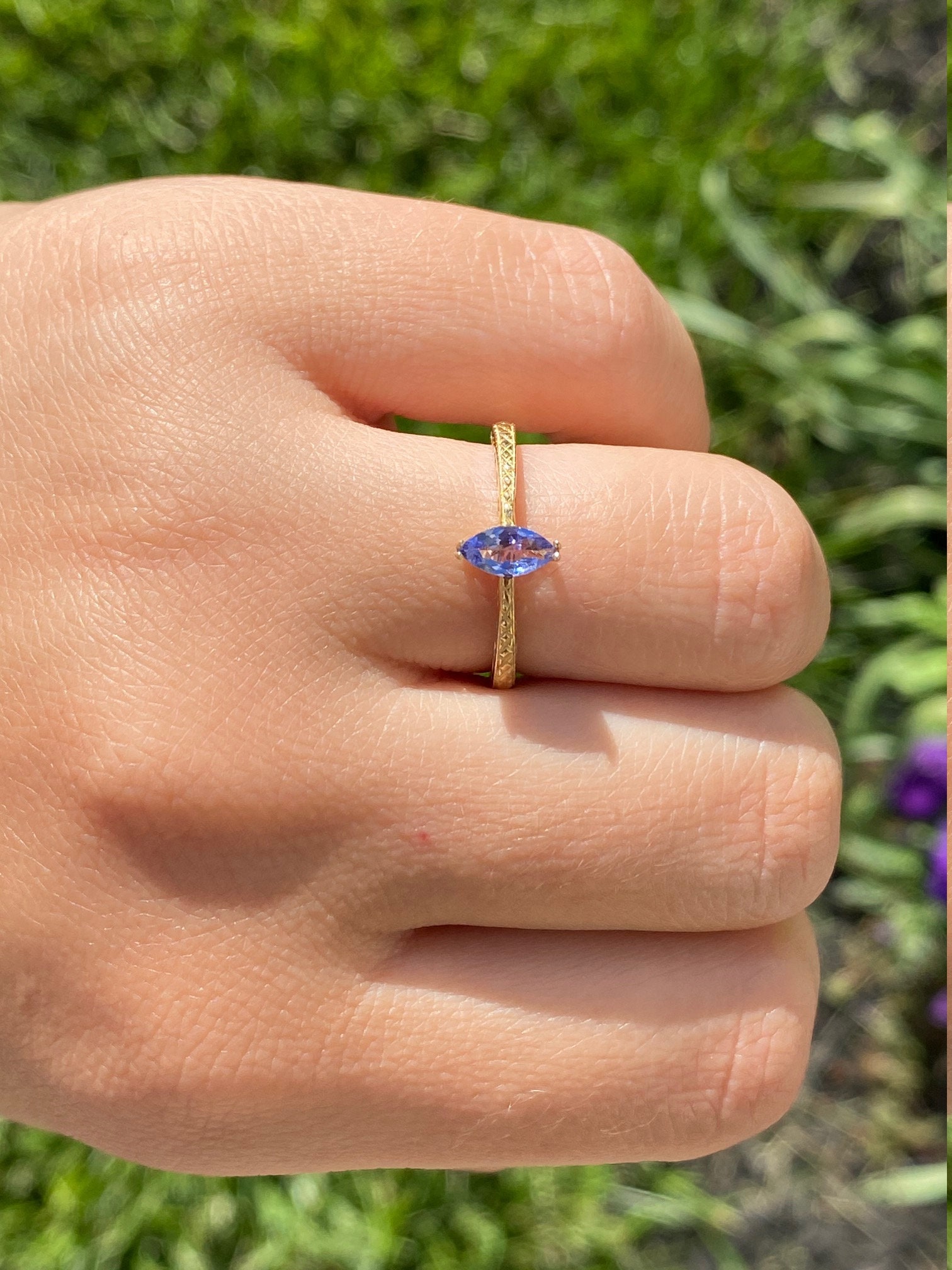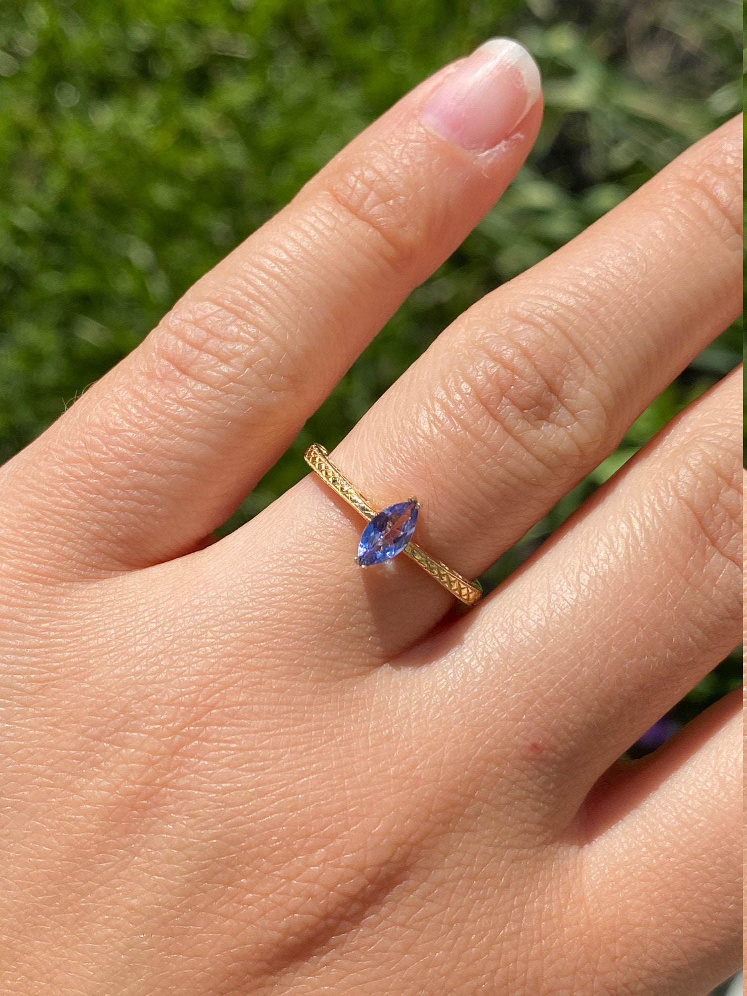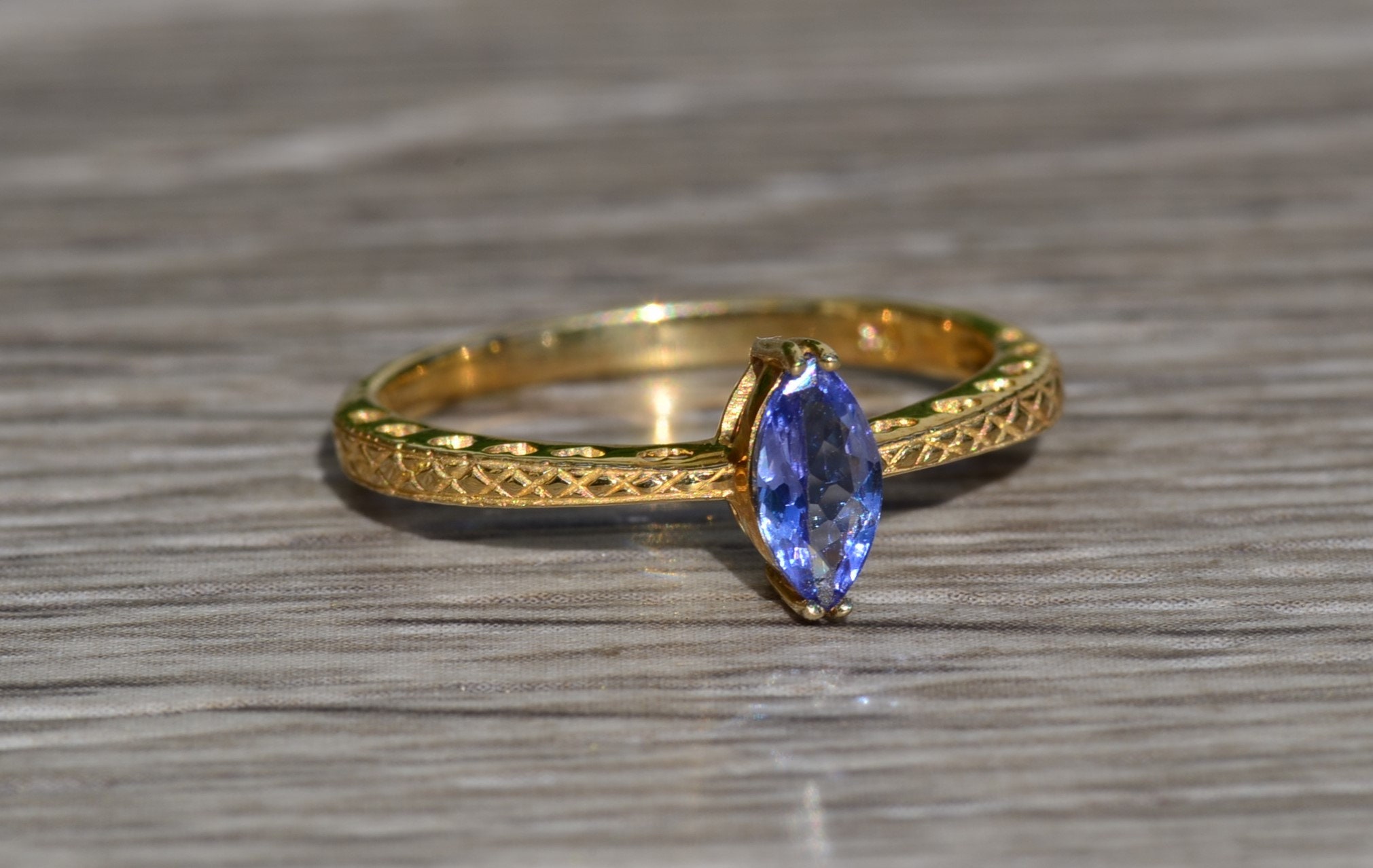 You're viewing: The Bluet: Ladies Engagement Style Ring in Yellow Gold set with Navette Shaped Tanzanite $325.33