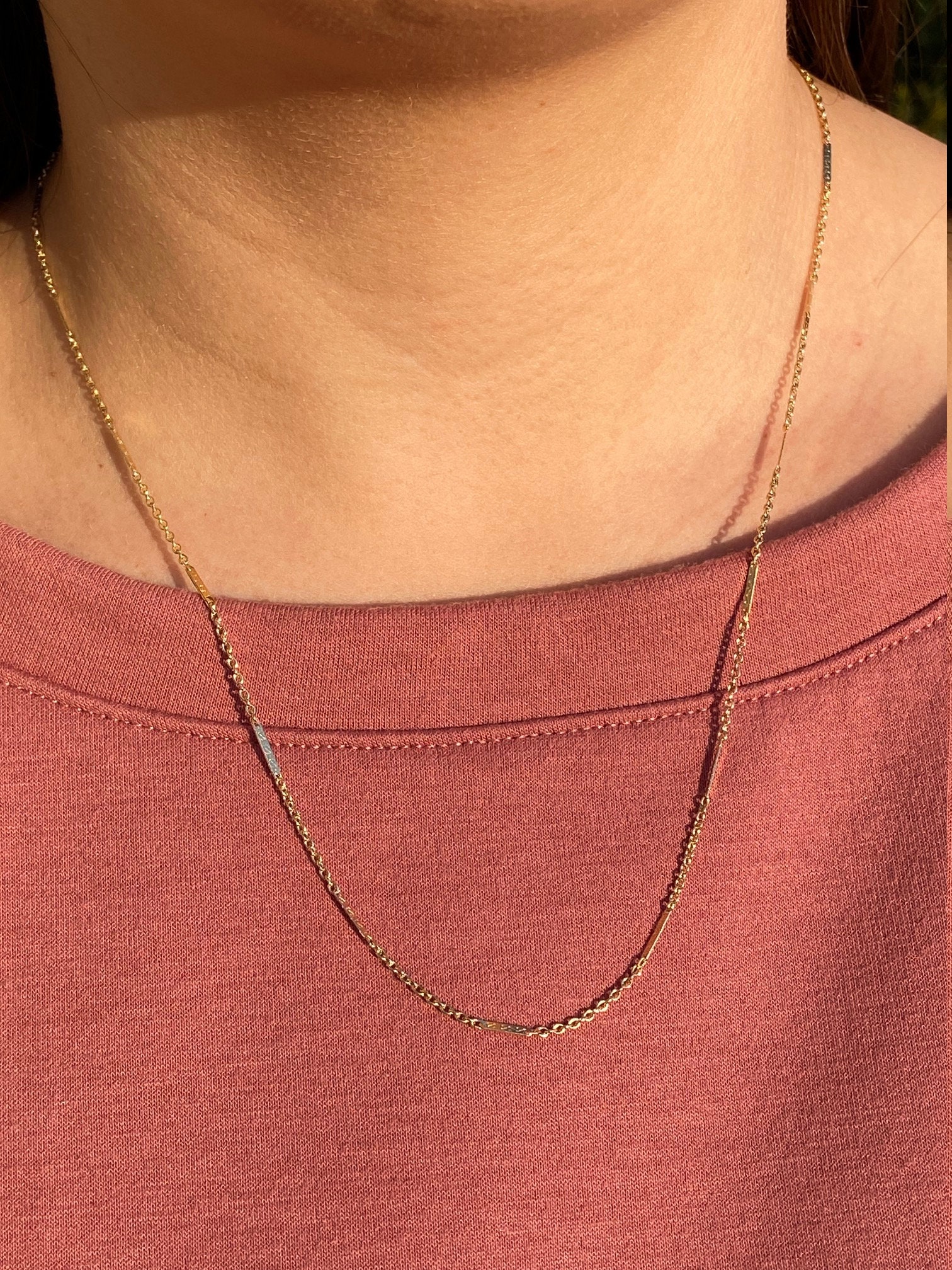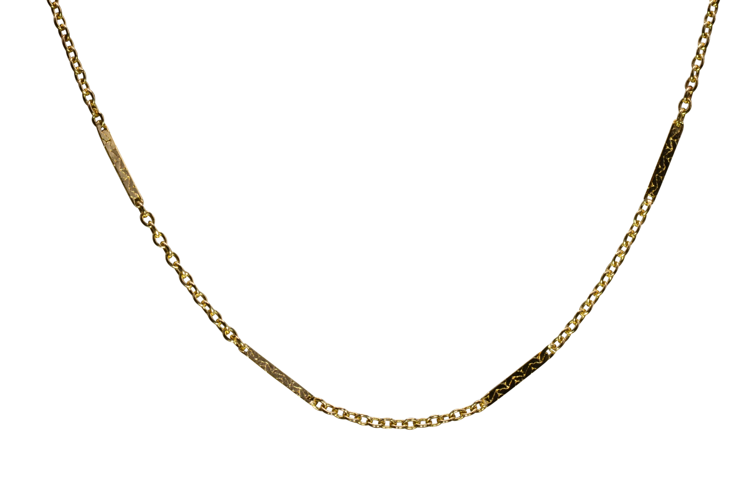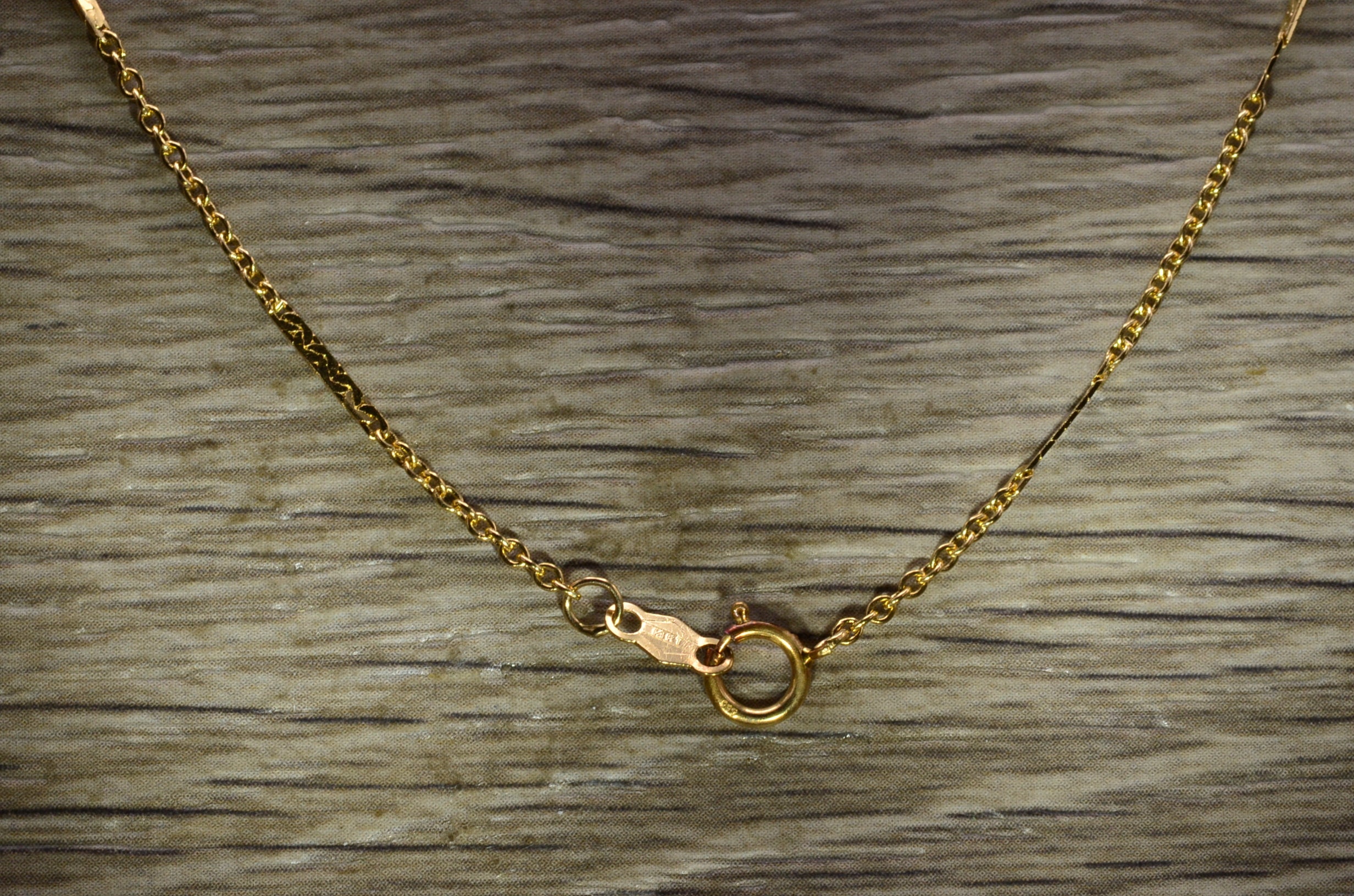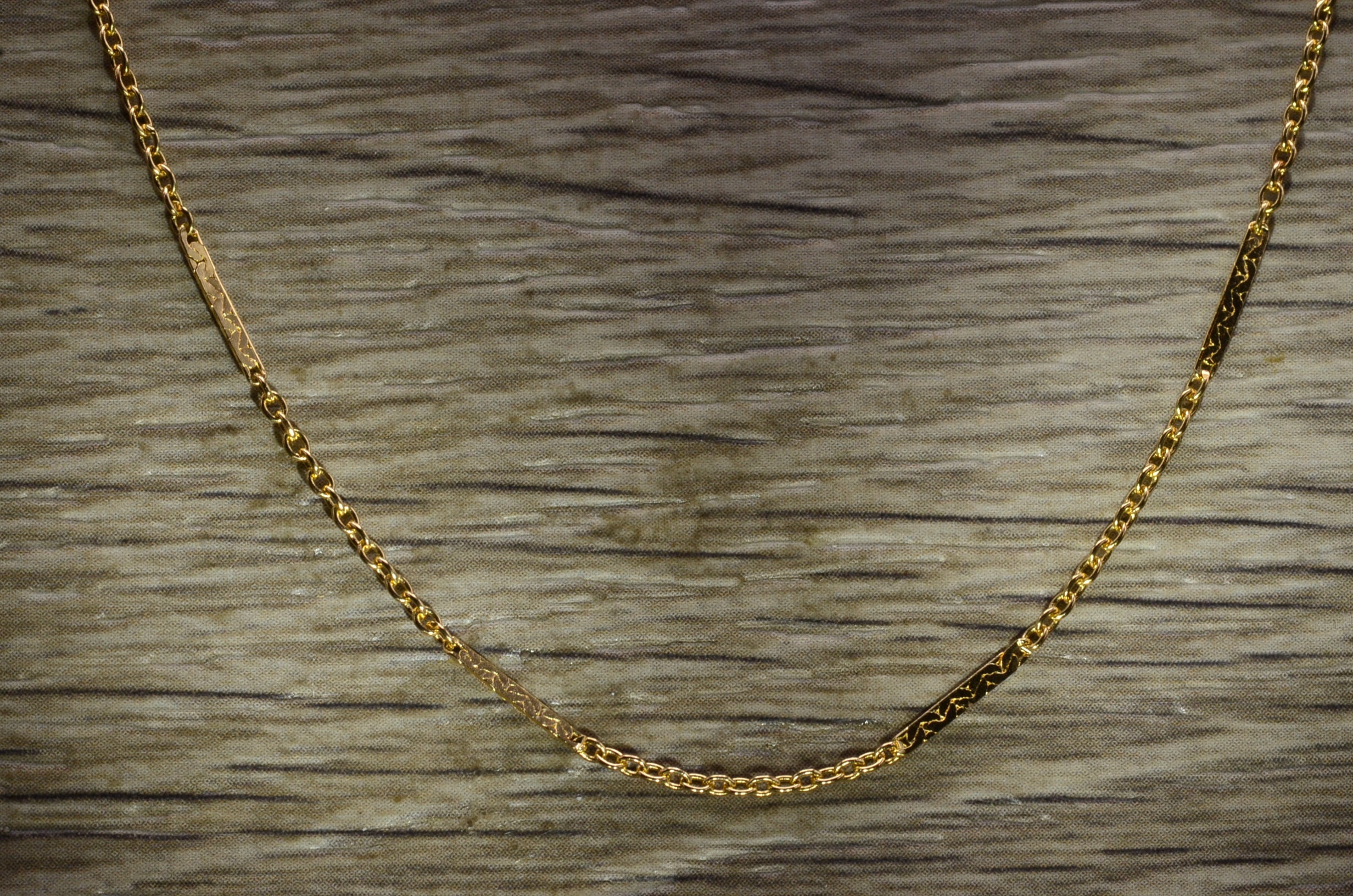The Boligee: Ladies 14K Yellow Gold 20 Inch Station Chain. This chain is crafted in 14 karat yellow gold and measures 20 inches in length. If you’re looking for a layered chain look, this would be the perfect length for a longer piece.