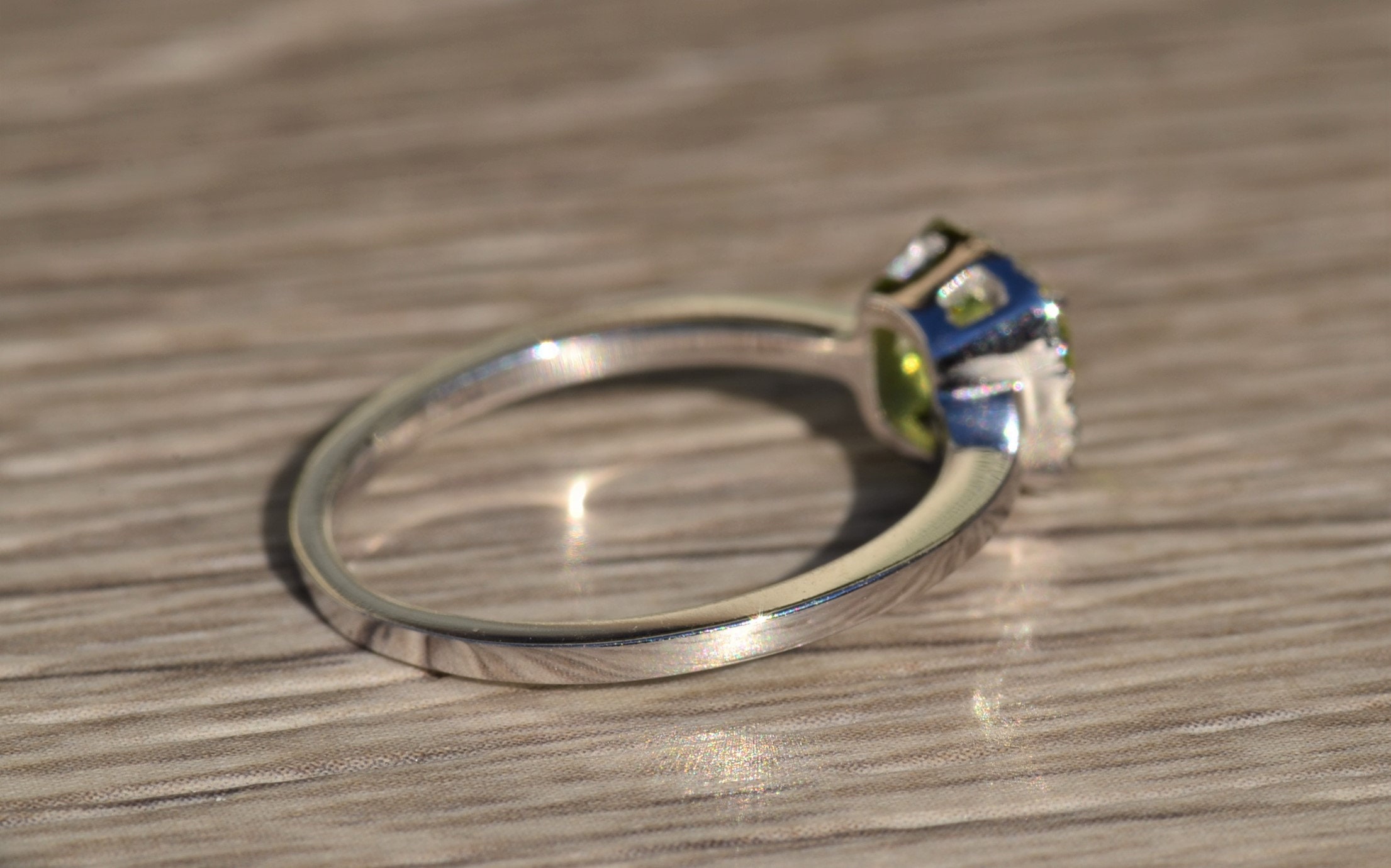 The Avonworth:  Contemporary White Gold Ring set with Tourmaline and Diamonds The Avonworth: Contemporary White Gold Ring set with Tourmaline and Diamonds The Loganberry:  14 Karat White Gold Chain Link Ring set with Peridot and Diamonds The Loganberry: 14 Karat White Gold Chain Link Ring set with Peridot and Diamonds