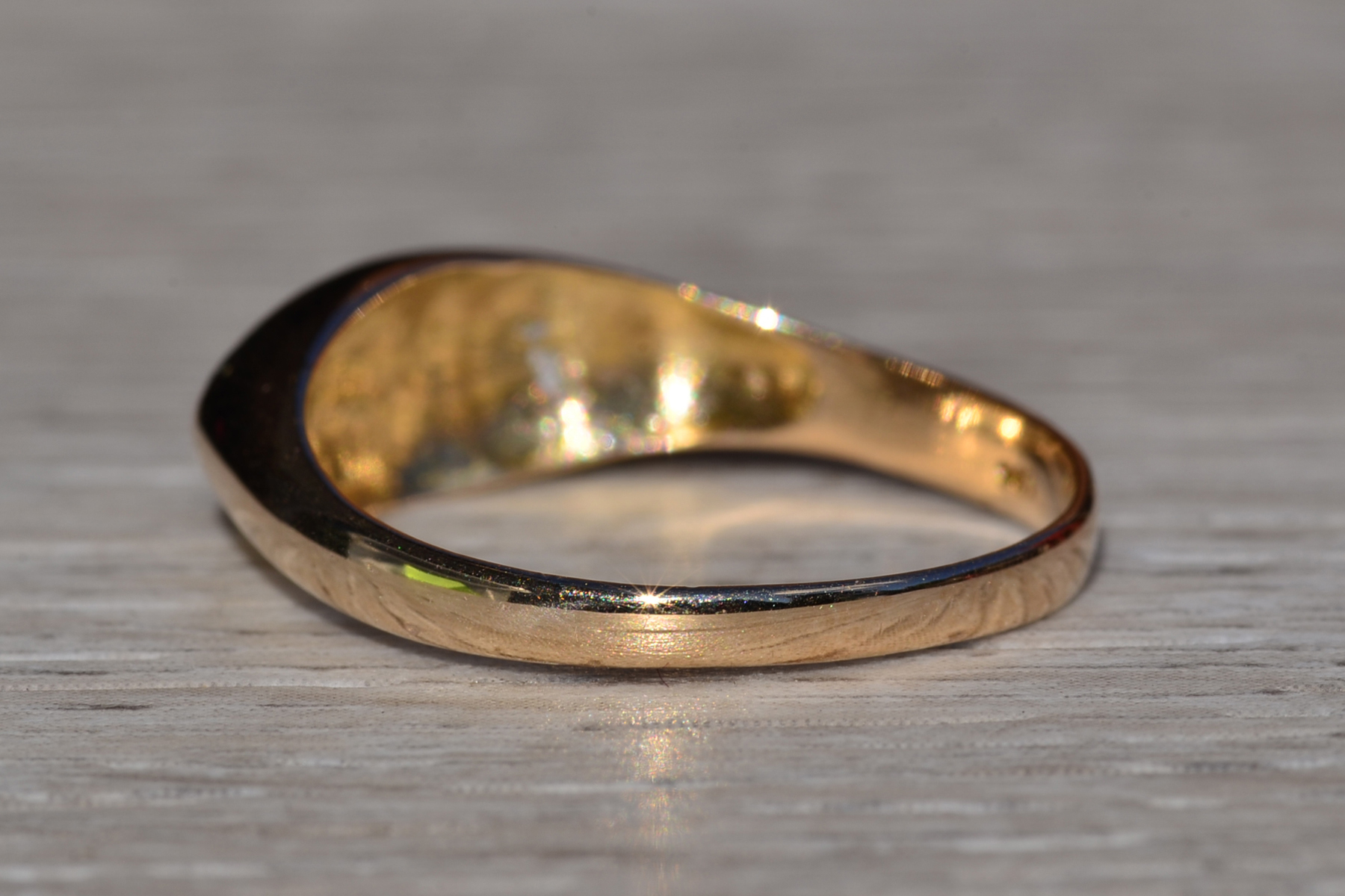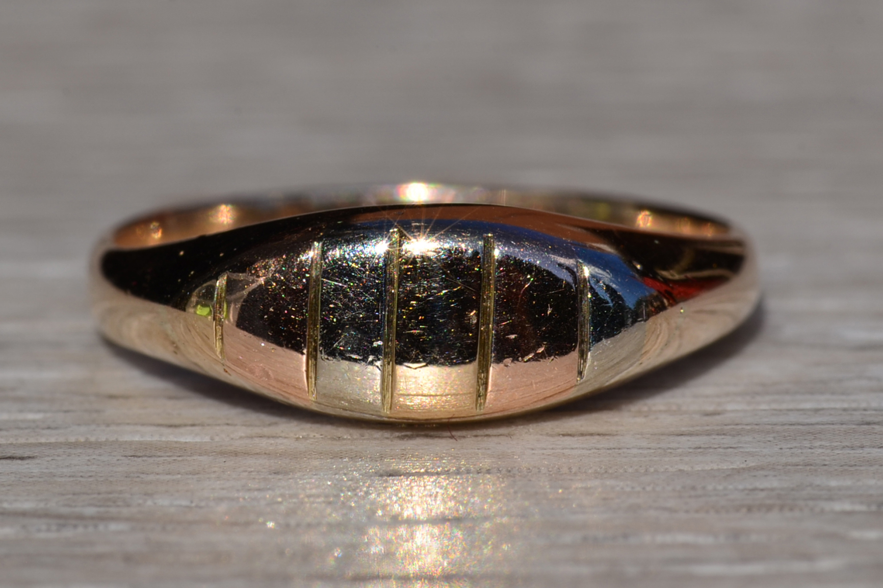 The Bundoora: Multicolor Gold Cocktail Ring. The ring features layered rose gold and white gold atop a yellow gold ring in an interesting delineated retro style. The ring is crafted in 14 karat yellow gold and is currently a finger size 9 yet can be adjusted to any finger size for an additional charge on request.