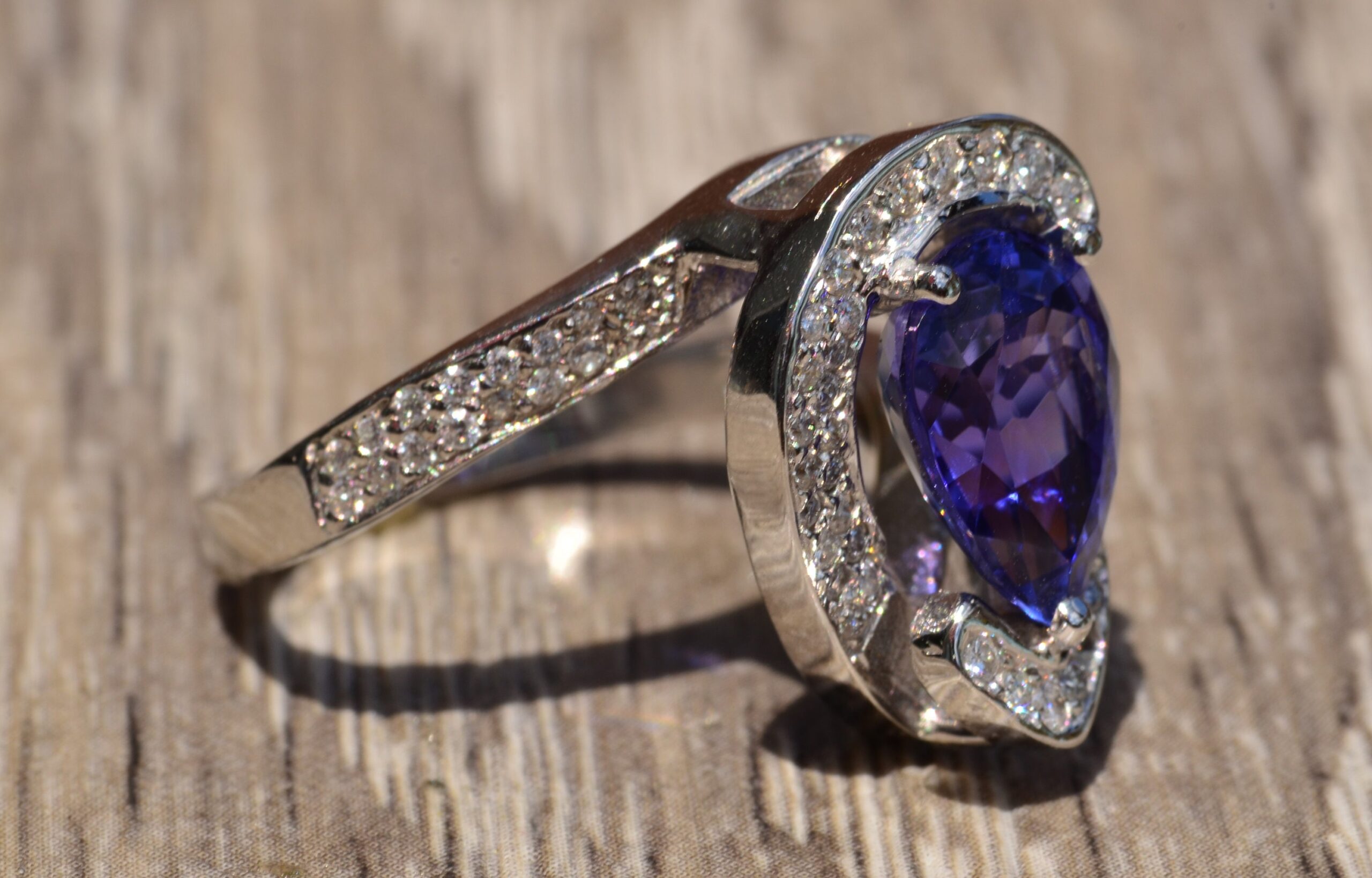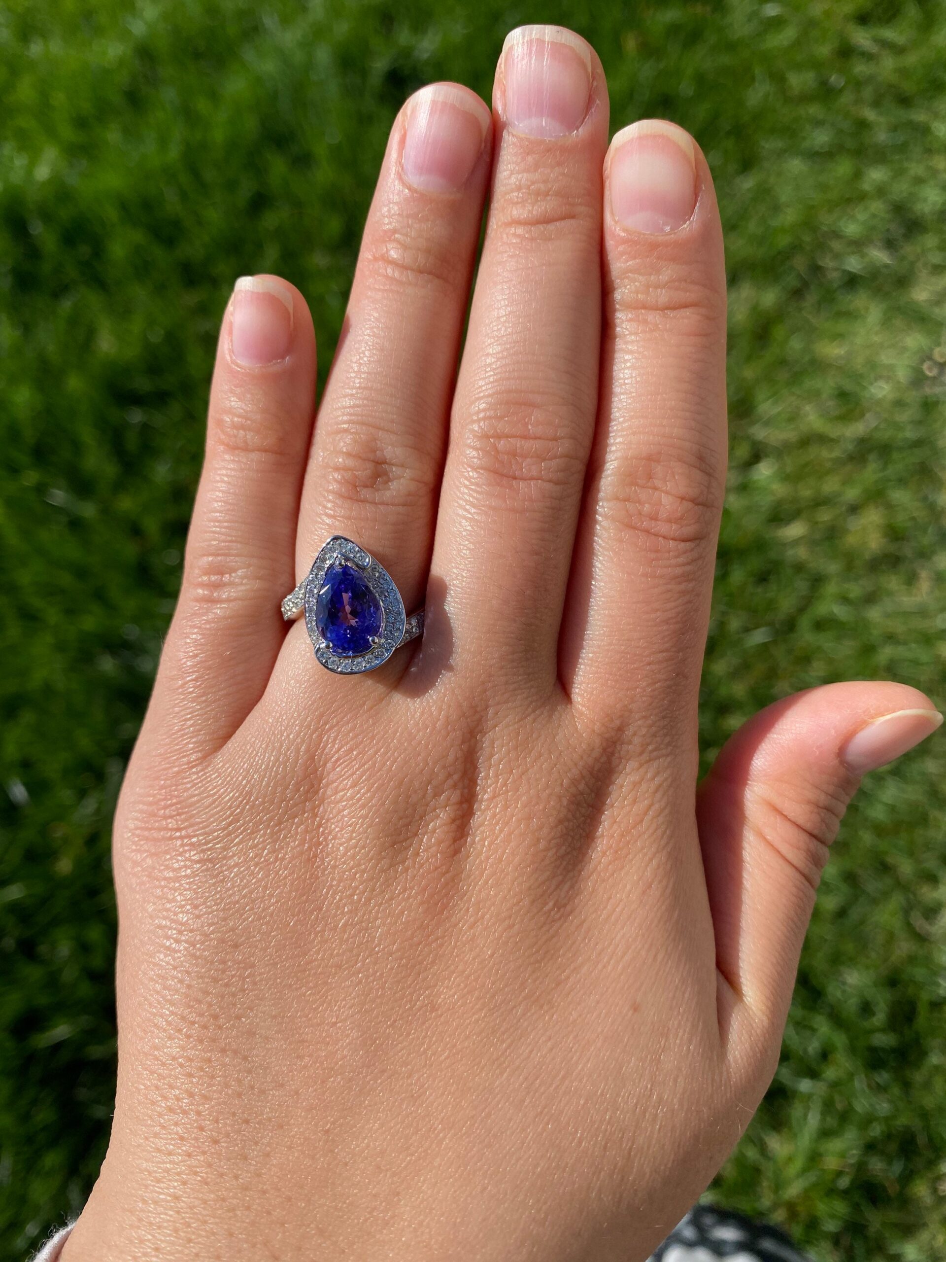 You're viewing: The Cambridge: Pear Shaped Tanzanite & Diamond Halo Ring $2,497.50