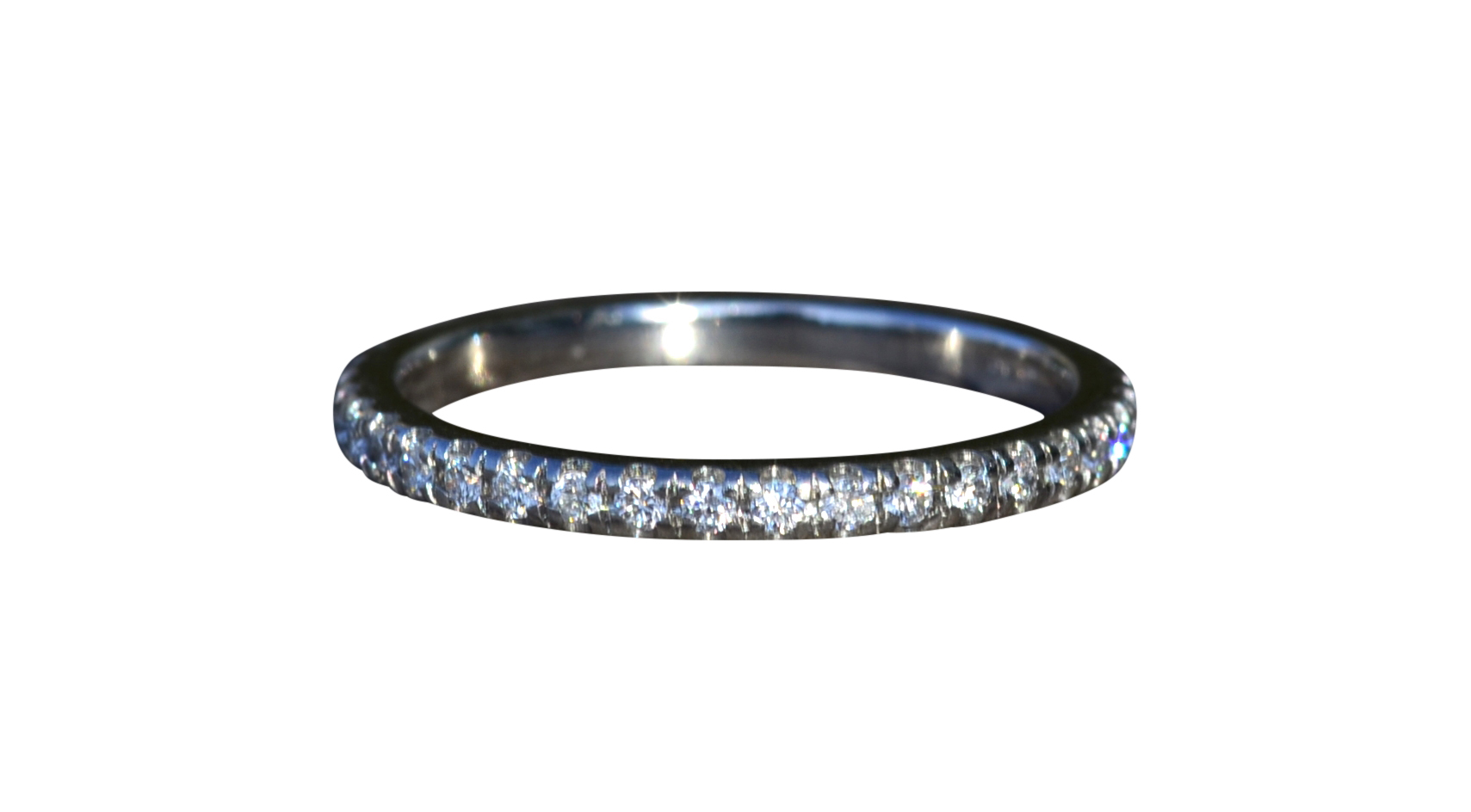 The Caryville: Ladies Platinum 0.20CTW Diamond Eternity Band. Crafted in durable platinum, this ladies eternity band features shared prong set diamonds all the way around for a total diamond weight of 0.20 carats. The band is a finger size 6.