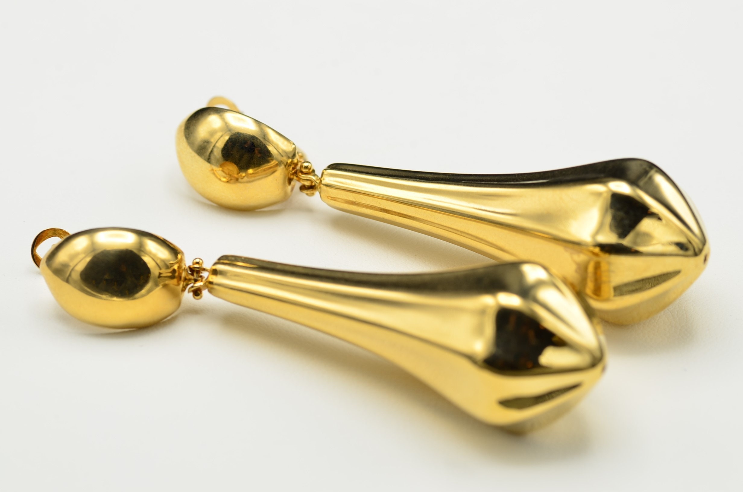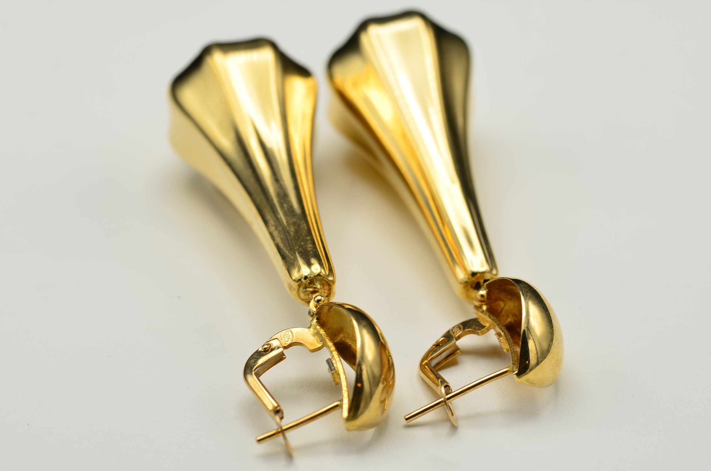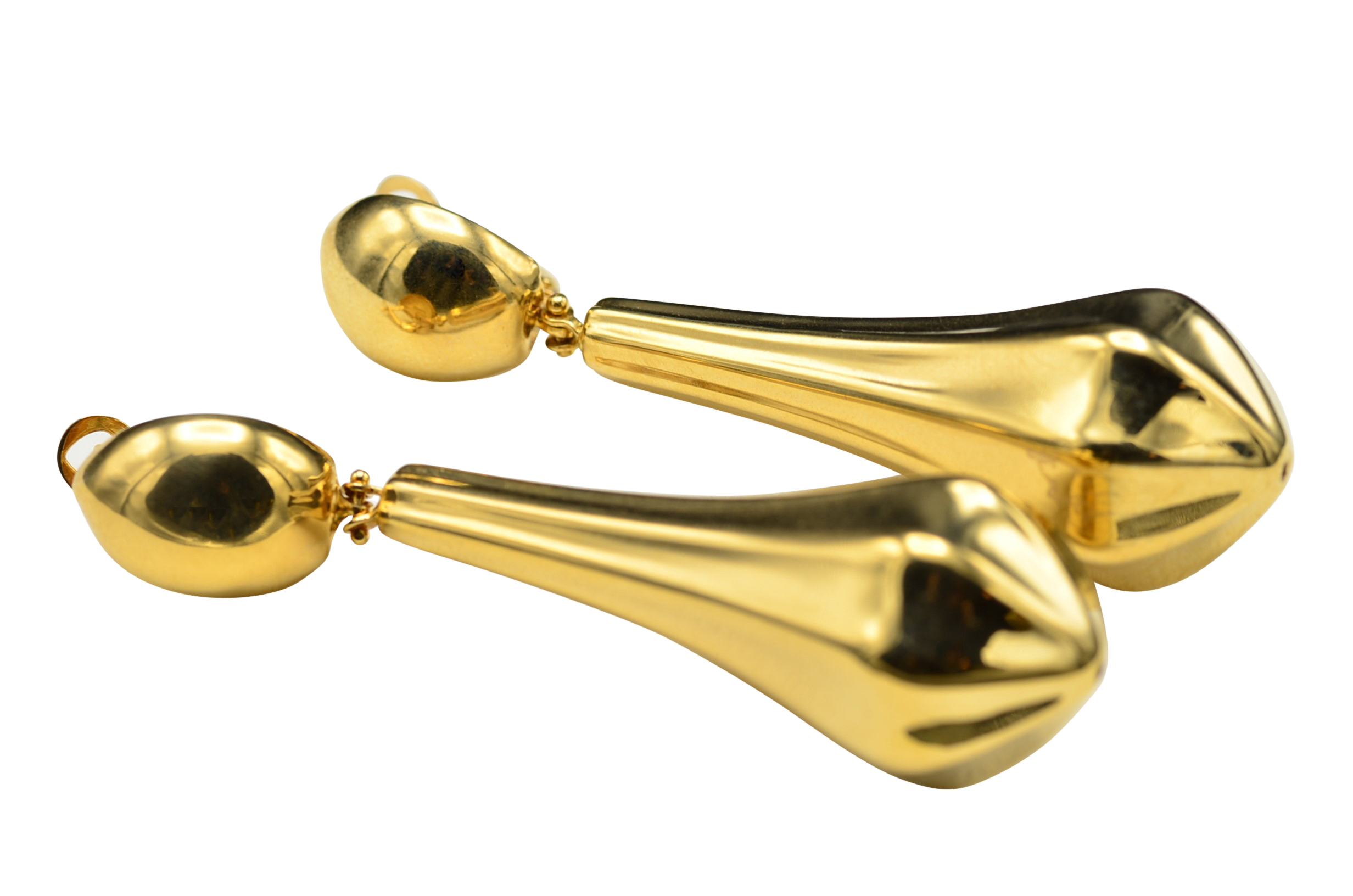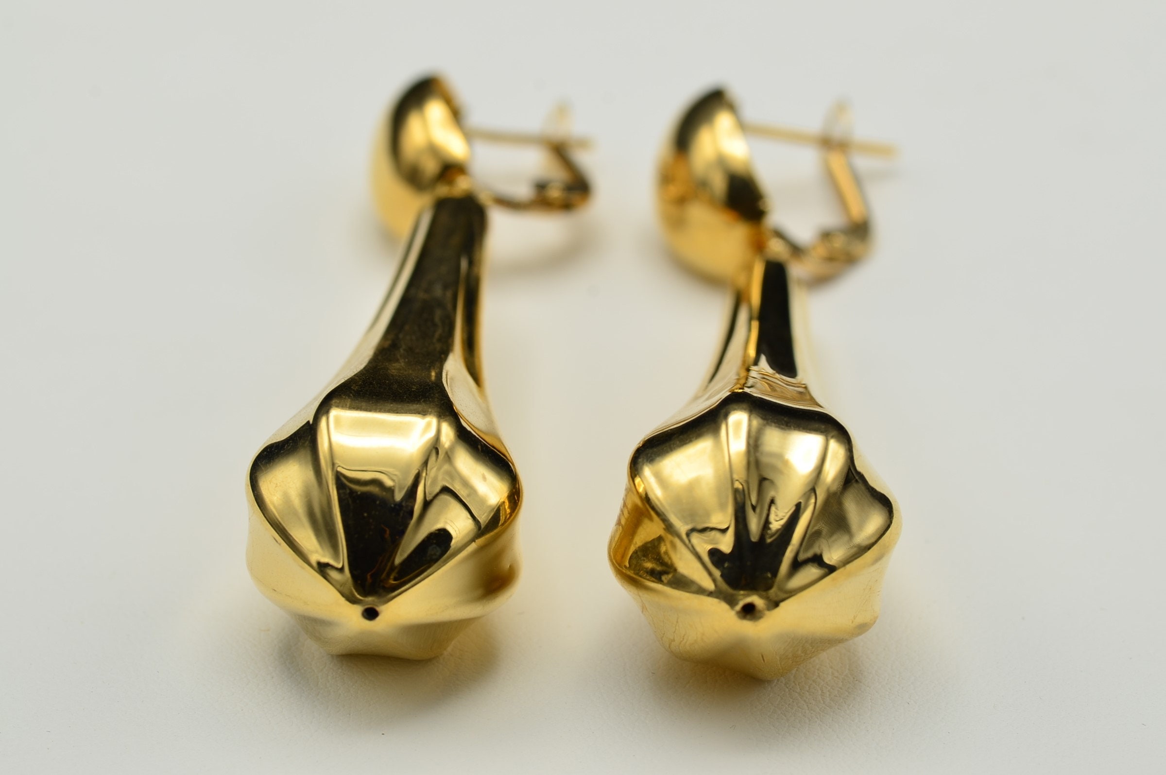 Italian 14K Yellow Gold Bold Statement Earrings. Measuring 2.75 inches in total length, these vintage earrings demonstrate bold style. Complete with French style backs, these earrings make a statement without the heft.