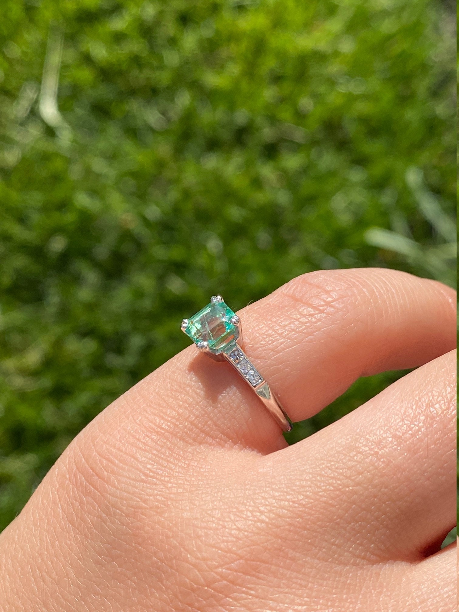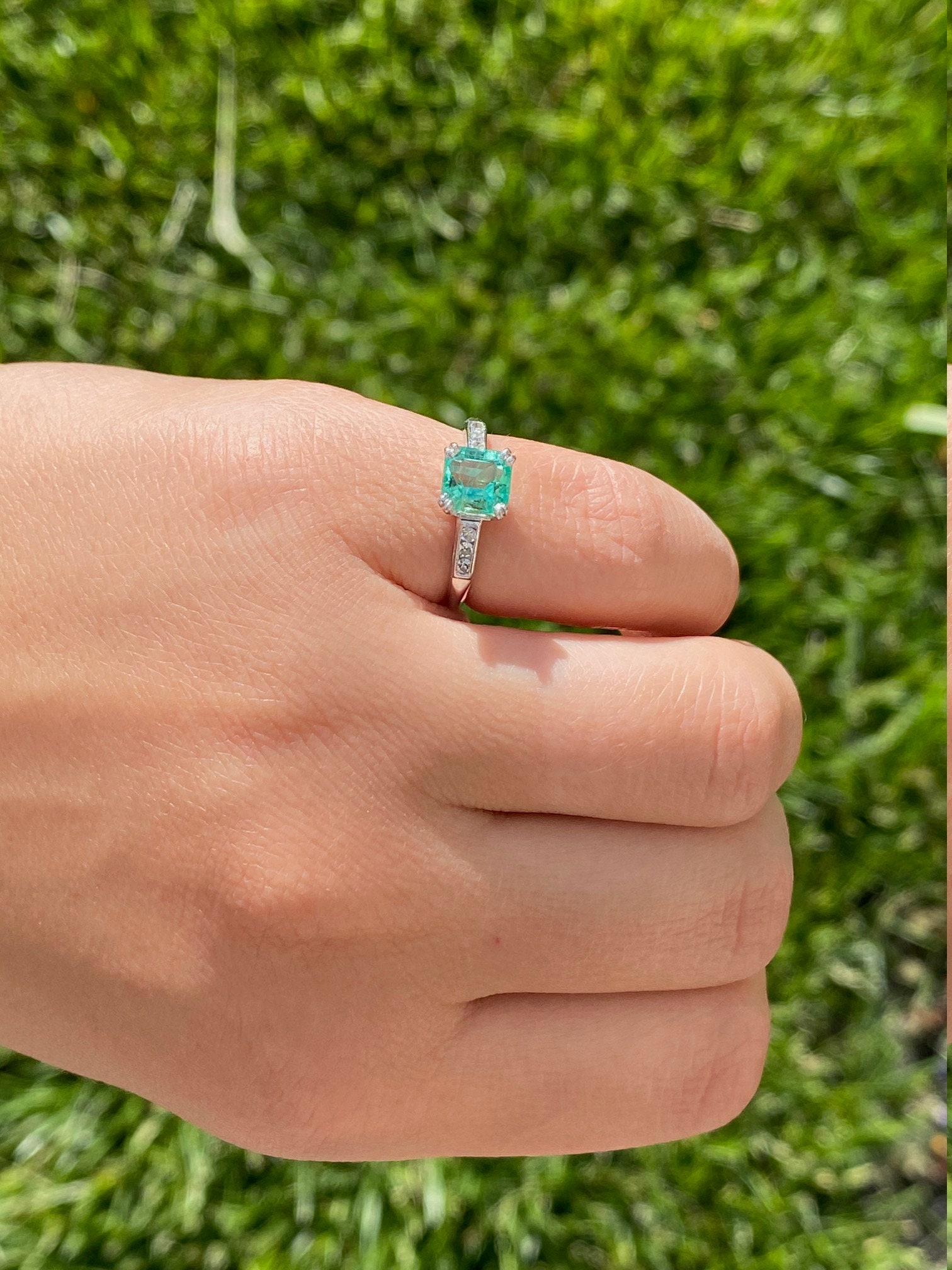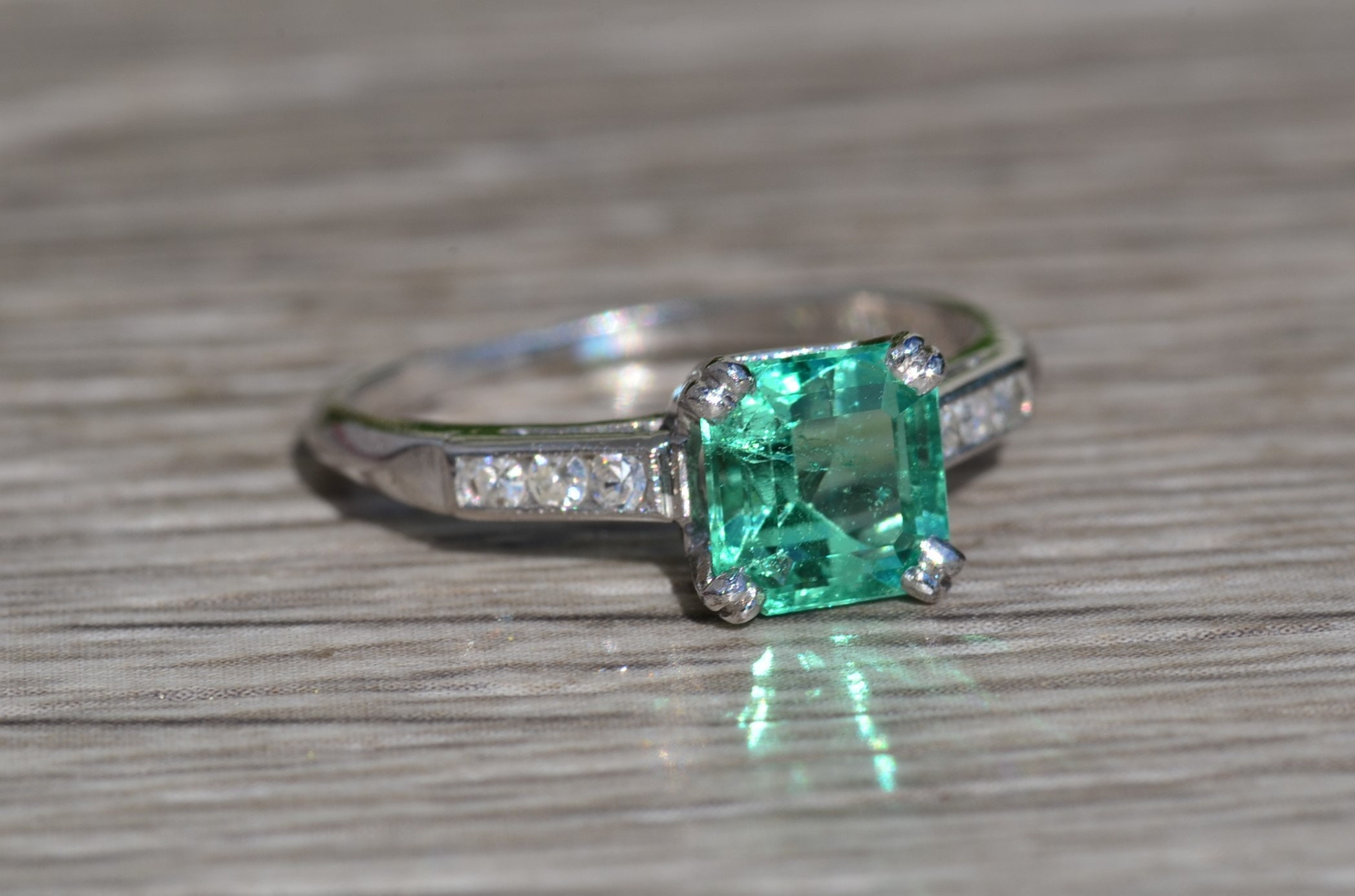 SKU: 18002311 Categories: All Antique & Vintage Engagement Rings, All Antiquities & Vintage, Antique & Vintage Cocktail Rings, Cocktail Rings, Colored Stone Engagement Rings, Engagement Rings, Vintage Engagement Rings Tags: classic, Colombian, colombian emerald, diamond ring, Emerald, emerald ring, engagement, engagement ring, green, green stone, Ladies, platinum, platinum engagement, ring, square, statement ring, vintage, women