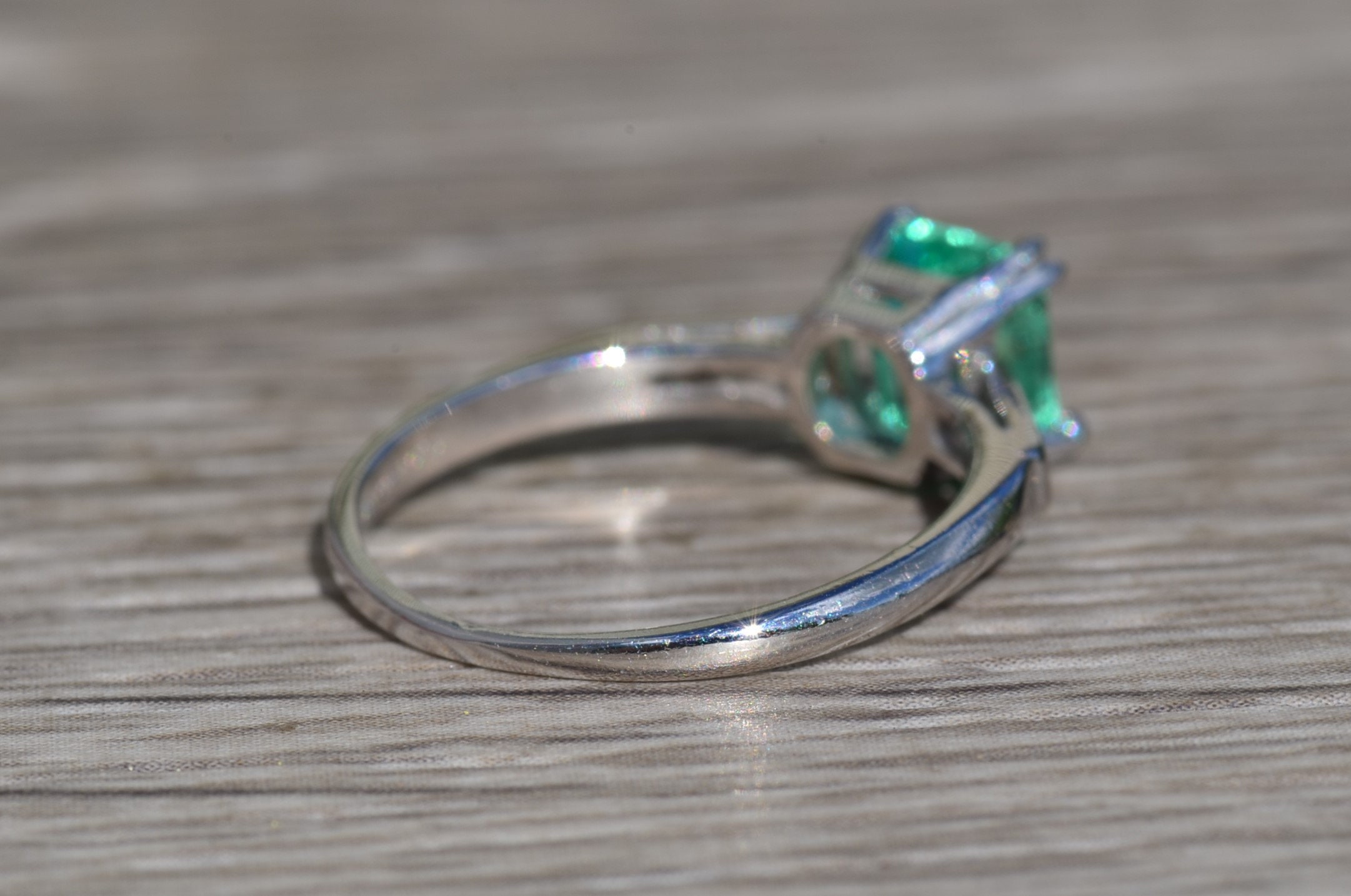 The Centella:  Ladies Platinum Engagement Style Ring set with 1.21 CT Colombian Emerald - Image 8