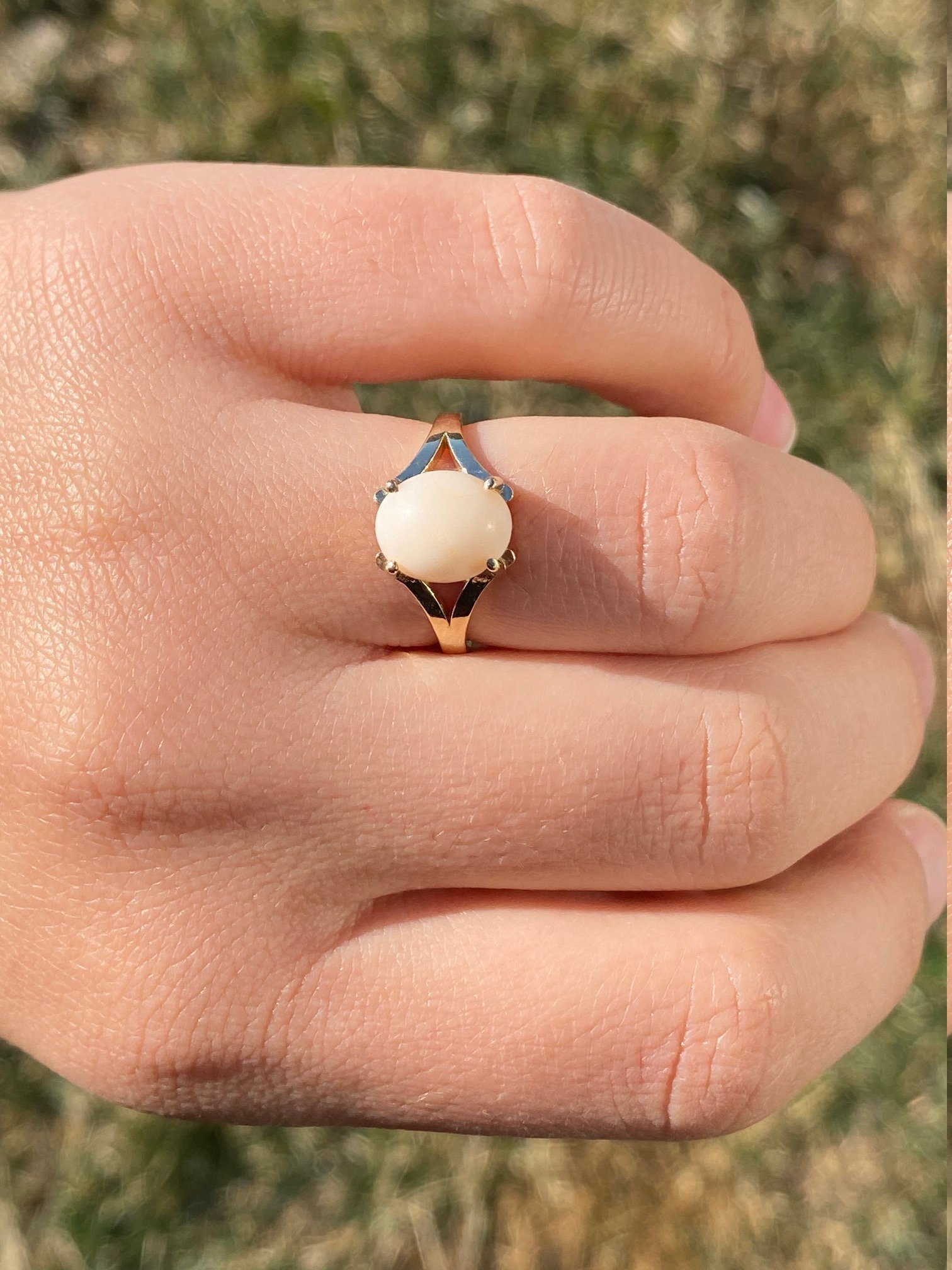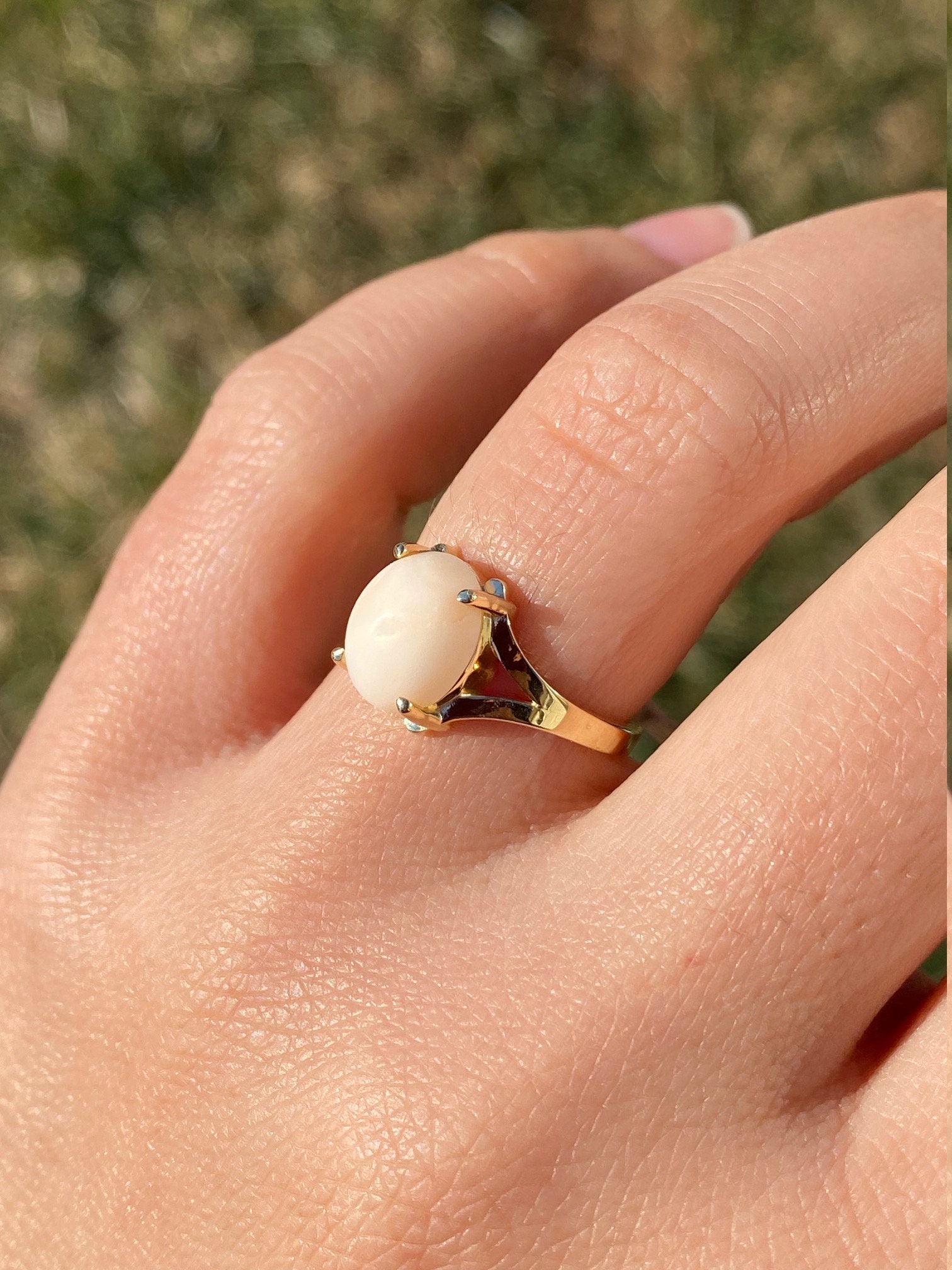 The Chalmette: Ladies Yellow Gold Angel Skin Coral Ring