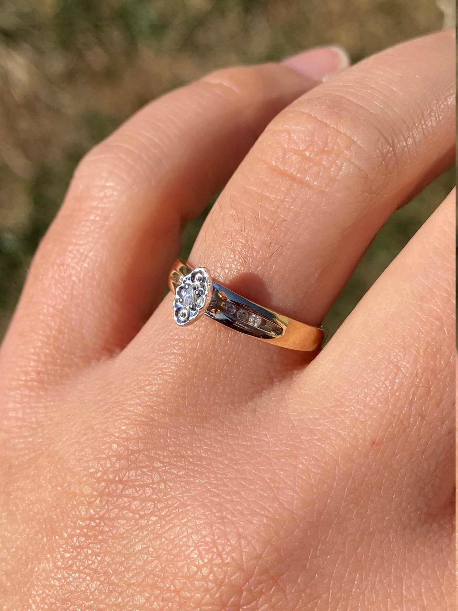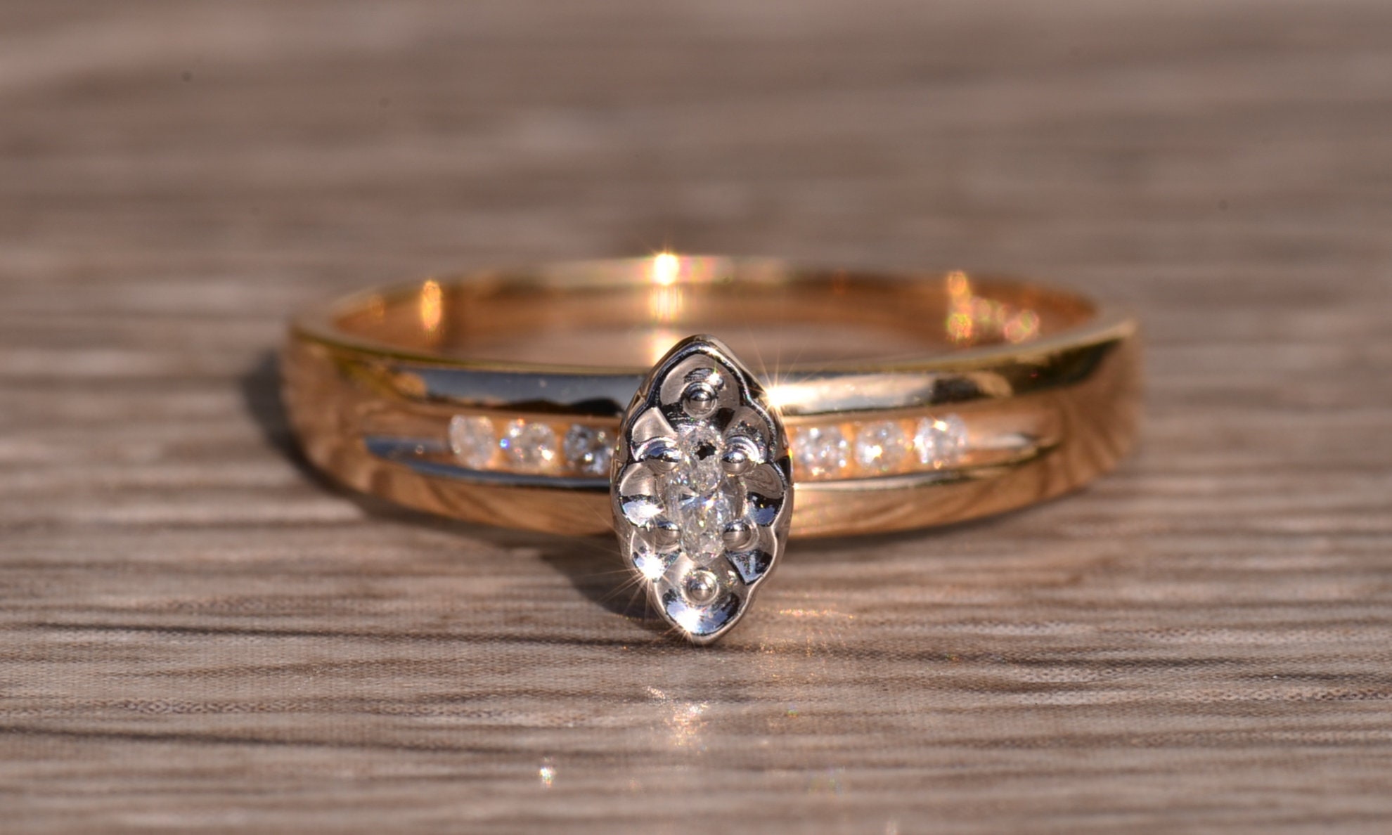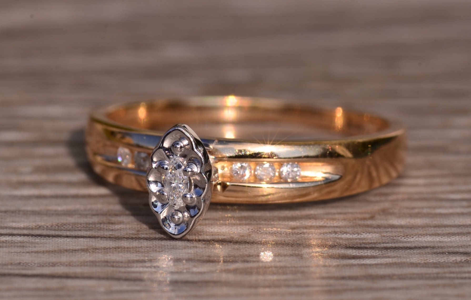 SKU: 61000206 Categories: All Antique & Vintage Engagement Rings, Contemporary Jewelry, Engagement Rings, Vintage Engagement Rings Tags: 10 karat ring, contemporary ring, diamond ring, engagement ring, girl's ring, gold. yellow .white. 10 karat. two tone. ladies. women. engagement ring. navette. diamond. contemporary .modern. marquise ring, ladies' ring, marquise diamond, marquise ring, navette ring, two tone ring, white gold box, women's ring, yellow gold ring
