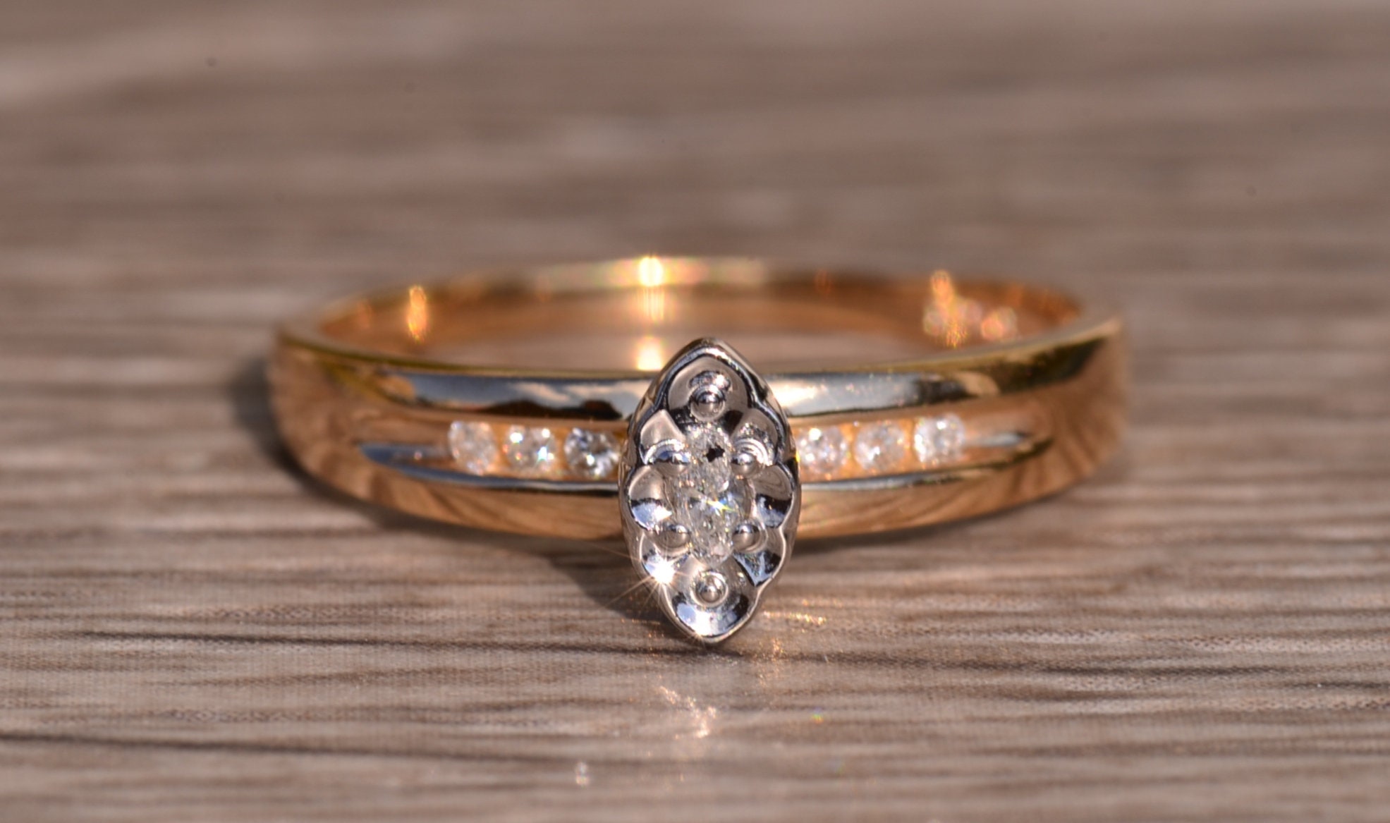 The Croydon: Vintage Navette Engagement Ring with Diamonds