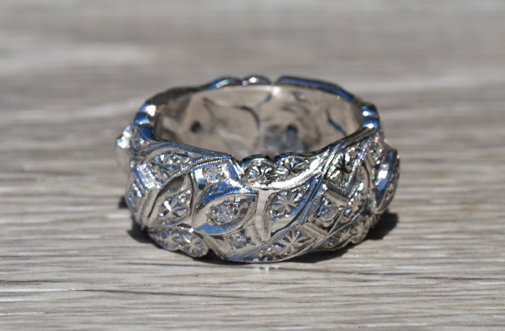 The Damaron: Ladies Antique Filigree Diamond Eternity Band in Platinum
