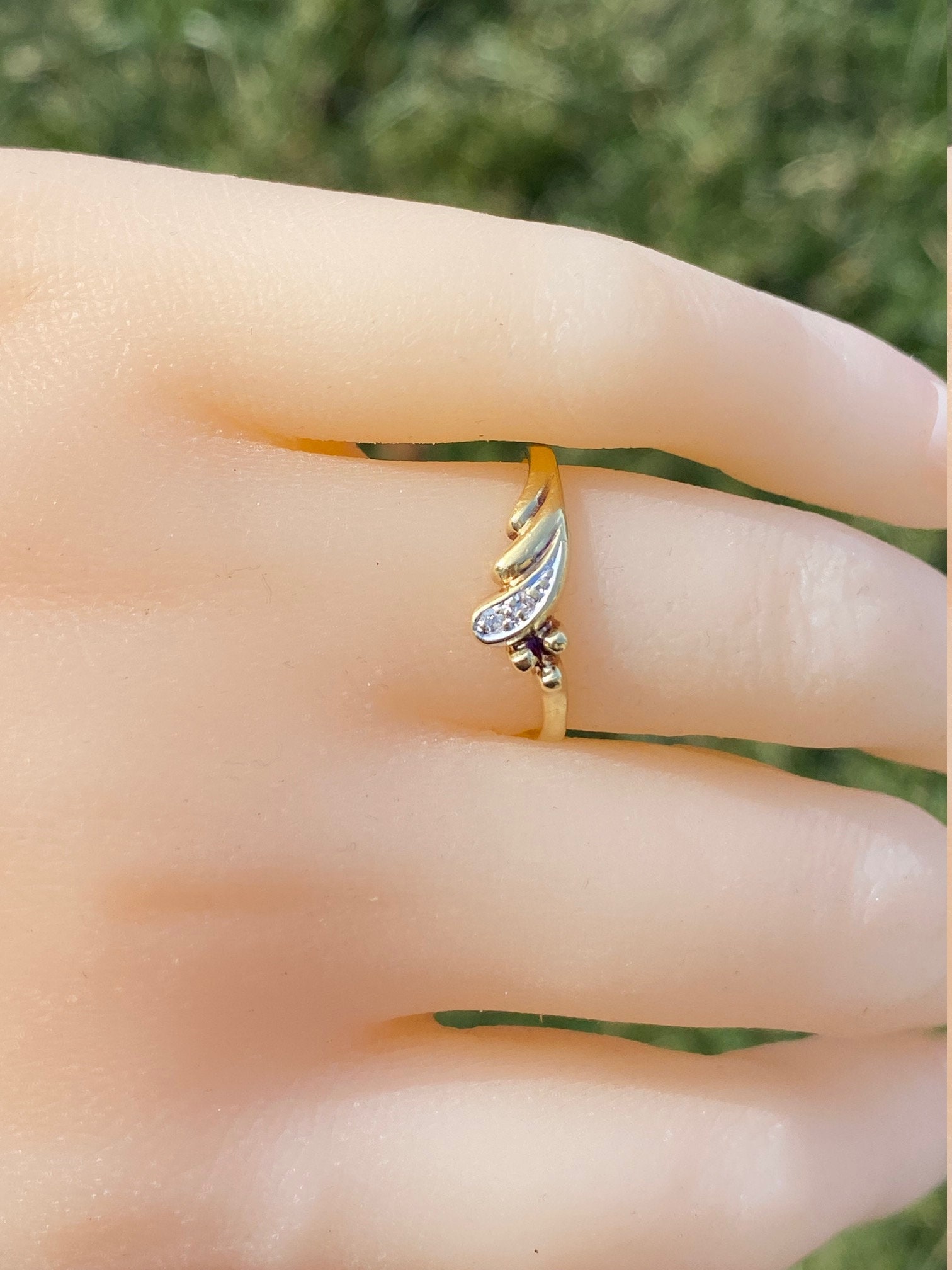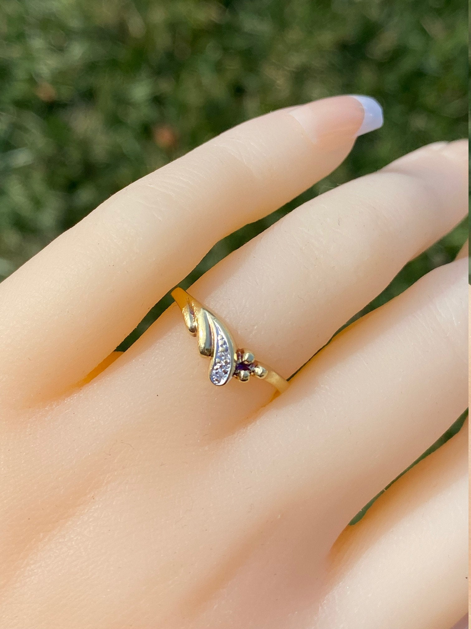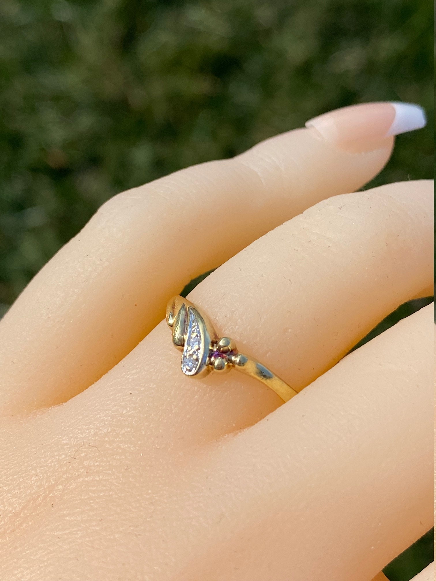 The Dandridge: Ladies 14K Gold Cocktail Ring with Diamonds. Crafted in 14 karat yellow gold, this vintage ladies ring is accented with diamonds. Currently a finger size 5.25, this ring can be resized for an additional charge.