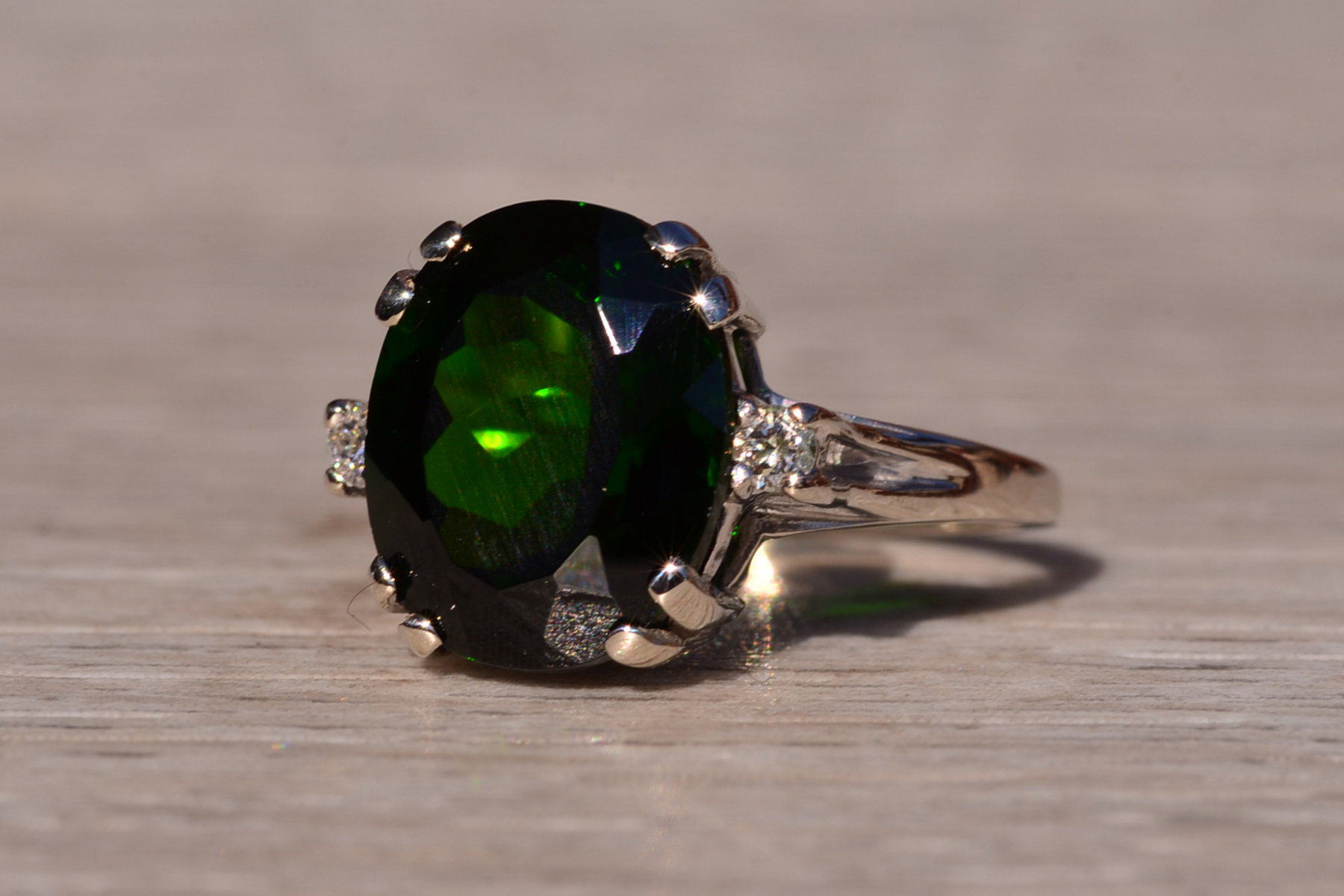 The Dip: Ladies 14K Chrome Diopside and Diamond Ring