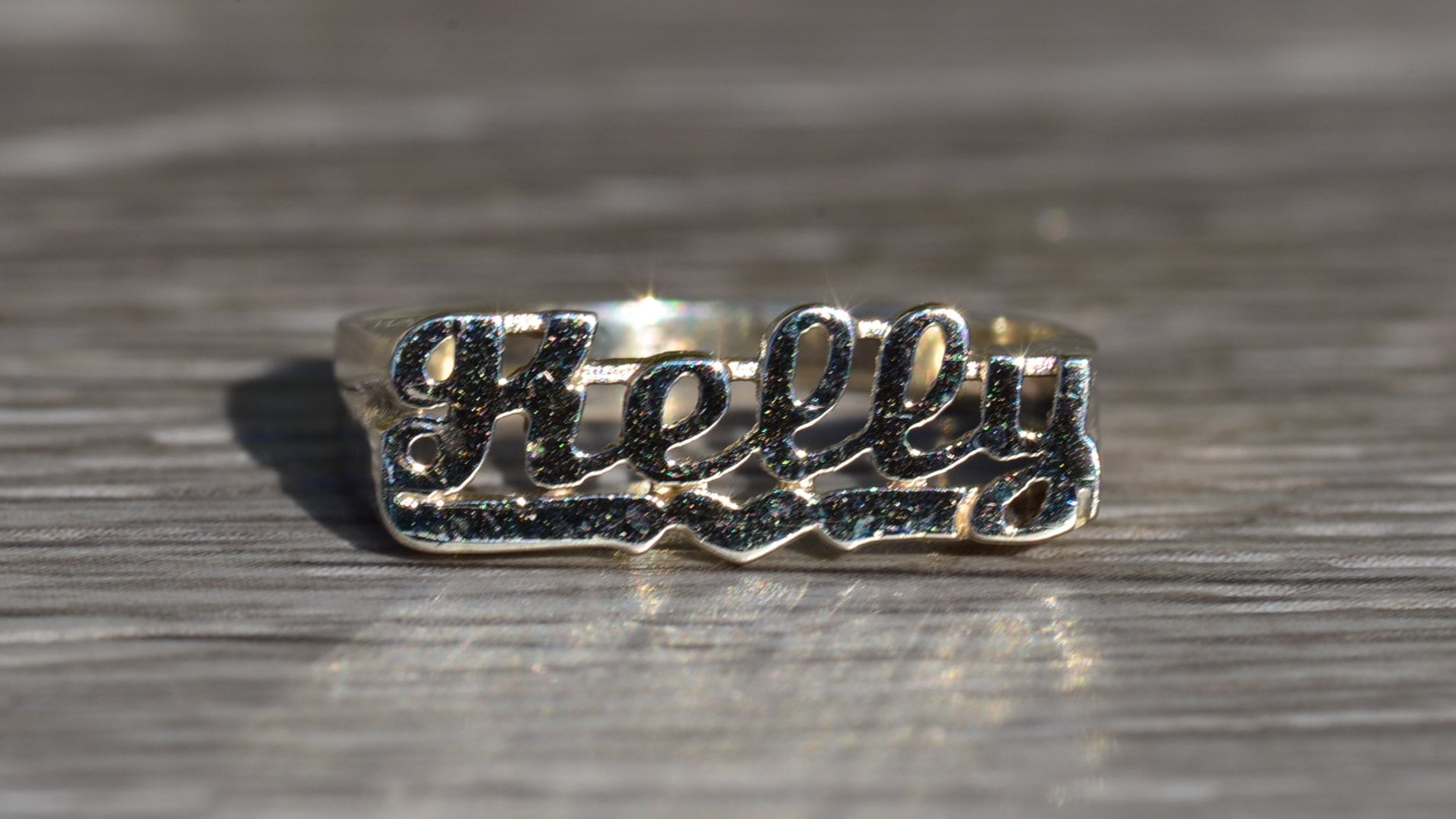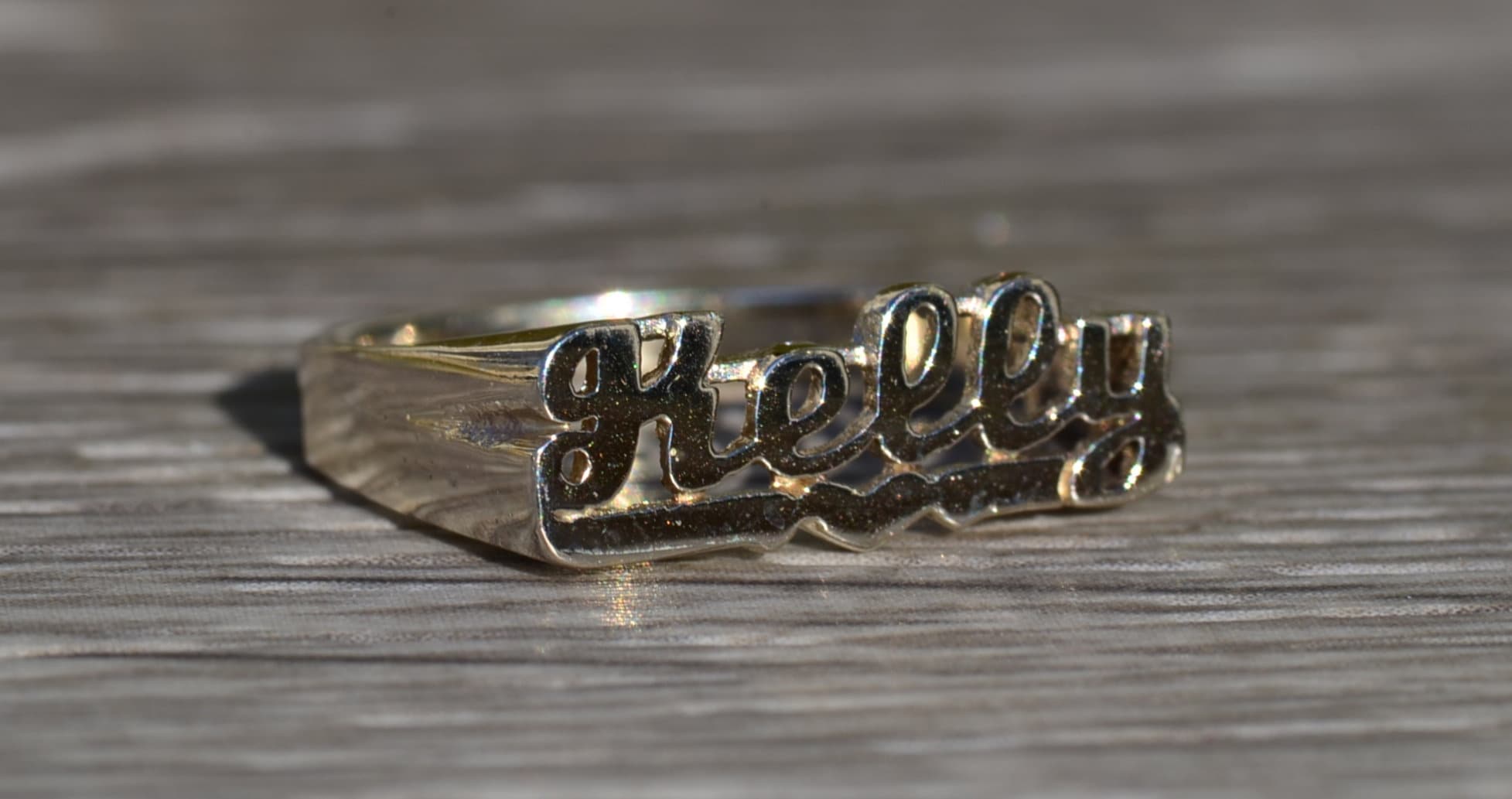 SOLD – The Kelly: Ladies 14K White Gold Kelly Name Ring