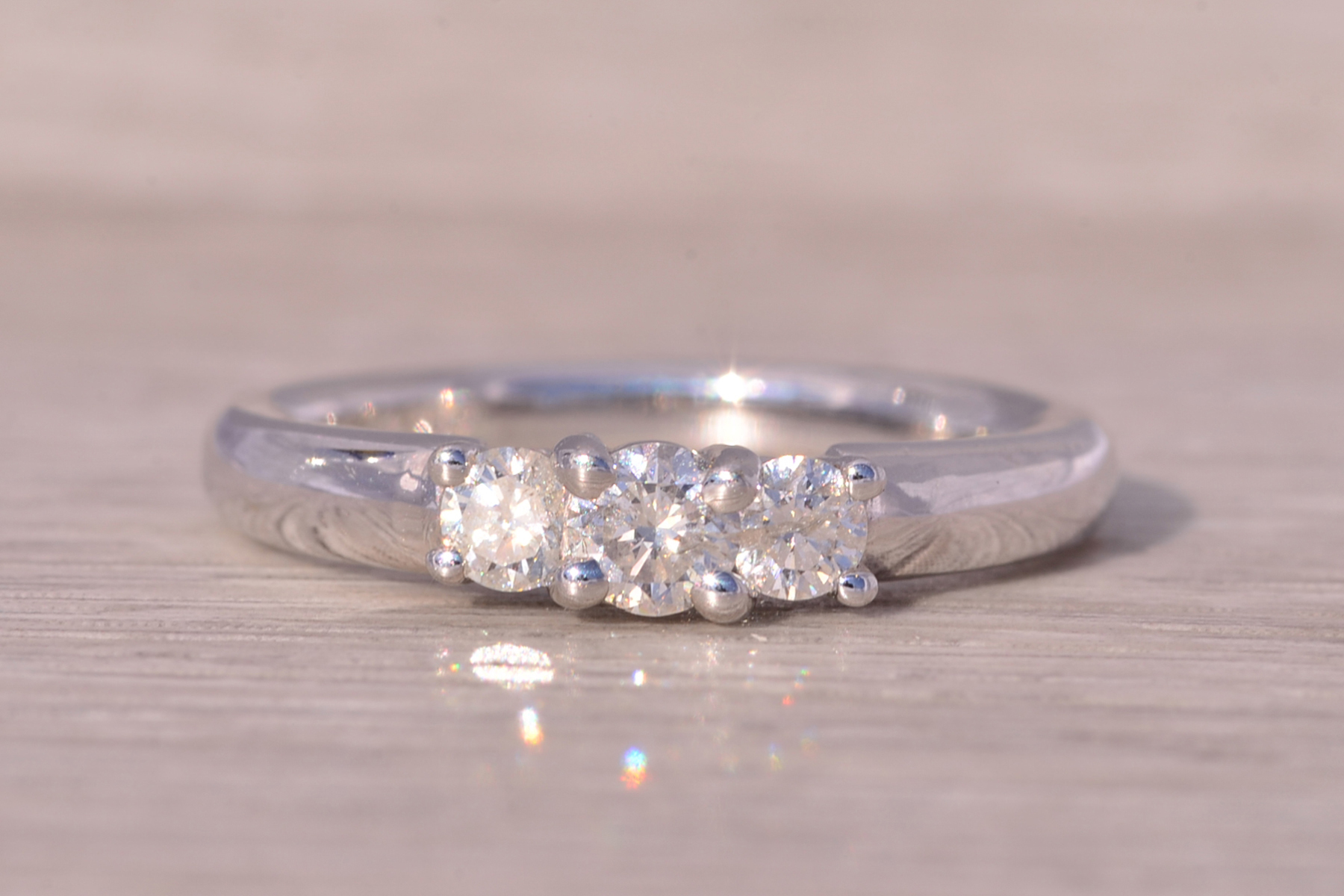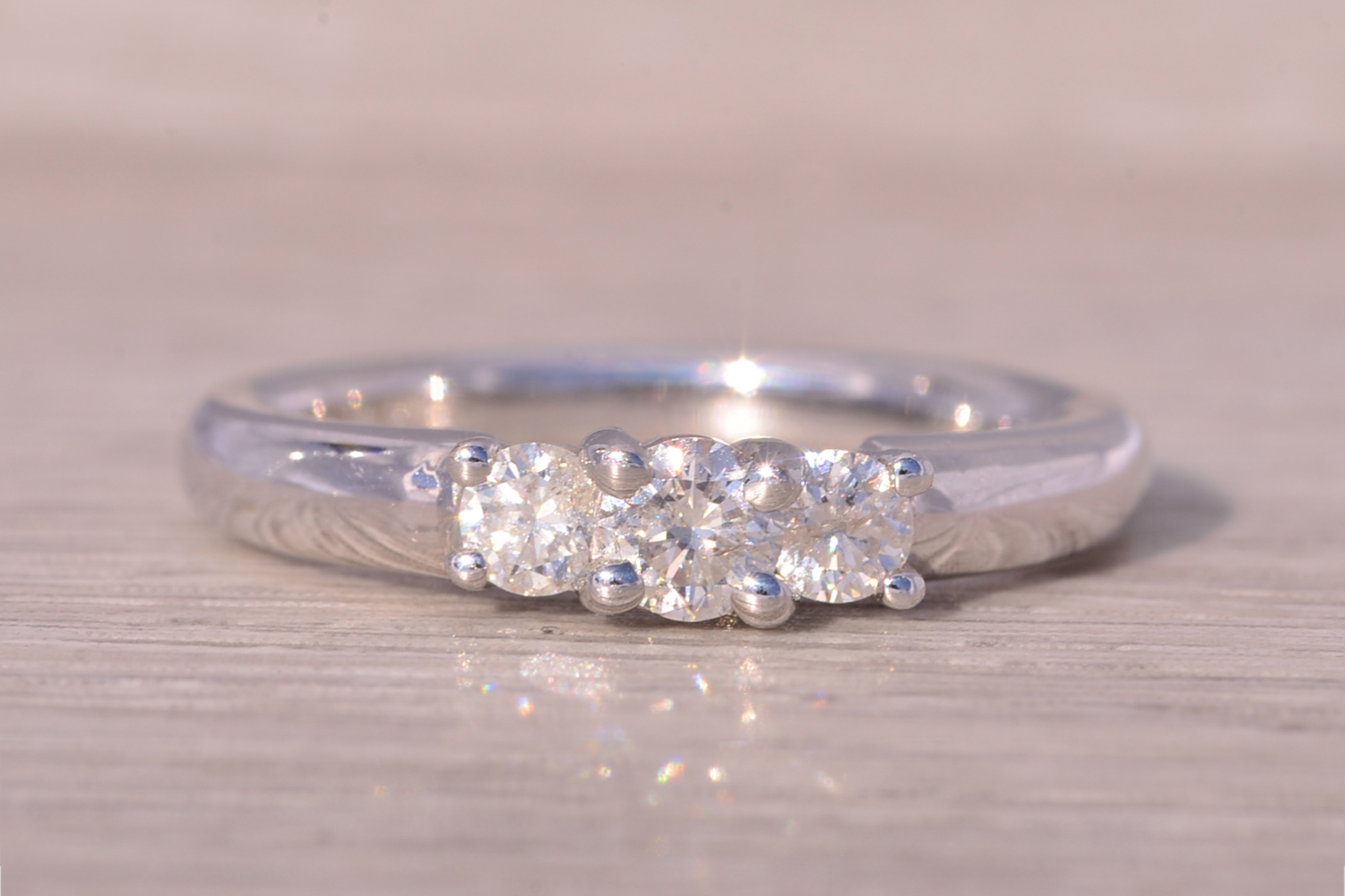 The Kelowna: Three Stone Natural Diamond Ring in White Gold