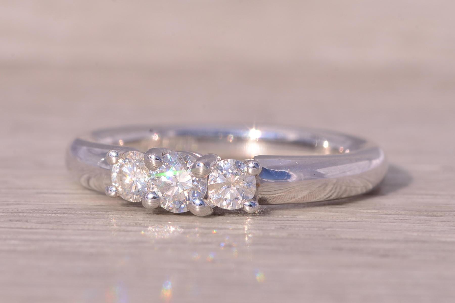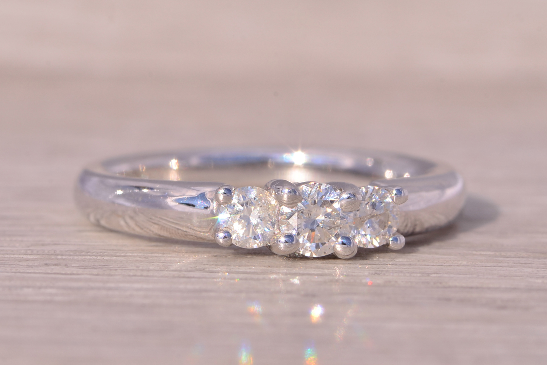 You're viewing: The Kelowna: Three Stone Natural Diamond Ring in White Gold $975.98