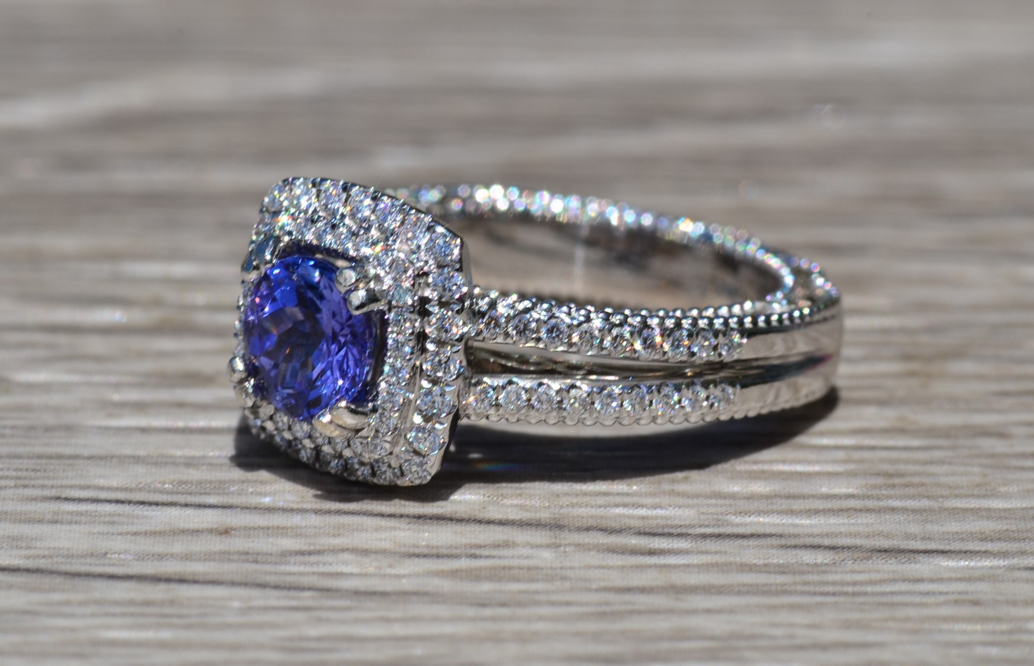 SKU: 18002430 Categories: All Antique & Vintage Engagement Rings, All Antiquities & Vintage, Colored Stone Engagement Rings, Contemporary Jewelry, Engagement Rings Tags: 14 karat, blue, diamond, diamond engagement, double halo, engagement ring, girls, halo, halo ring, Ladies, round, split shank, tanzanite, tanzanite engagement, Verragio, White Gold, women