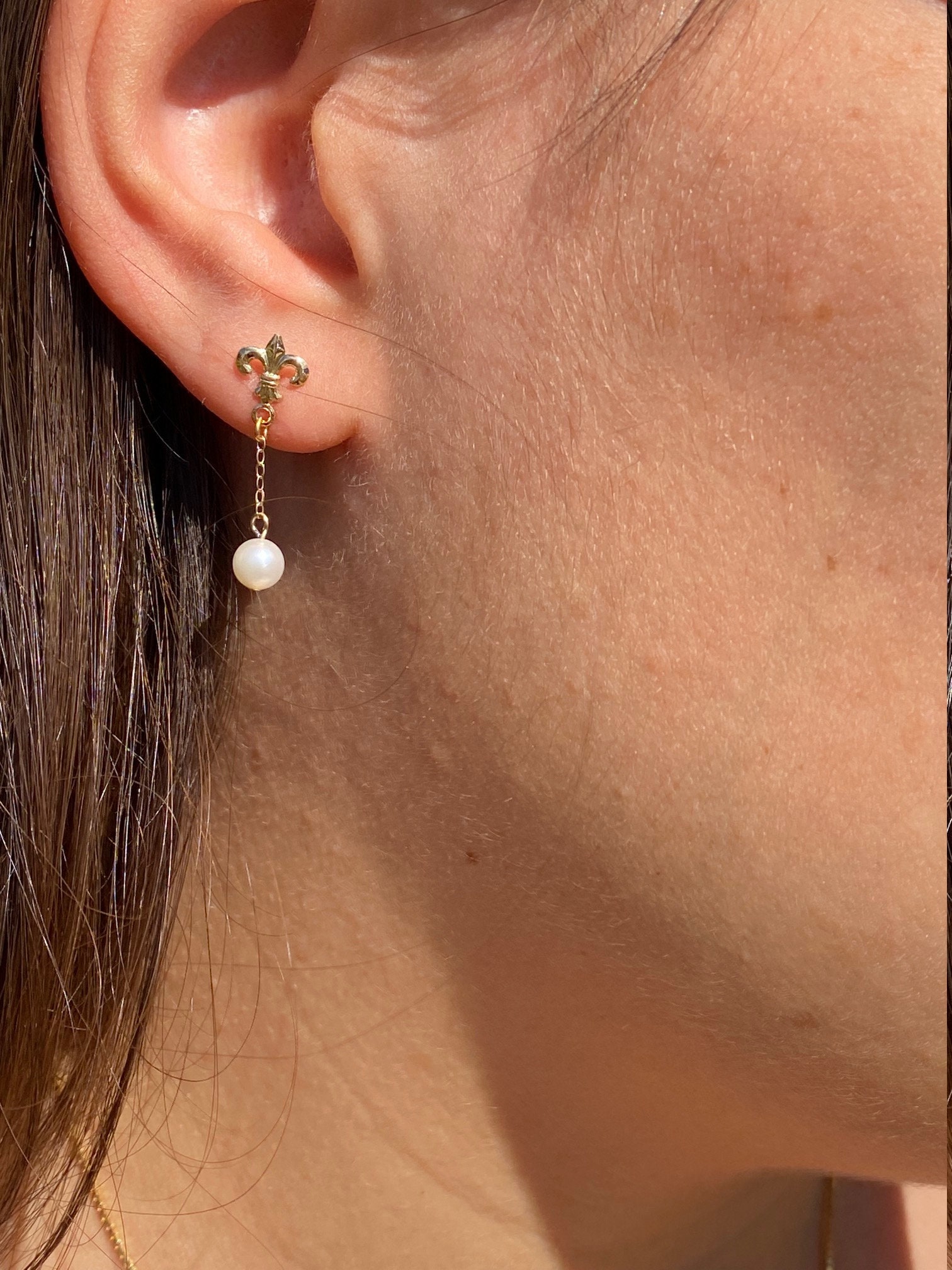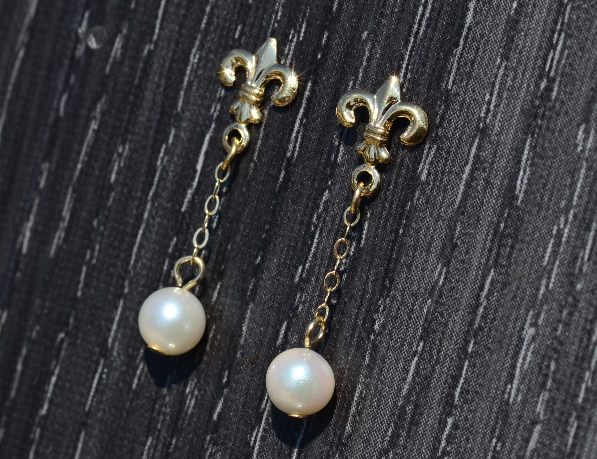 The Lighthouse Point: Ladies Fleur De Lis Pearl Dangler Earrings