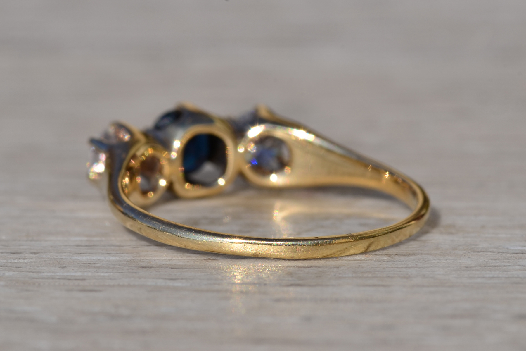 The Macleay:  Ladies Antique Sapphire and Diamond Trilogy Ring in Yellow Gold - Image 7