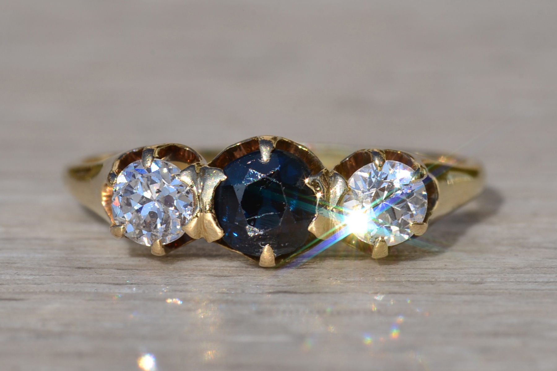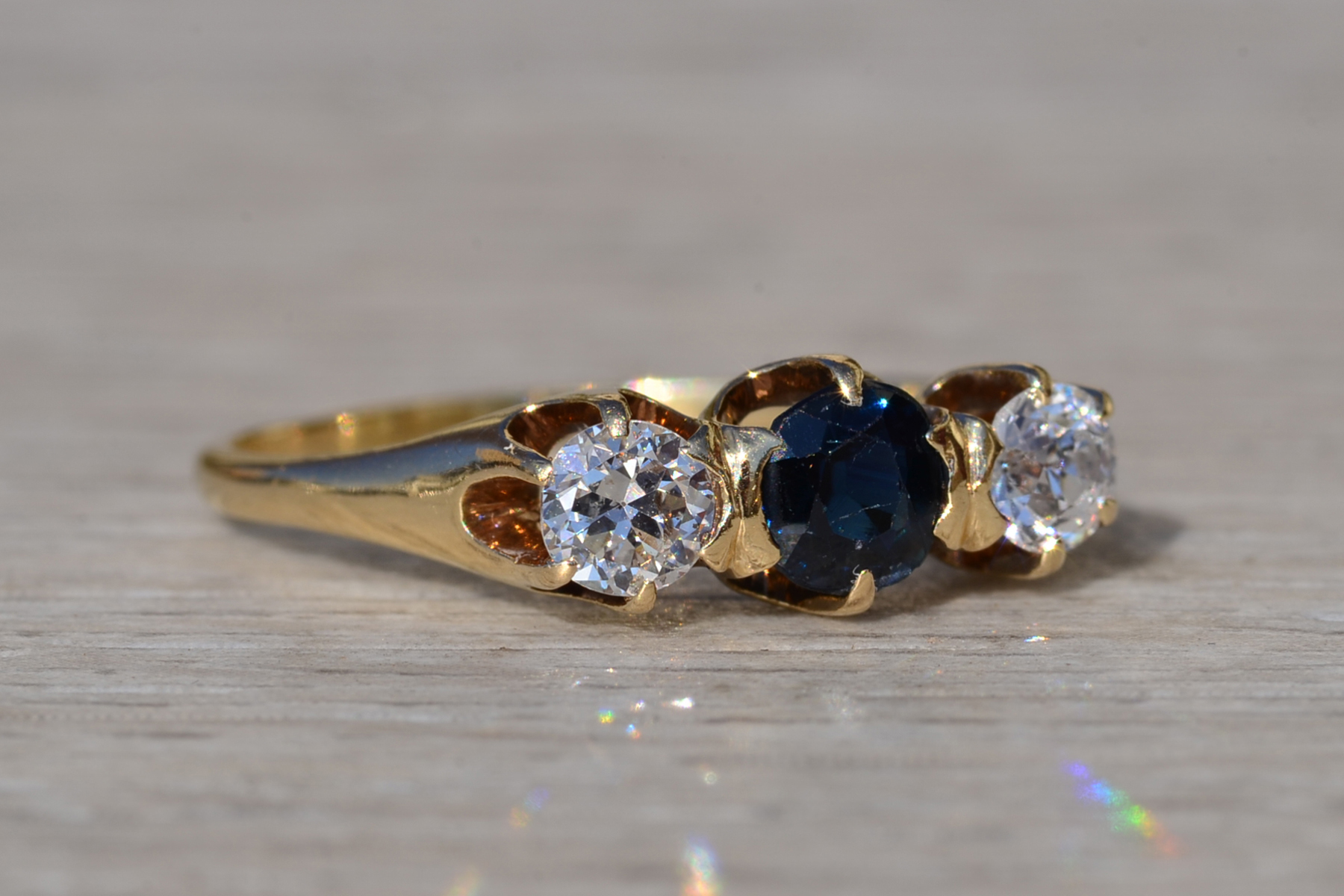 The Macleay: Ladies Antique Sapphire and Diamond Trilogy Ring in Yellow Gold