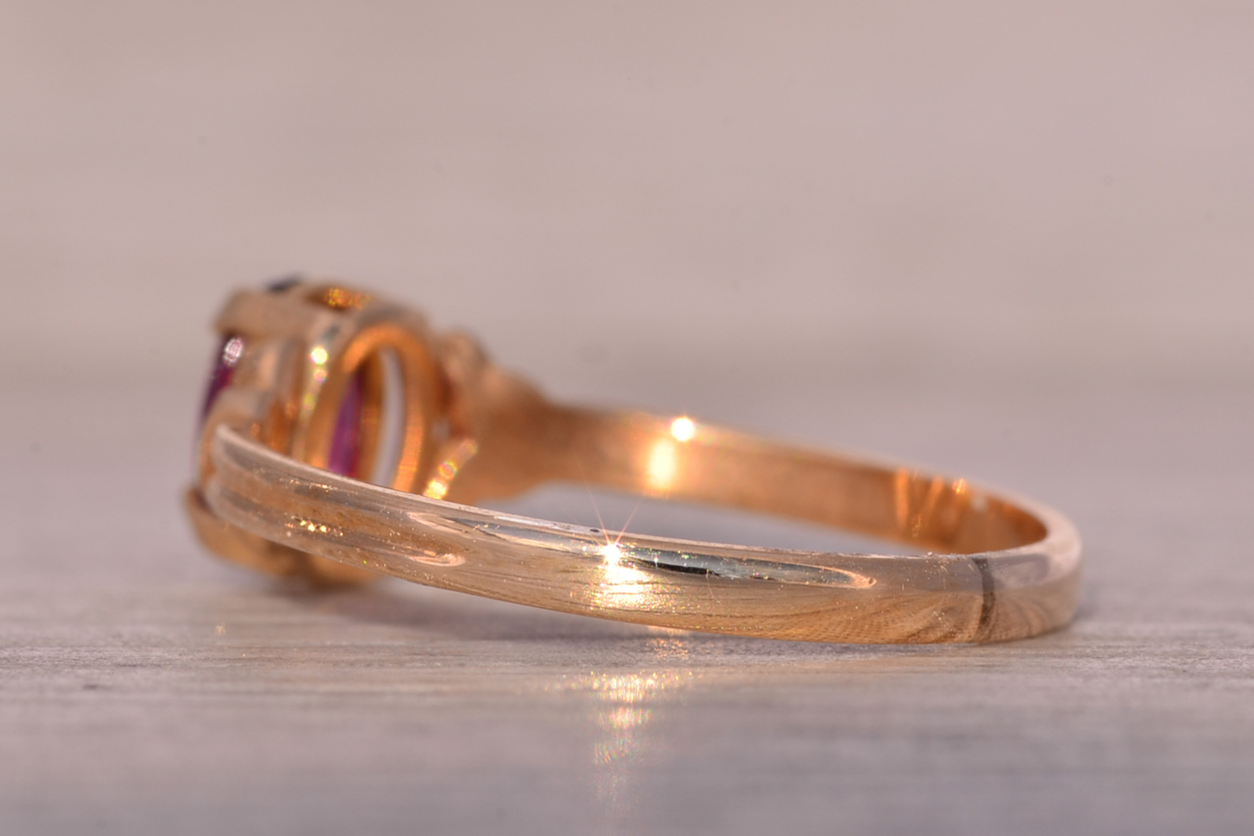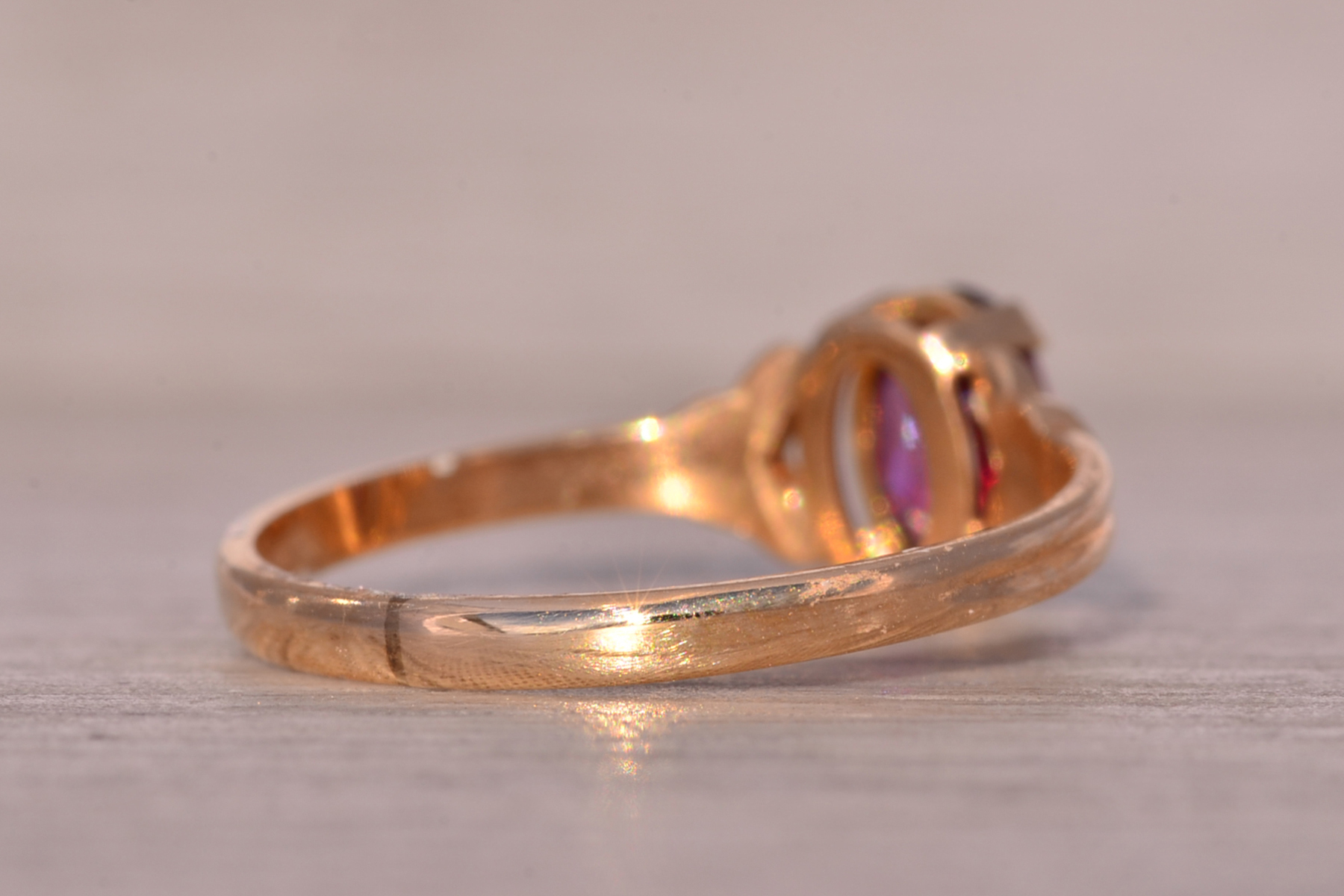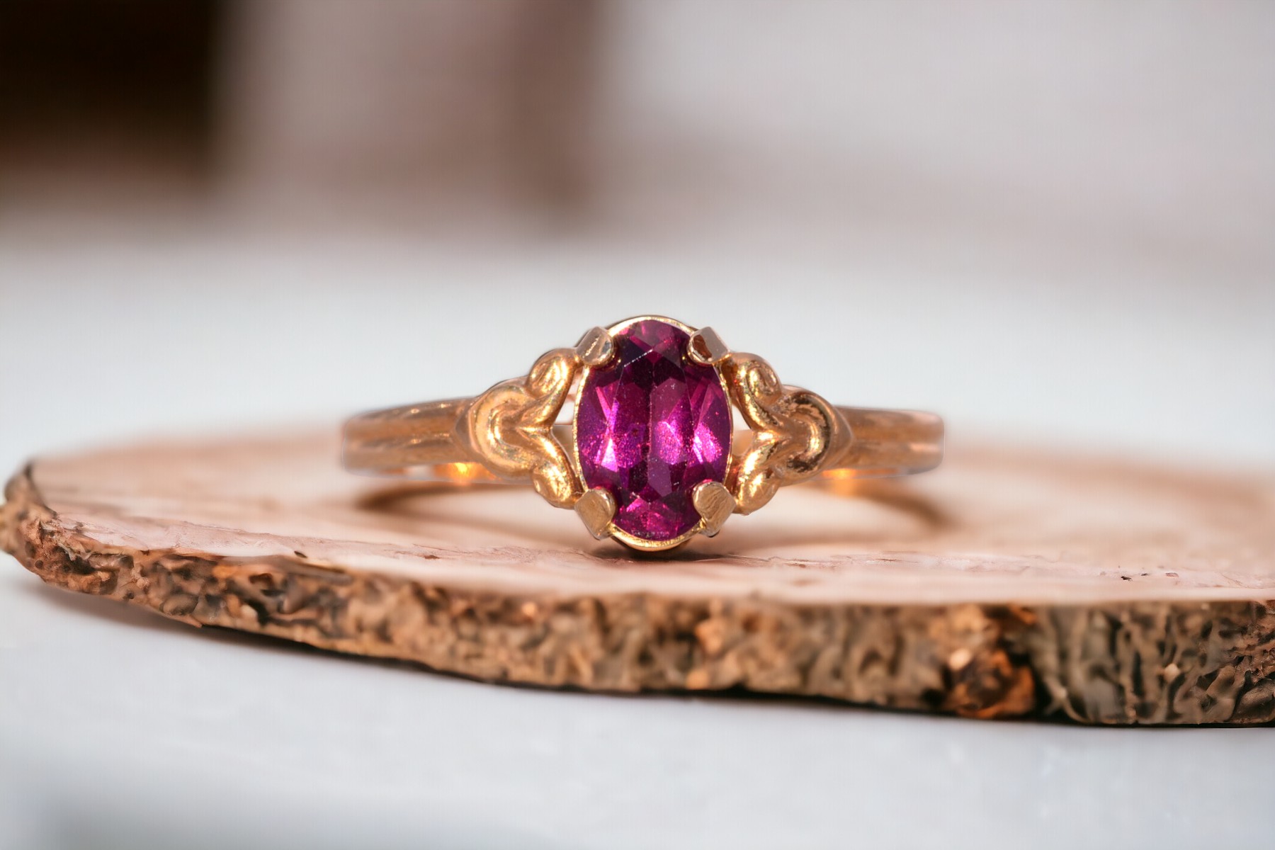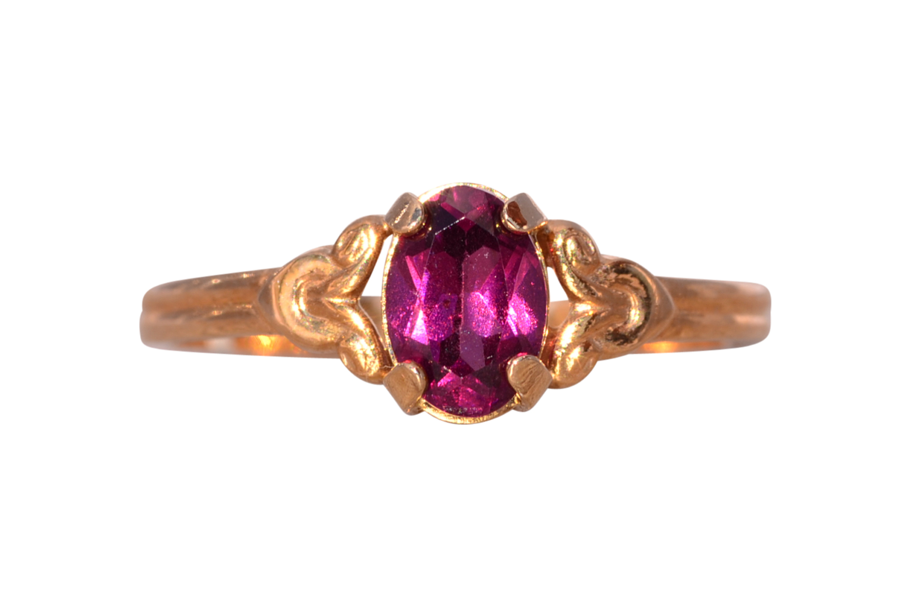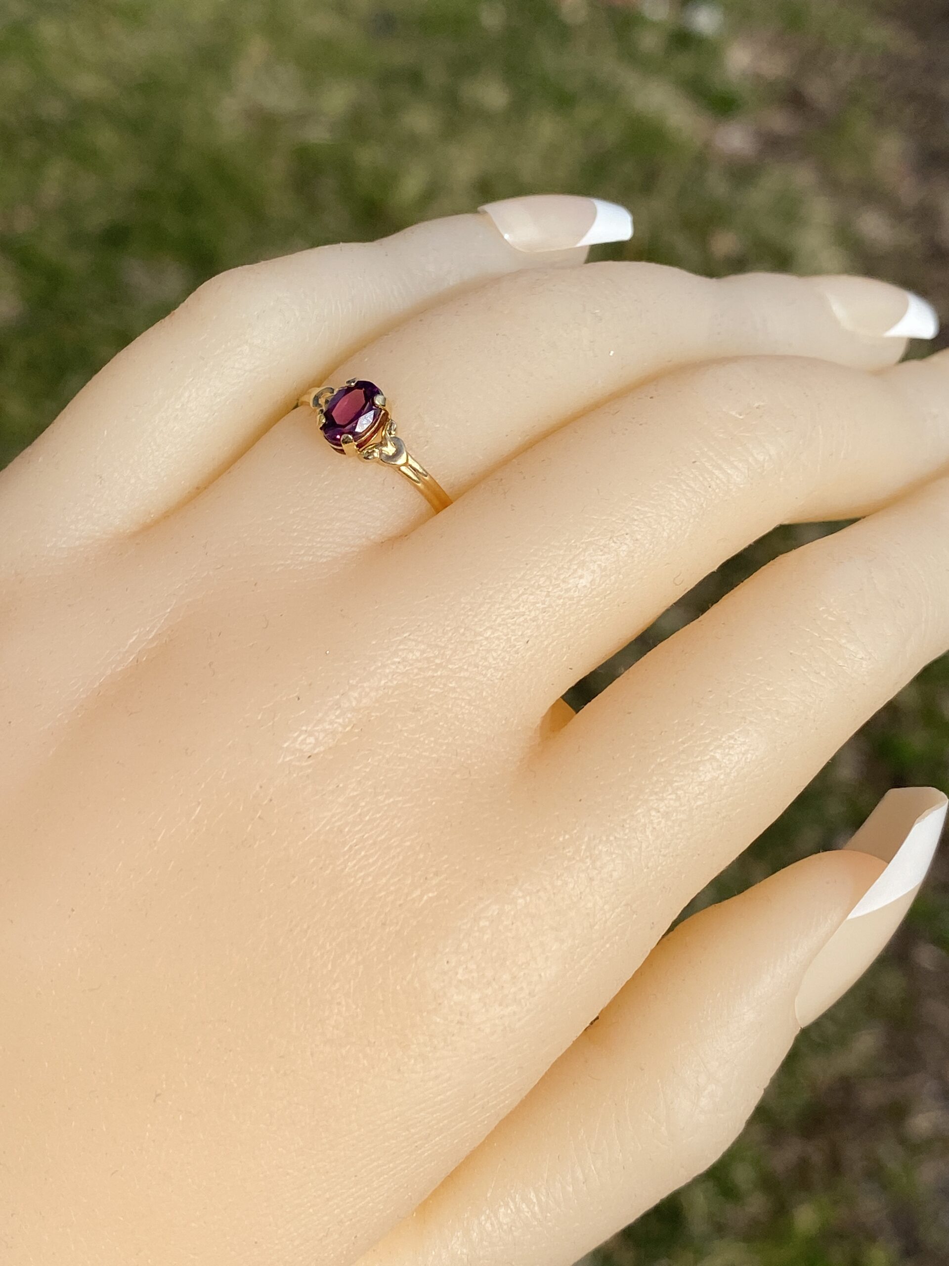 The Moncton: Amethyst Ring in Yellow Gold with Patterned Edge. This captivating ring features a stunning oval brilliant cut natural amethyst at its center, radiating beauty and allure. On either side of the center stone, scrolled tops add a touch of elegance, while the ridged shank enhances the ring’s unique charm. Crafted with care in lustrous 14 karat yellow gold, this ring exudes warmth and sophistication. Currently sized at 4.25, it offers the flexibility to be adjusted to any finger size for an additional fee upon request.