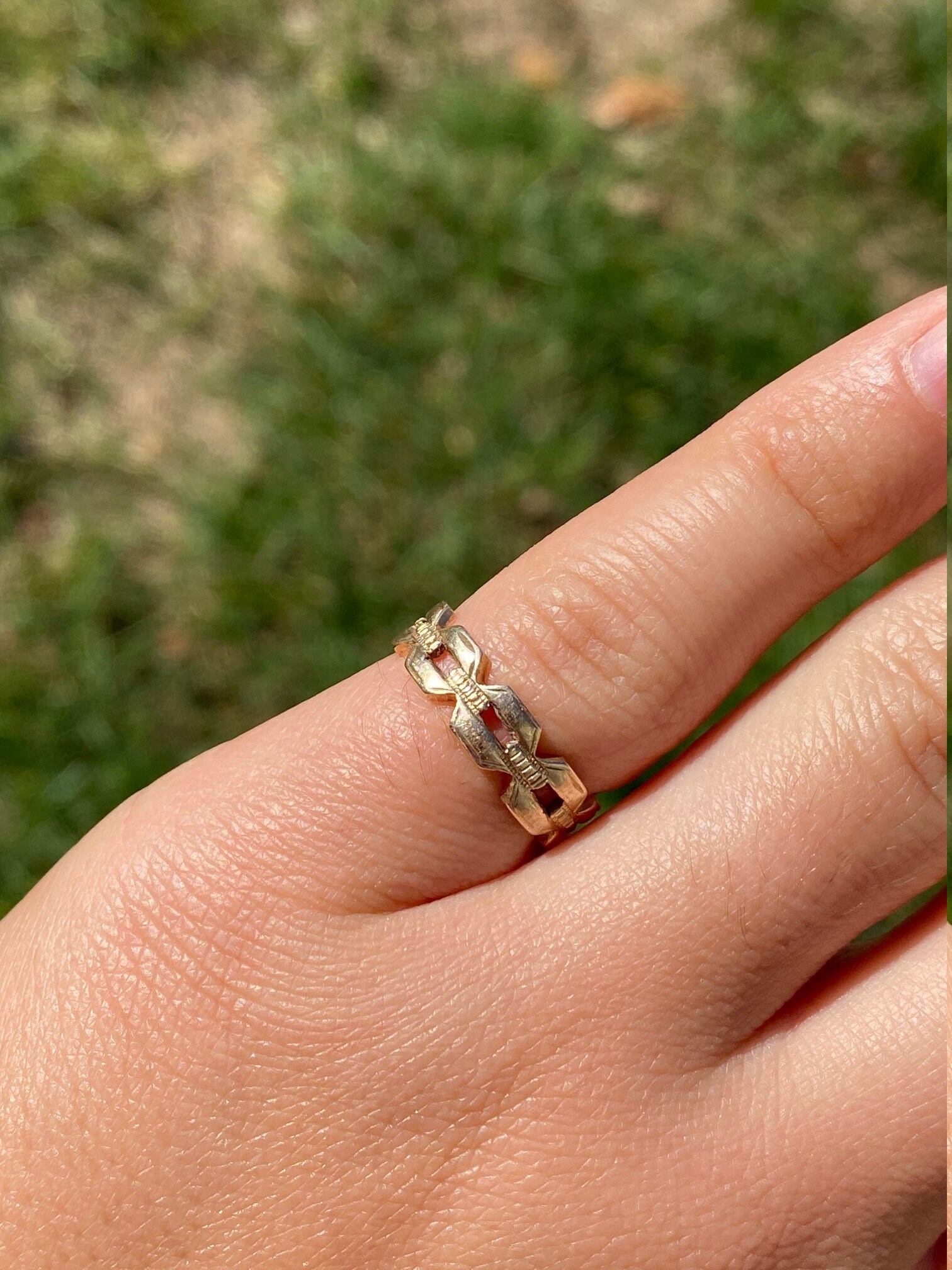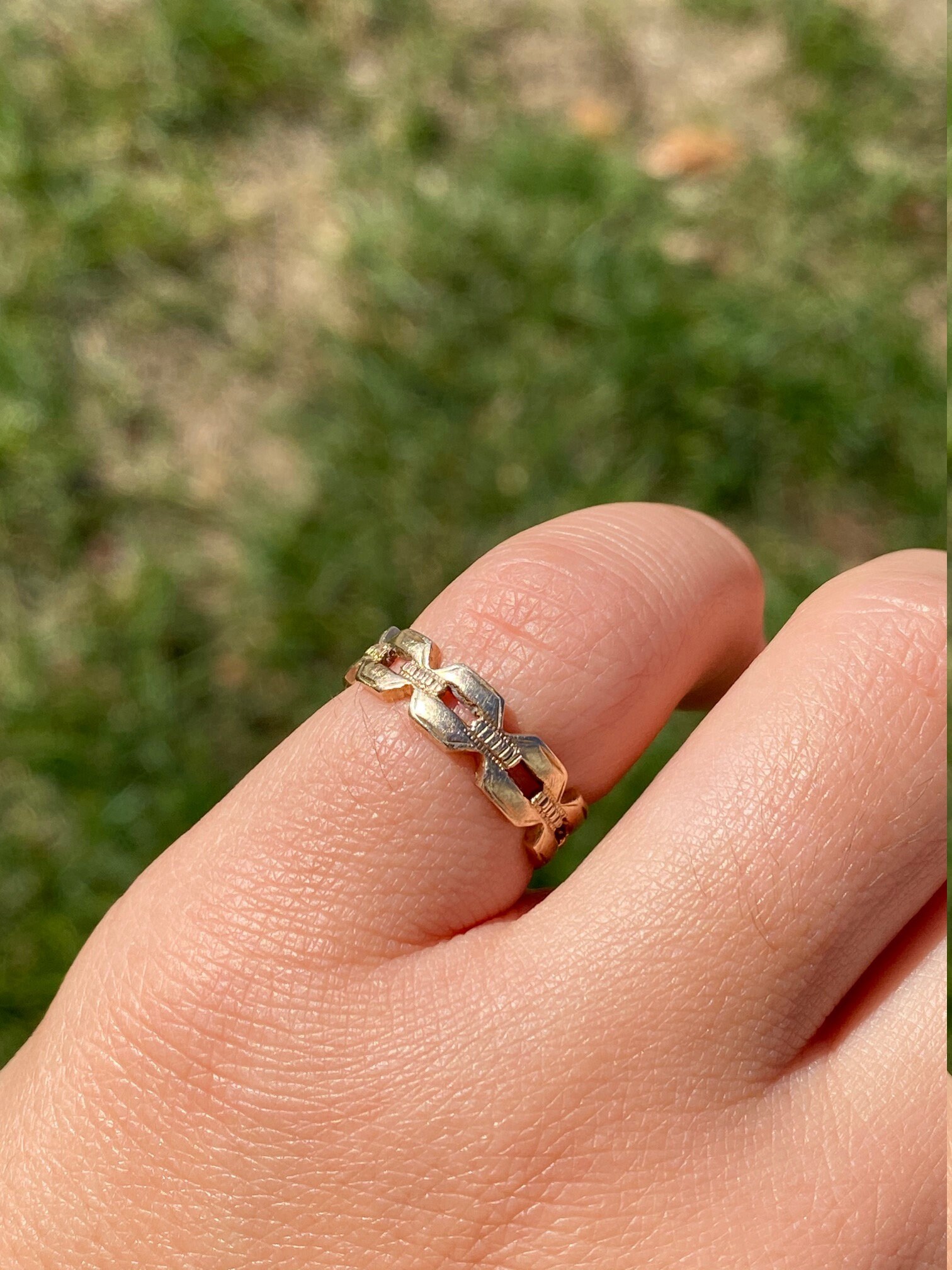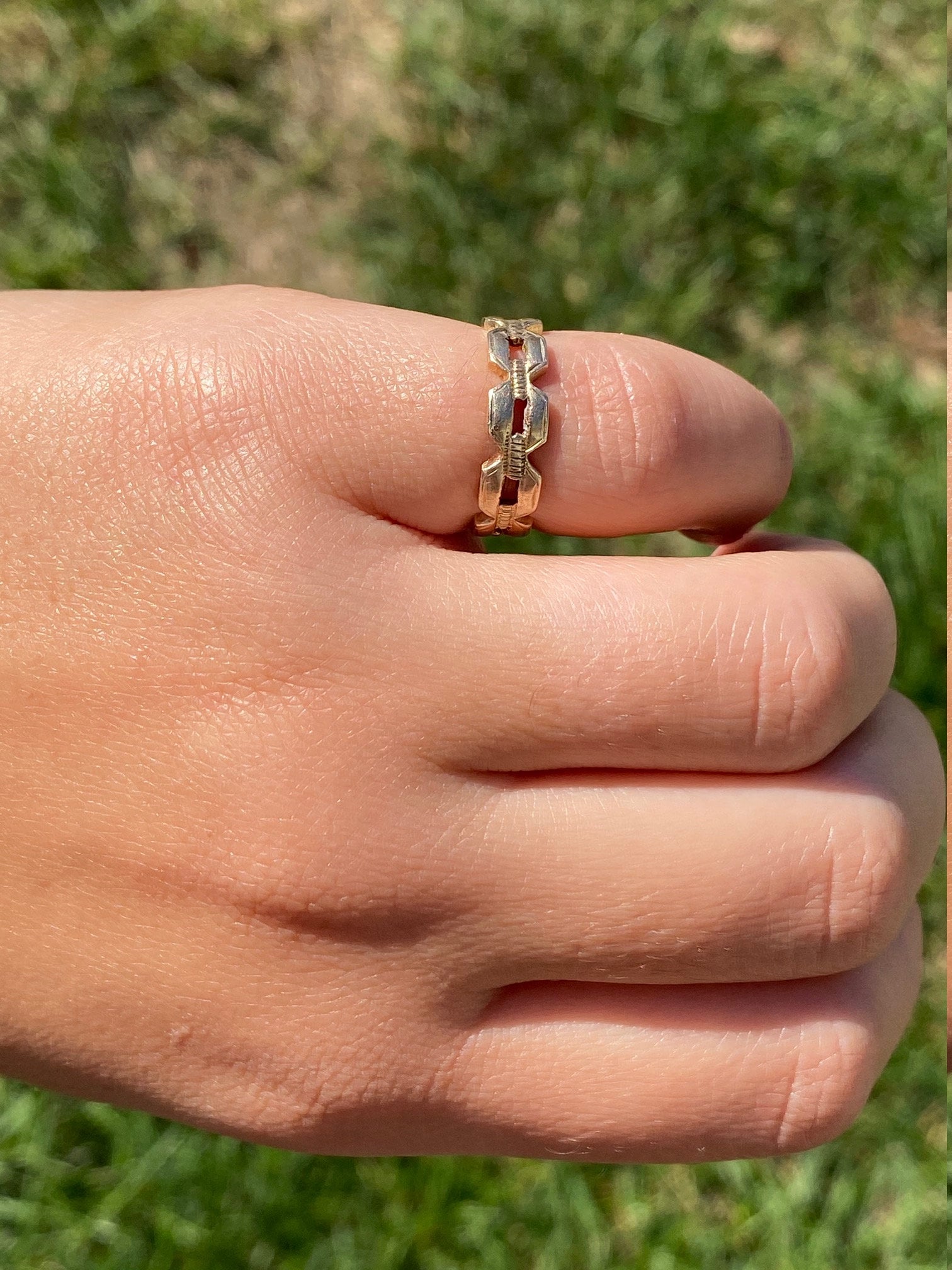 Antique 14 K Gold Cable Link Eternity Band. This bold, vintage-luxe link band adds instant sophistication to your look with an antique flare. This band is a finger size 5.5.