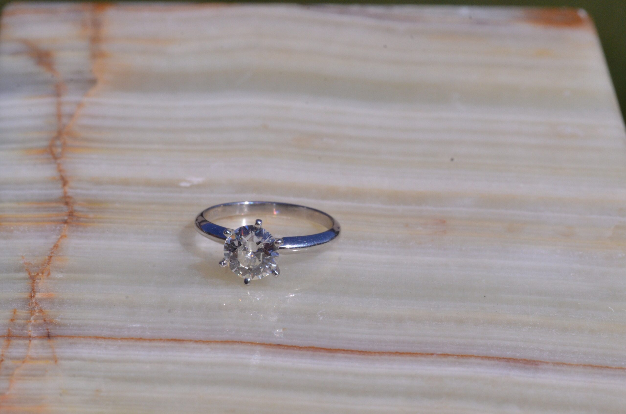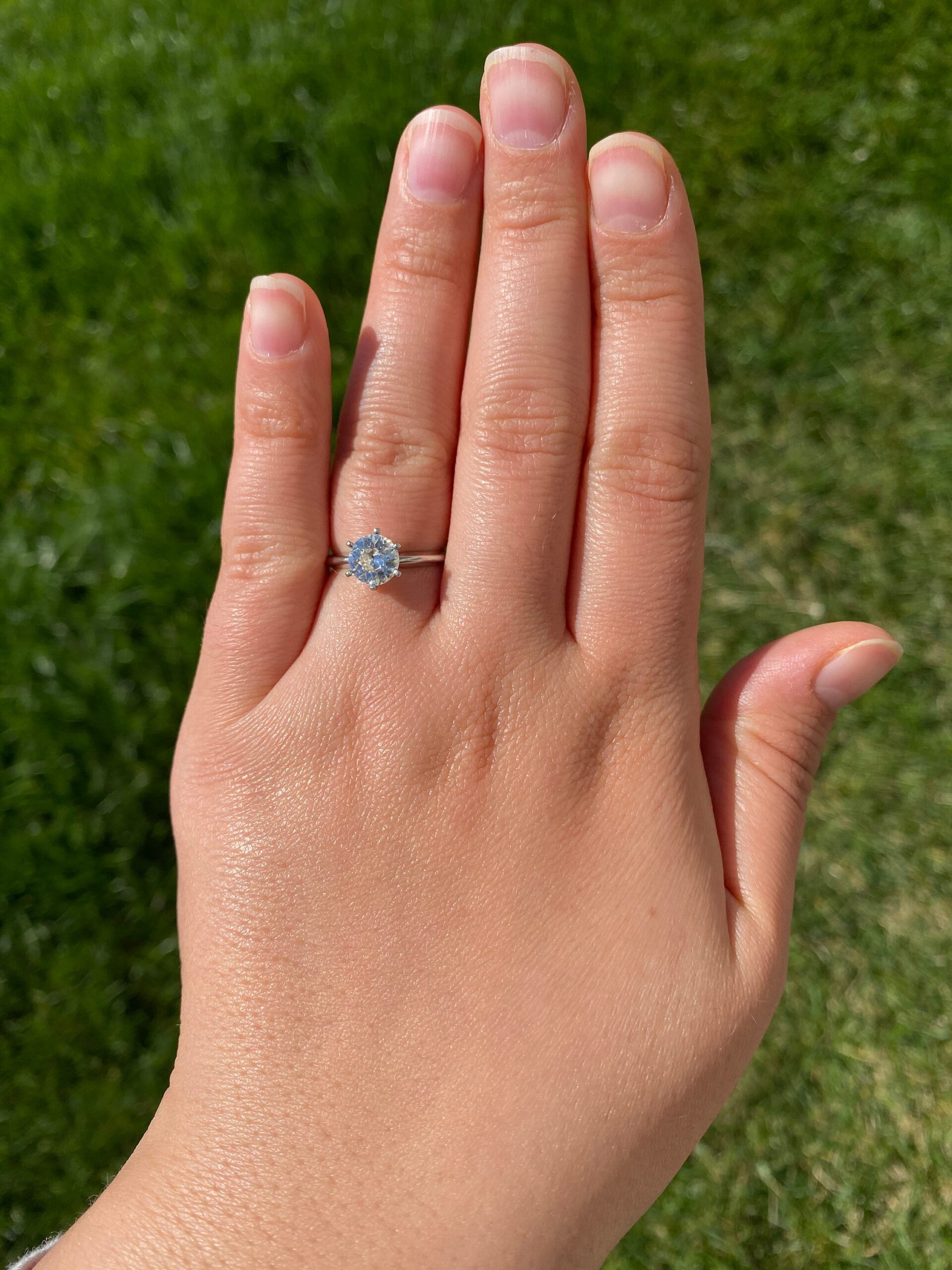 Platinum Solitaire Ring set with 1.12 ct Old Mine Cut Diamond. The diamond has an approximate Gemological Institute of America clarity grade of Si1 and a color grade of I. This stunning solitaire ring is crafted in platinum and is currently a finger size 6, but can be adjusted to any size.