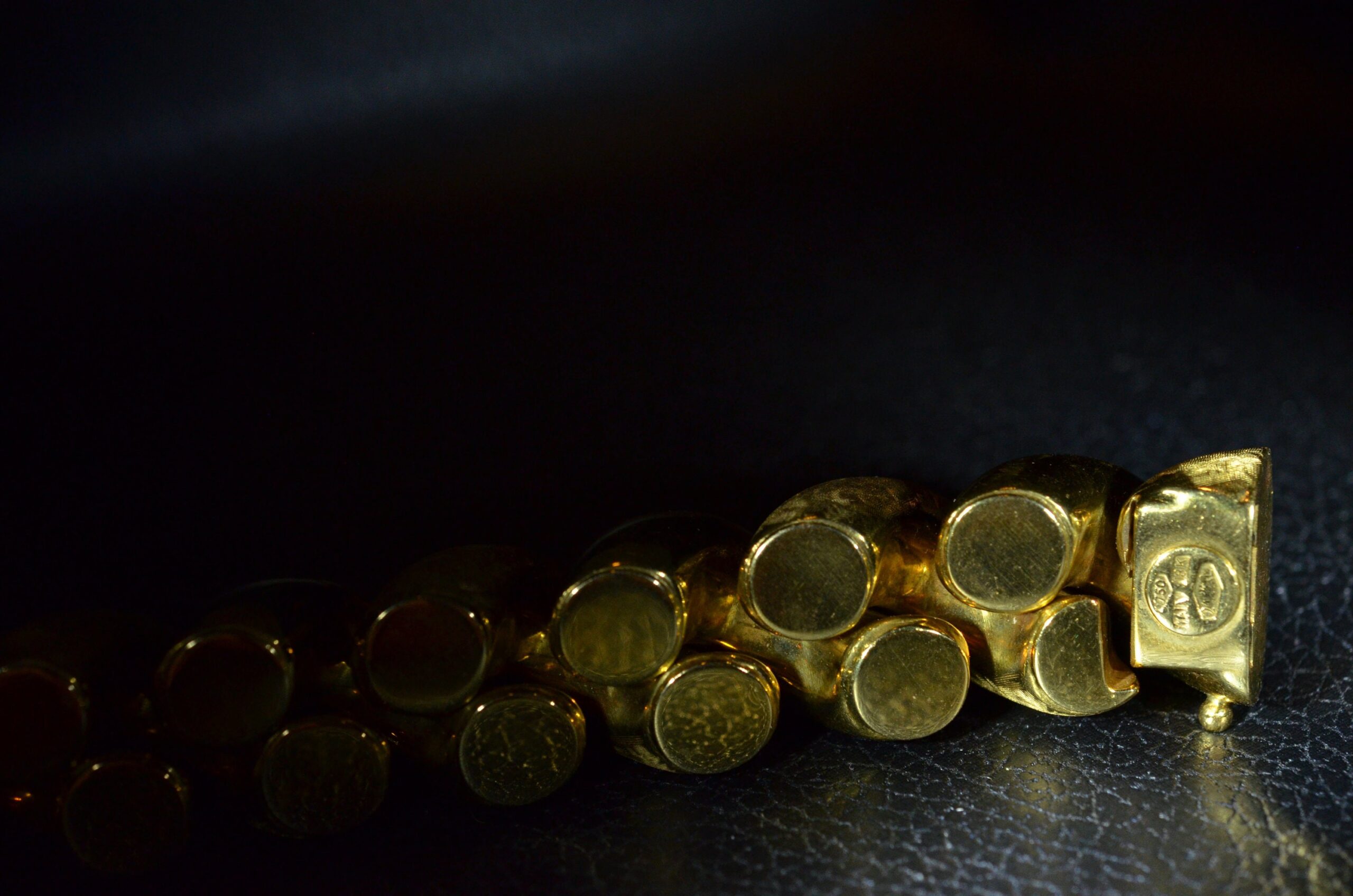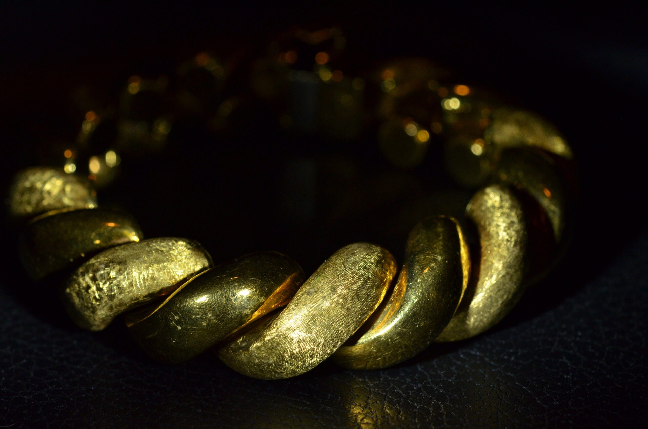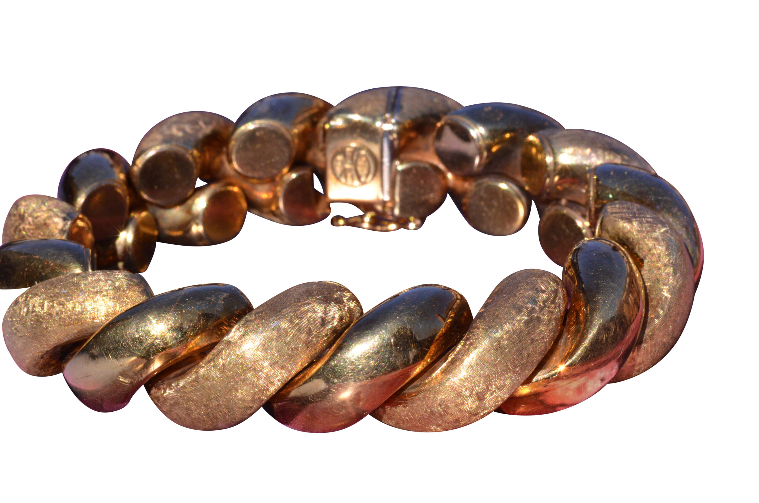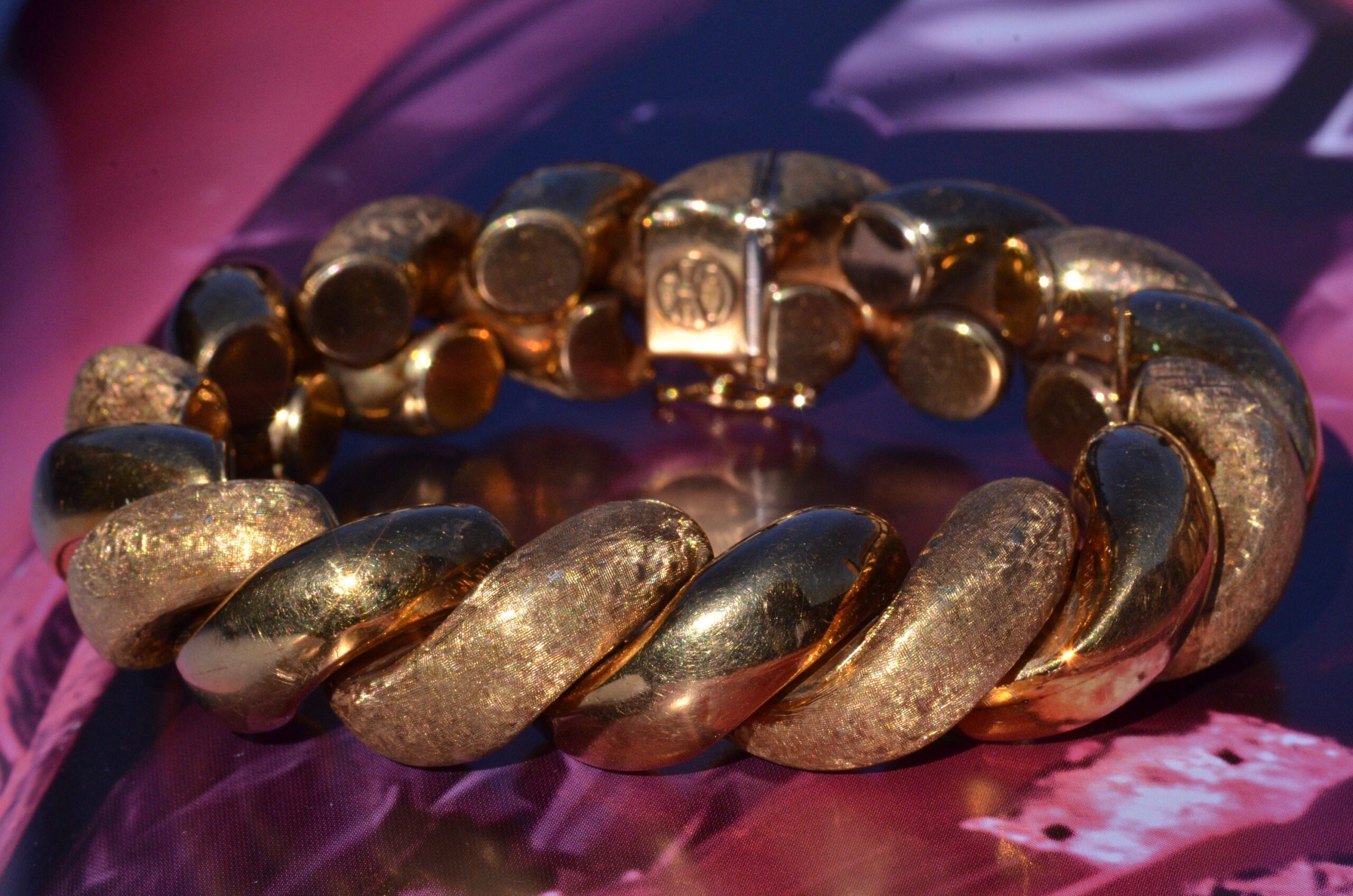 Vintage extremely heavy 18 Karat Yellow Gold Bracelet with Polished and Brushed Sections