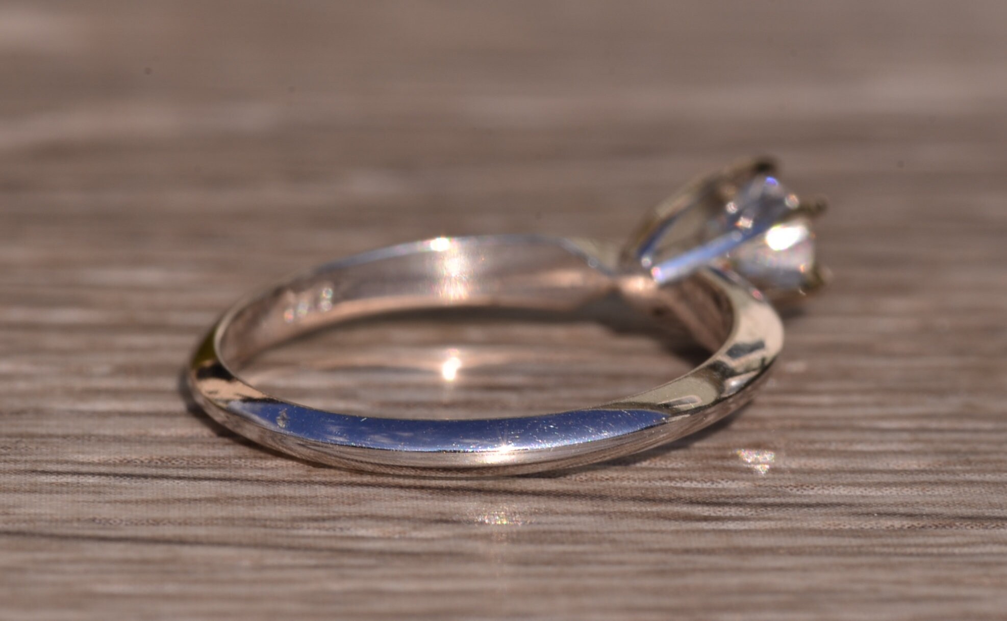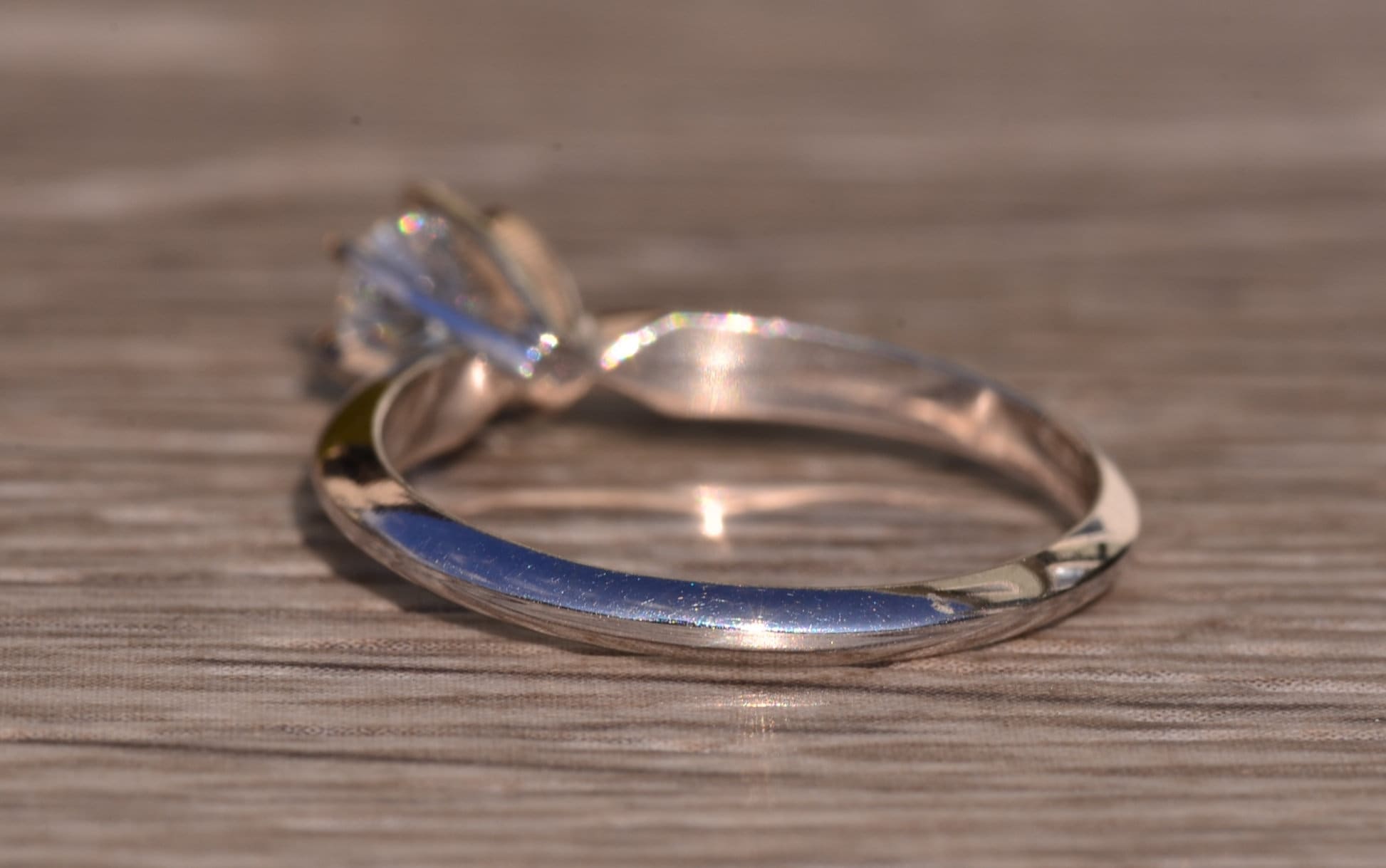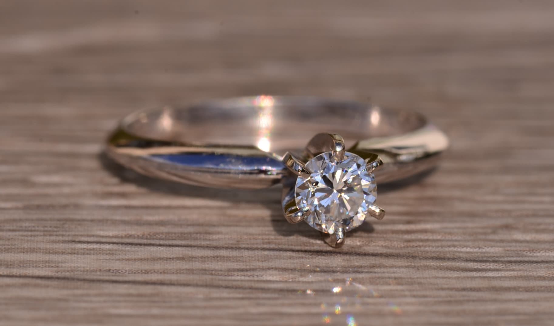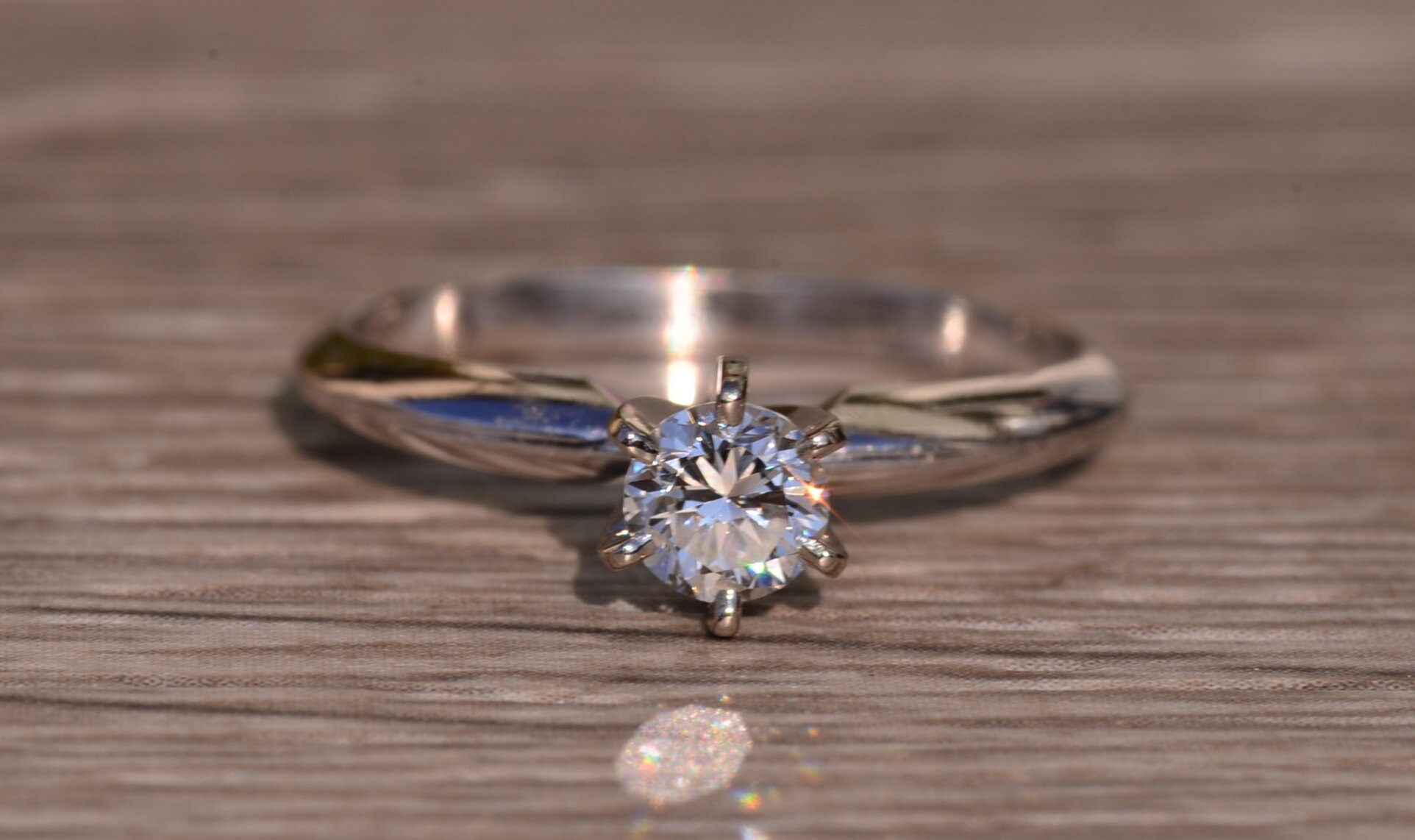 The Putney: White Gold Solitaire Engagement Ring with 0.33 Carat Natural Diamond. The center is safely six prong set with a 0.33 carat round brilliant cut natural diamond. The diamond has an approximate gemological Institute of America clarity grade of Vs1 and a color grade of H. The shank pinches at the top and has a knife edge style shank design to help feature the center stone. The ring is crafted in 14 karat white gold and is currently a finger size 6 1/4 yet can be adjusted in finger size for an additional charge.