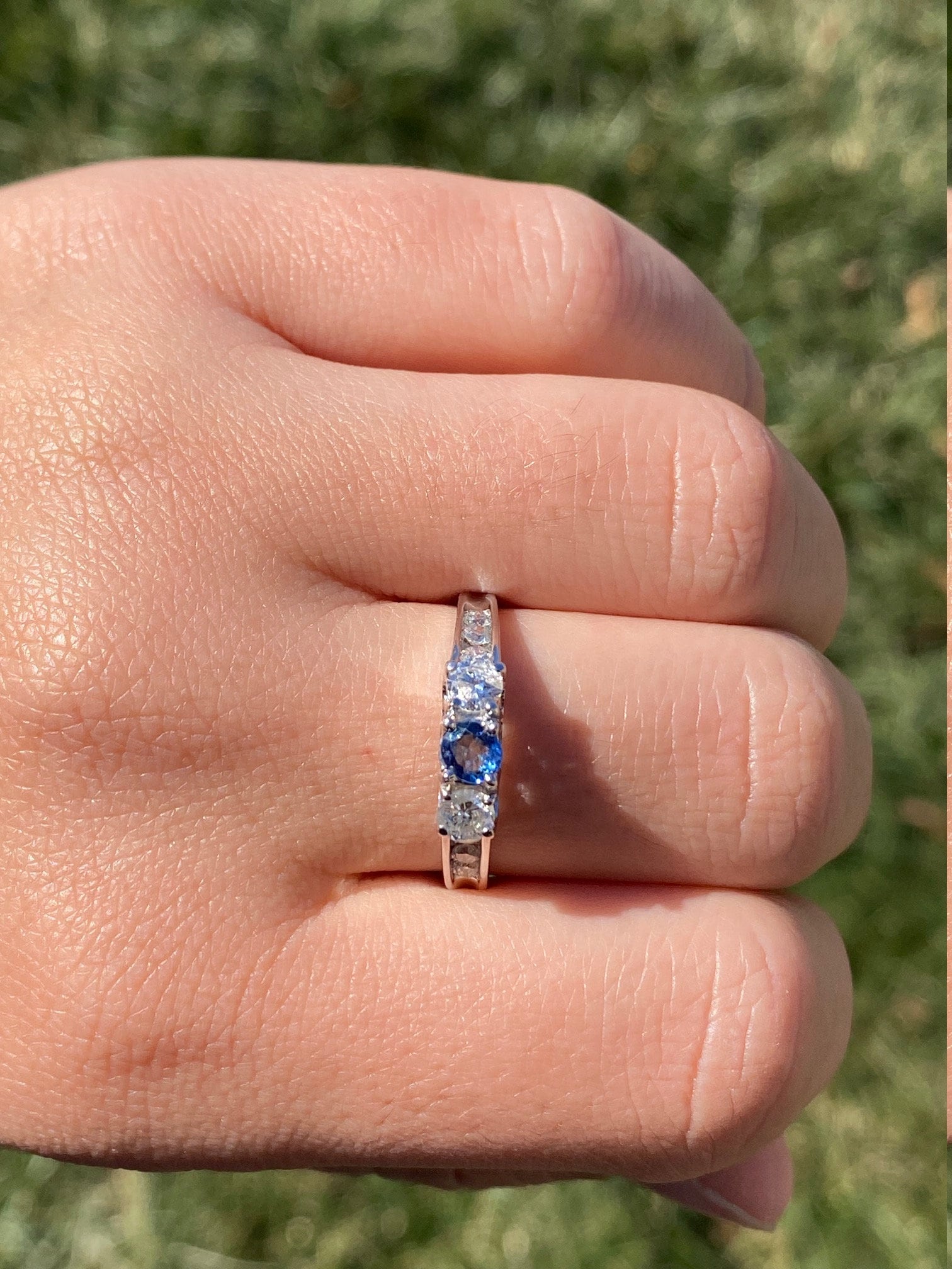 The Rainsville:  Ladies 14K Sapphire and Diamond Trilogy Engagement Ring - Image 10
