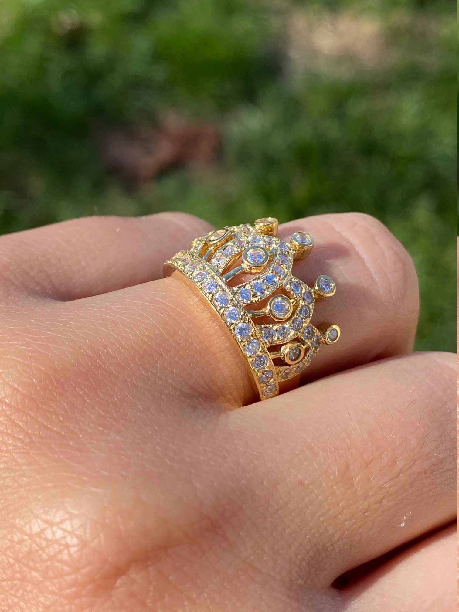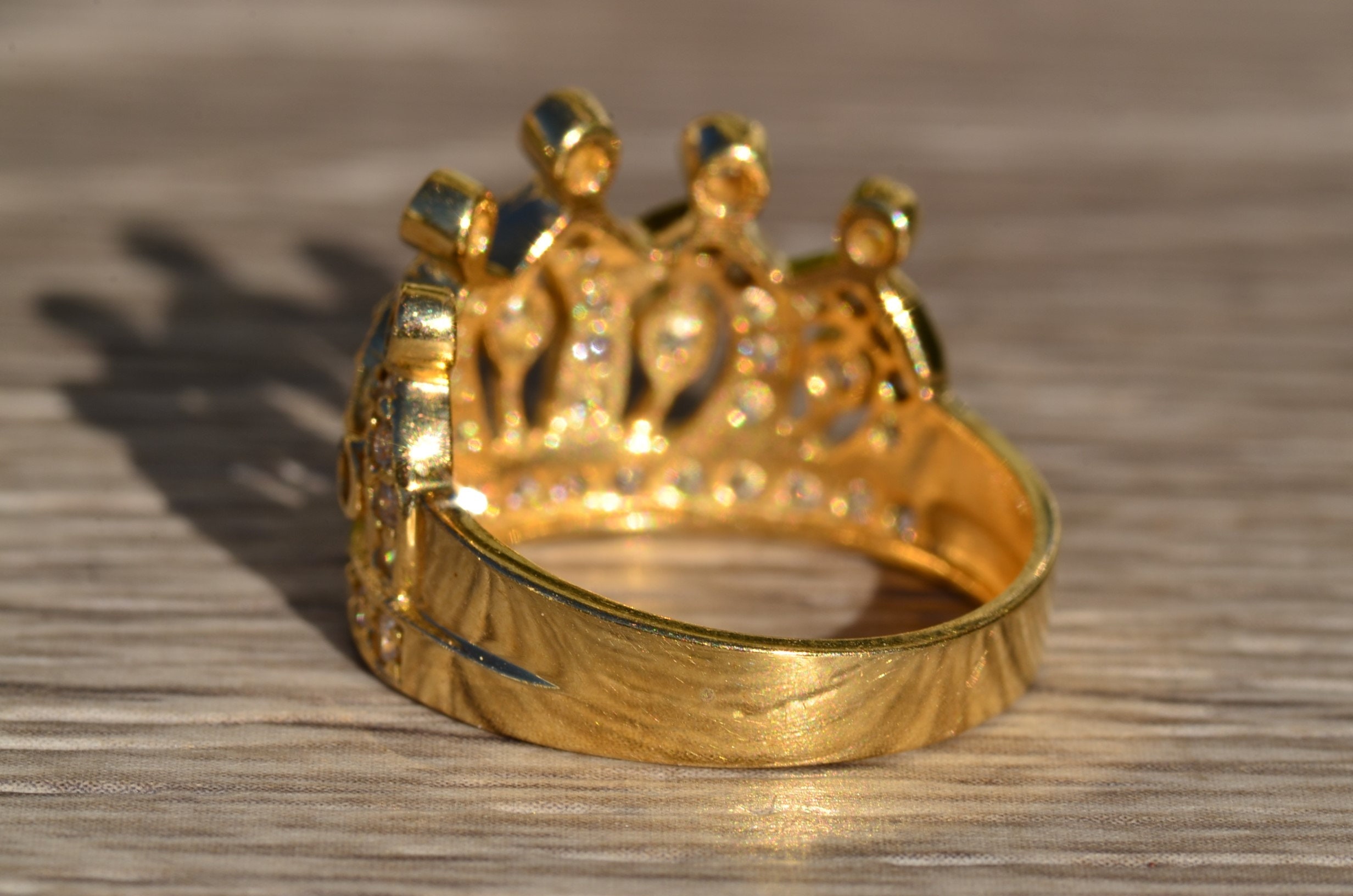The Royale: Intricate 14 K Gold Crown Ring set with Cubic Zirconia