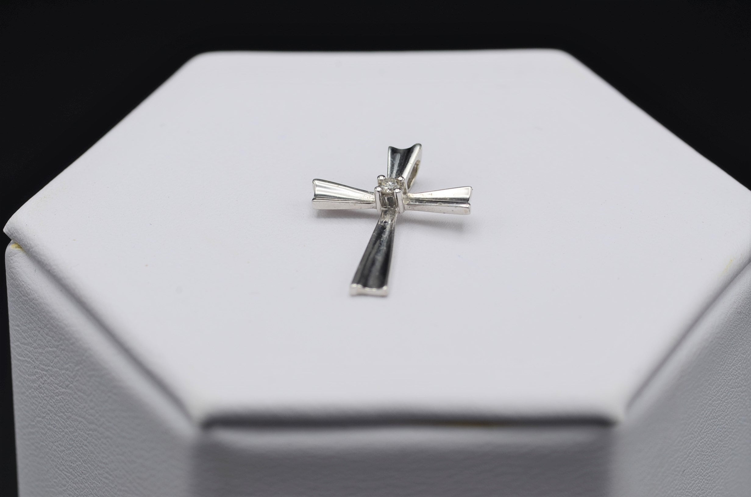 The Santo: 10 Karat White Gold Cross Pendant set with Diamond