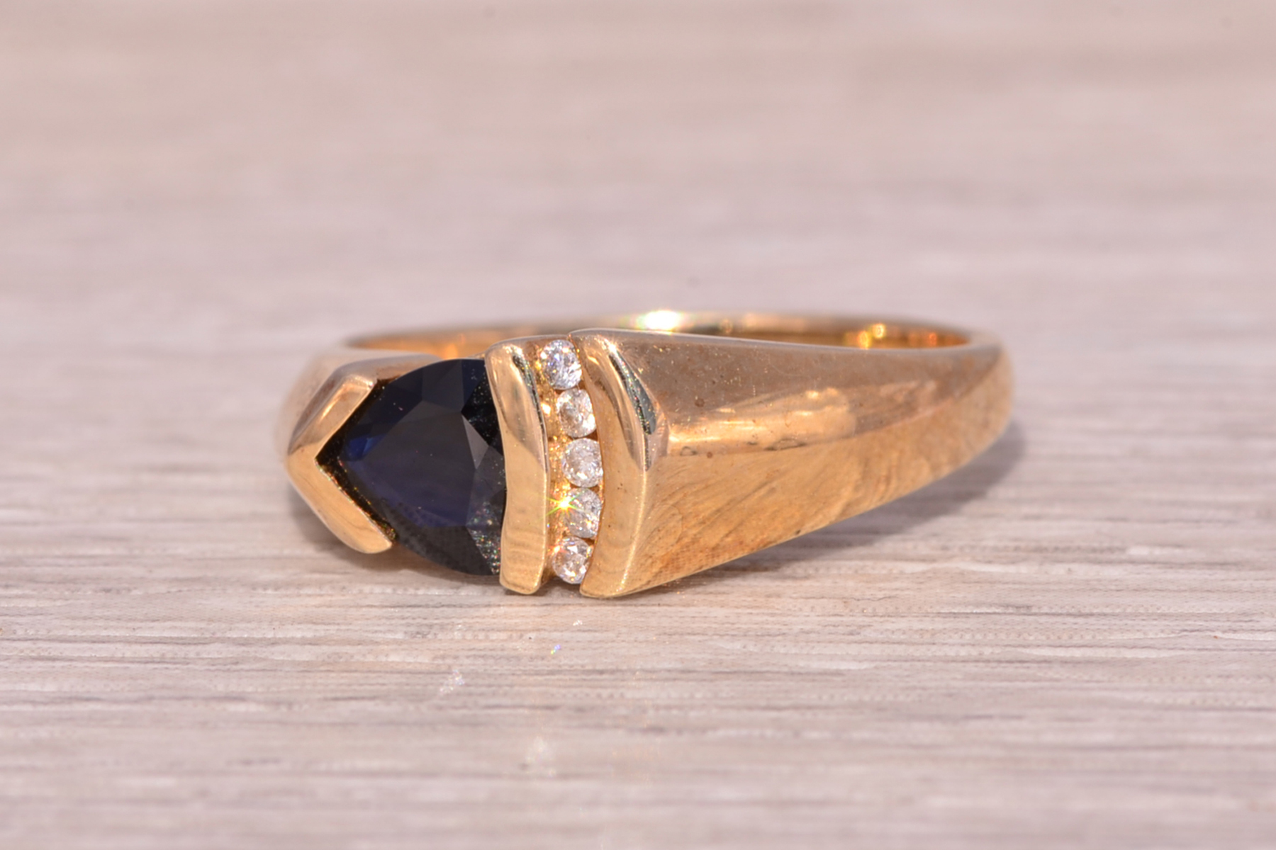 The Sapphire Ascent: Natural Sapphire and Diamond Ring in Yellow Gold