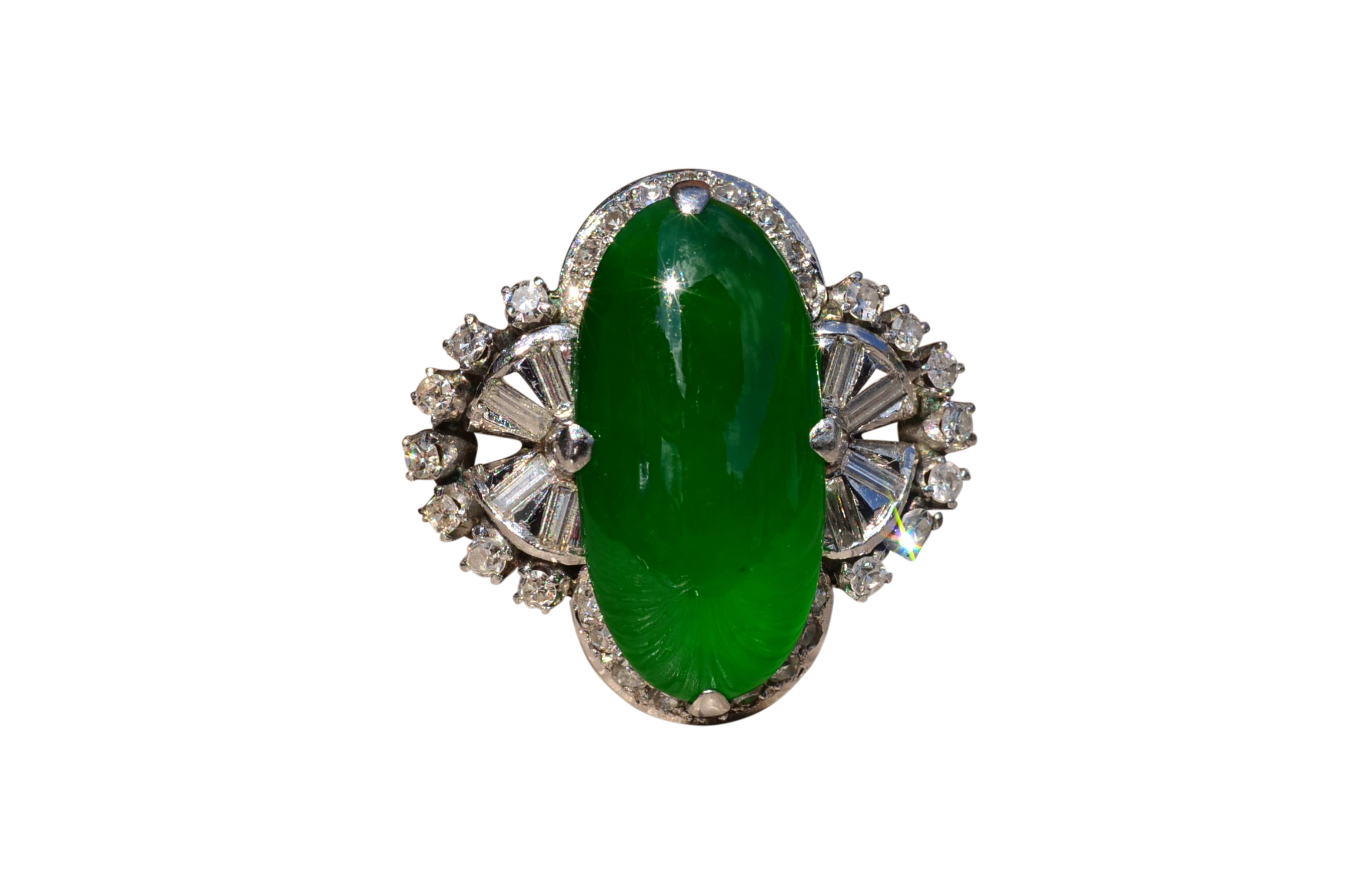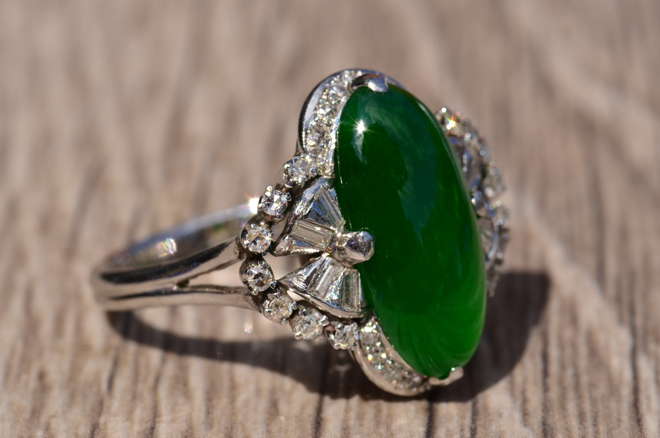 You're viewing: The Shanghai: Outstanding Signed Imperial A Fei Cui Jadeite Jade Ring in Platinum set with Diamonds $42,542.50