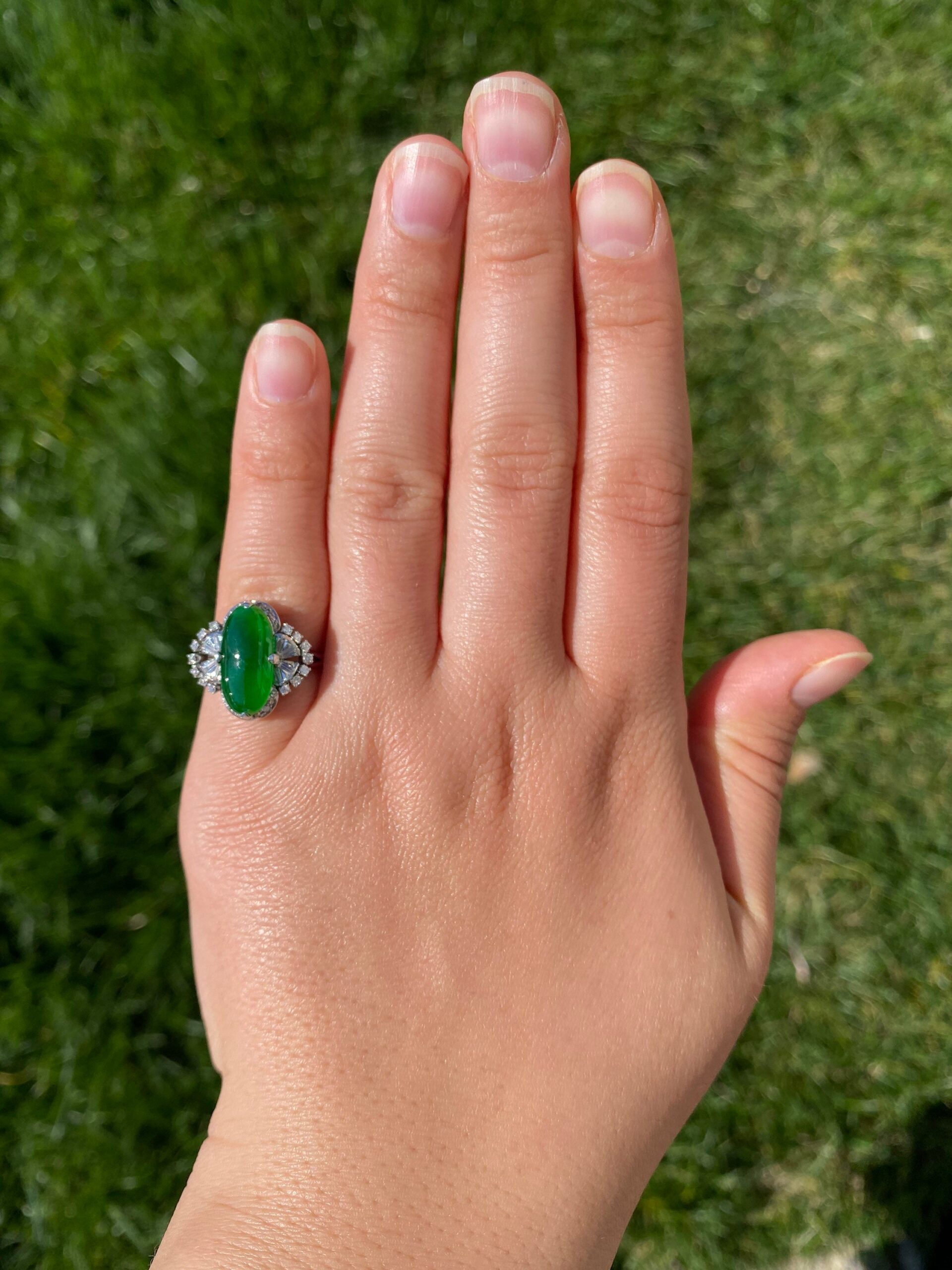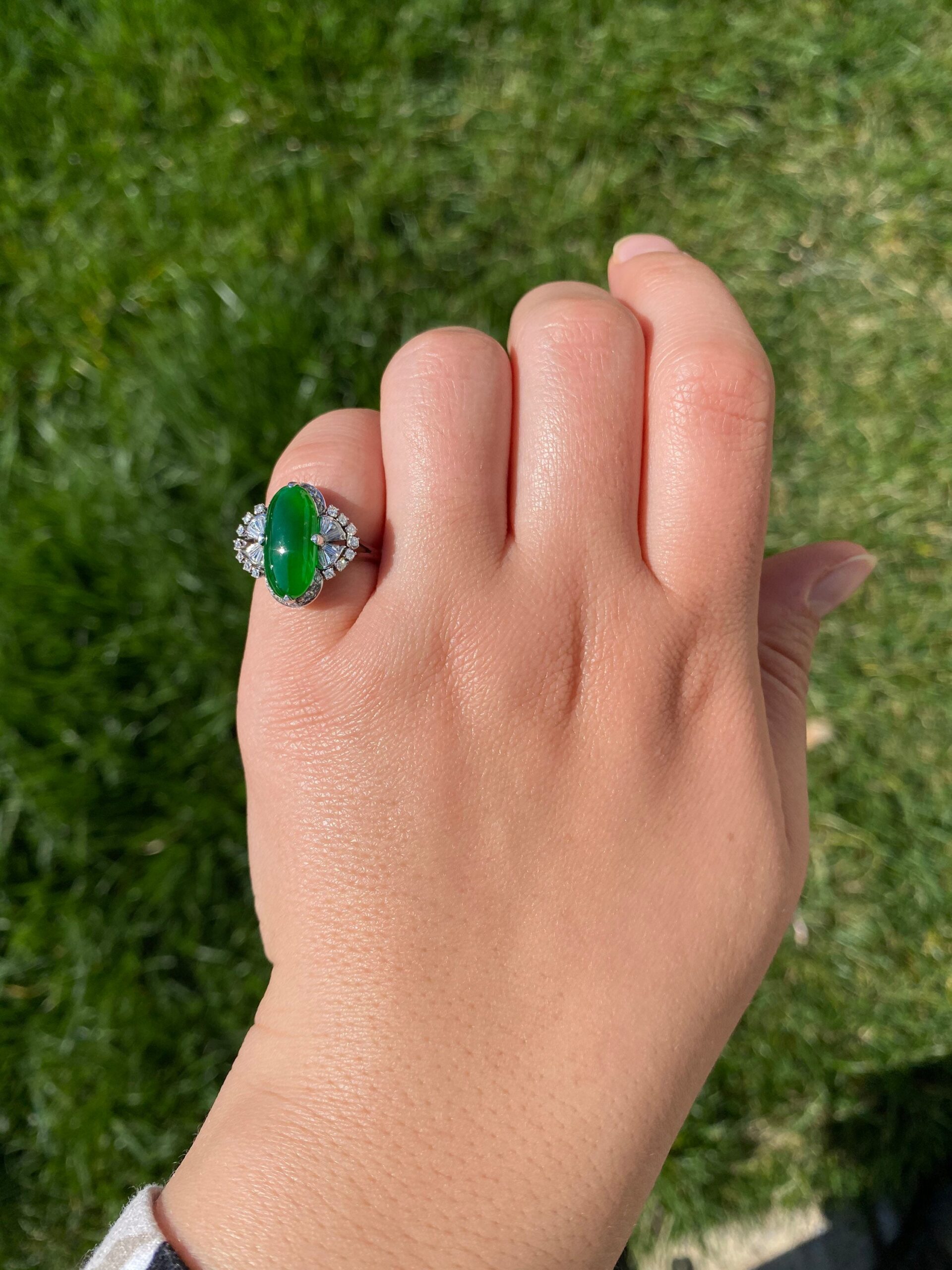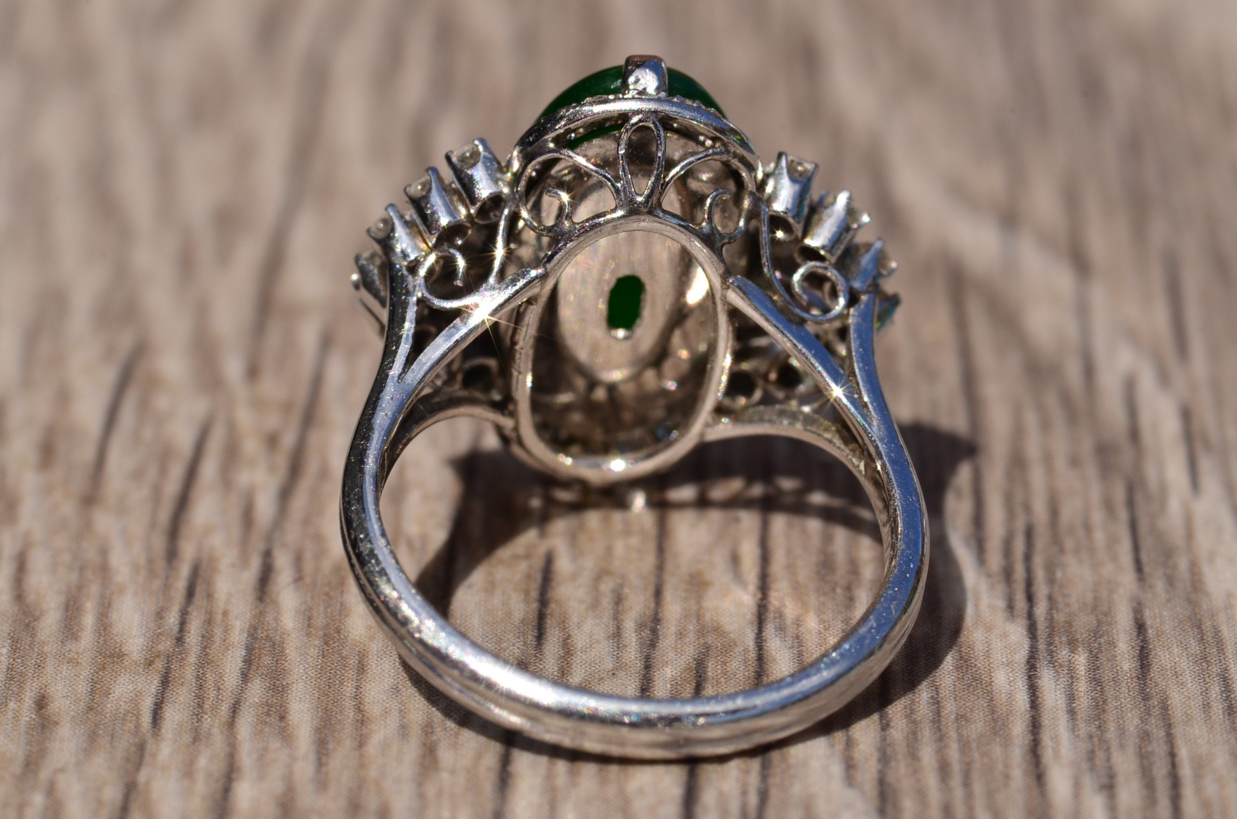 The Shanghai: Outstanding Signed Imperial A  Fei Cui Jadeite Jade Ring in Platinum set with Diamonds - Image 10