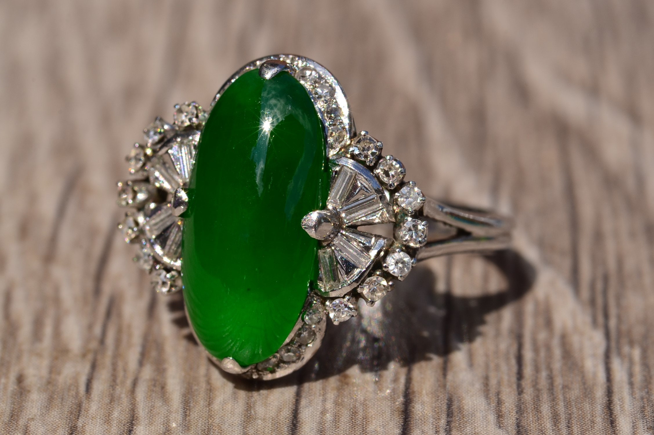 SKU: 1207 Categories: All Antique & Vintage Engagement Rings, All Antiquities & Vintage, Antique & Vintage Cocktail Rings, Cocktail Rings, Colored Stone Engagement Rings, Engagement Rings, From The Vault, Hollywood Glam Jewelry, Signed Jewelry Tags: antique, antique ring, cocktail ring, designer, designer ring, diamond, diamond ring, green jade ring, imperial a jade, imperial a jadeite, Jade, jade ring, jadeite, Ladies, ladies' ring, platinum, platinum ring, ring, signed, signed ring, statement ring, vintage, vintage ring