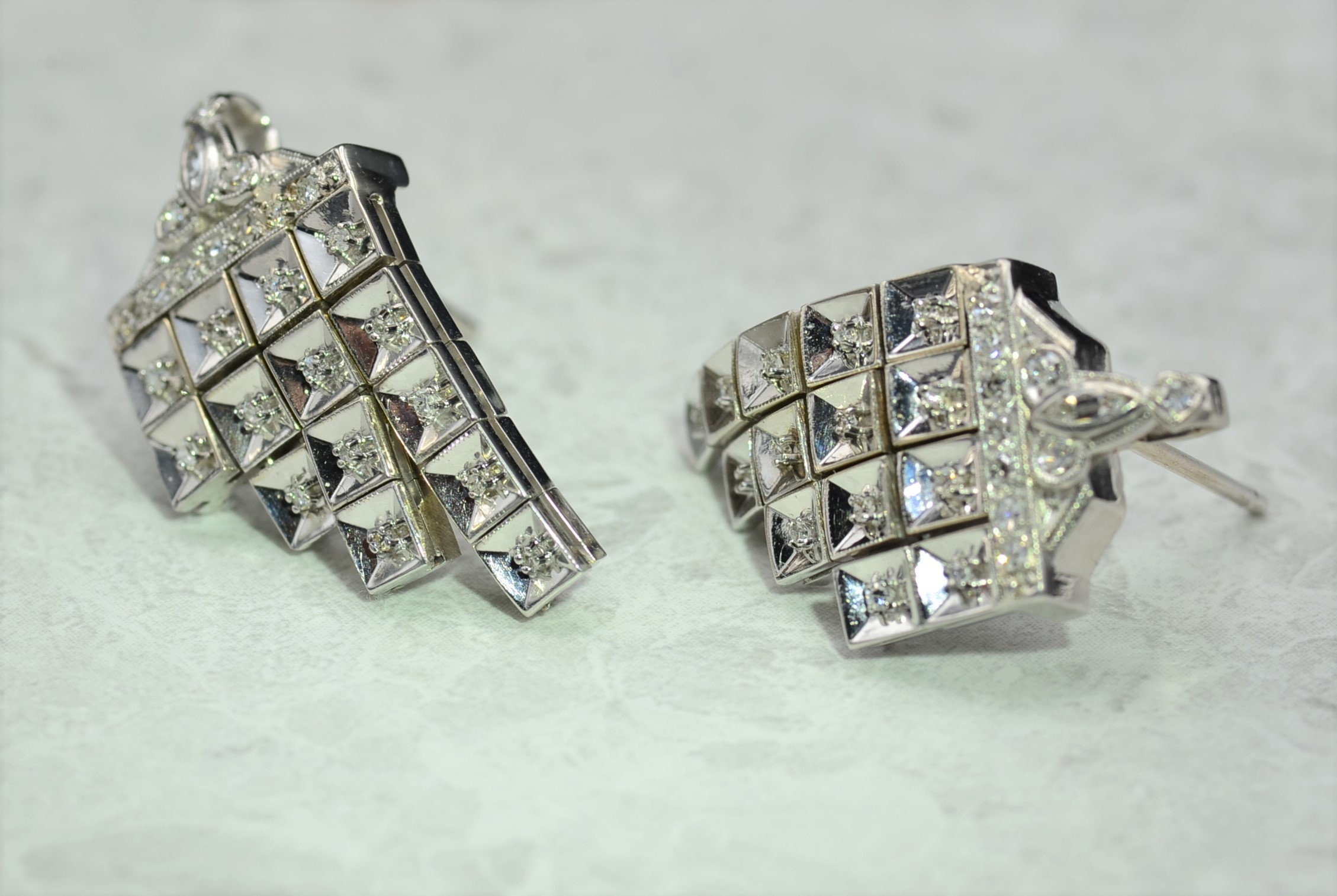Elaborate Antique Platinum Diamond Dangler Earrings. These lively antique dangler earrings are crafted in durable platinum and feature 0.60 total carats of old cut diamonds throughout. The drop sections pivot and swing with movement. Lightweight and comfortable to wear, these earrings provide excellent movement between the sections. At 1 inch in length, these earrings are incomparable to any others.