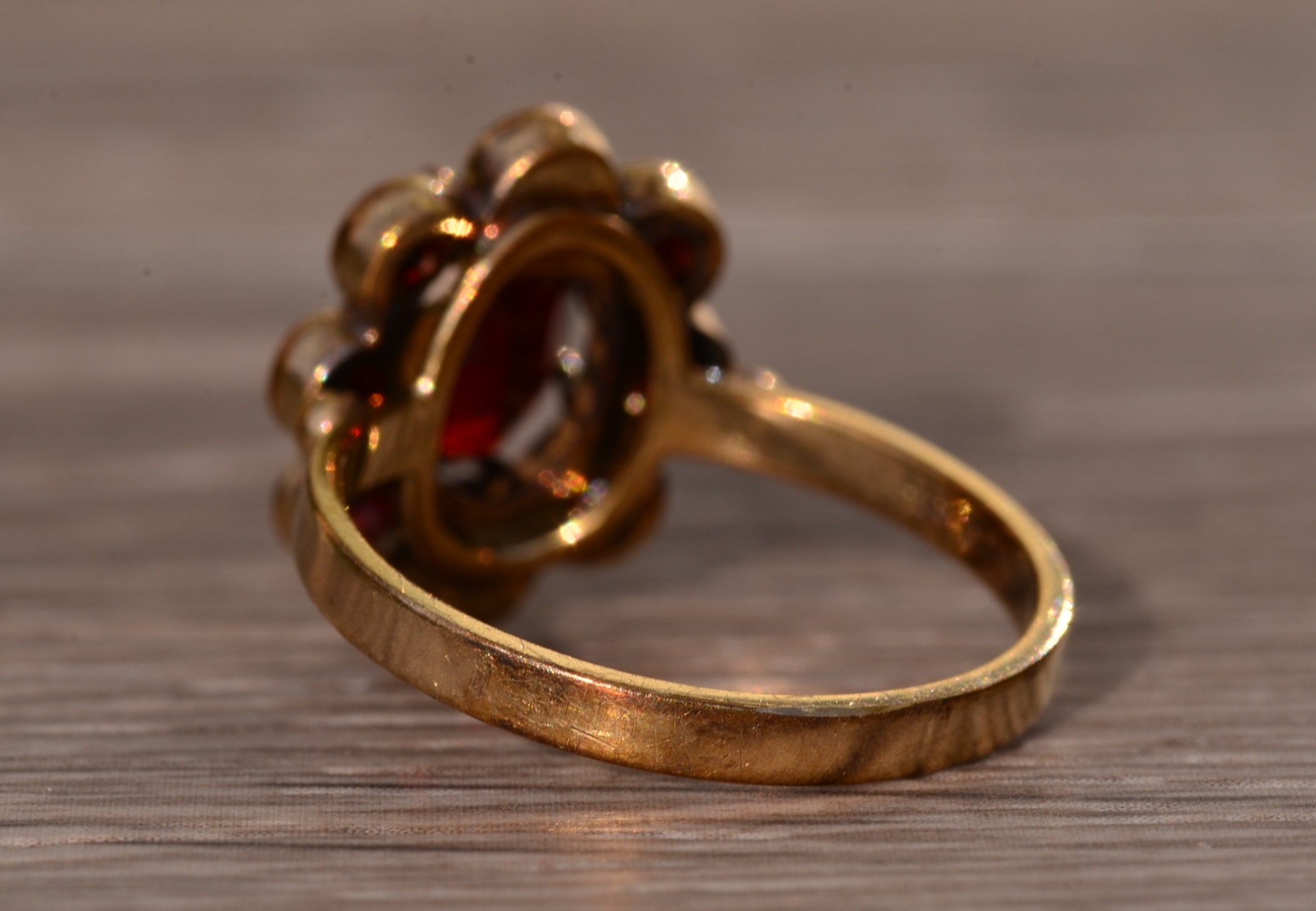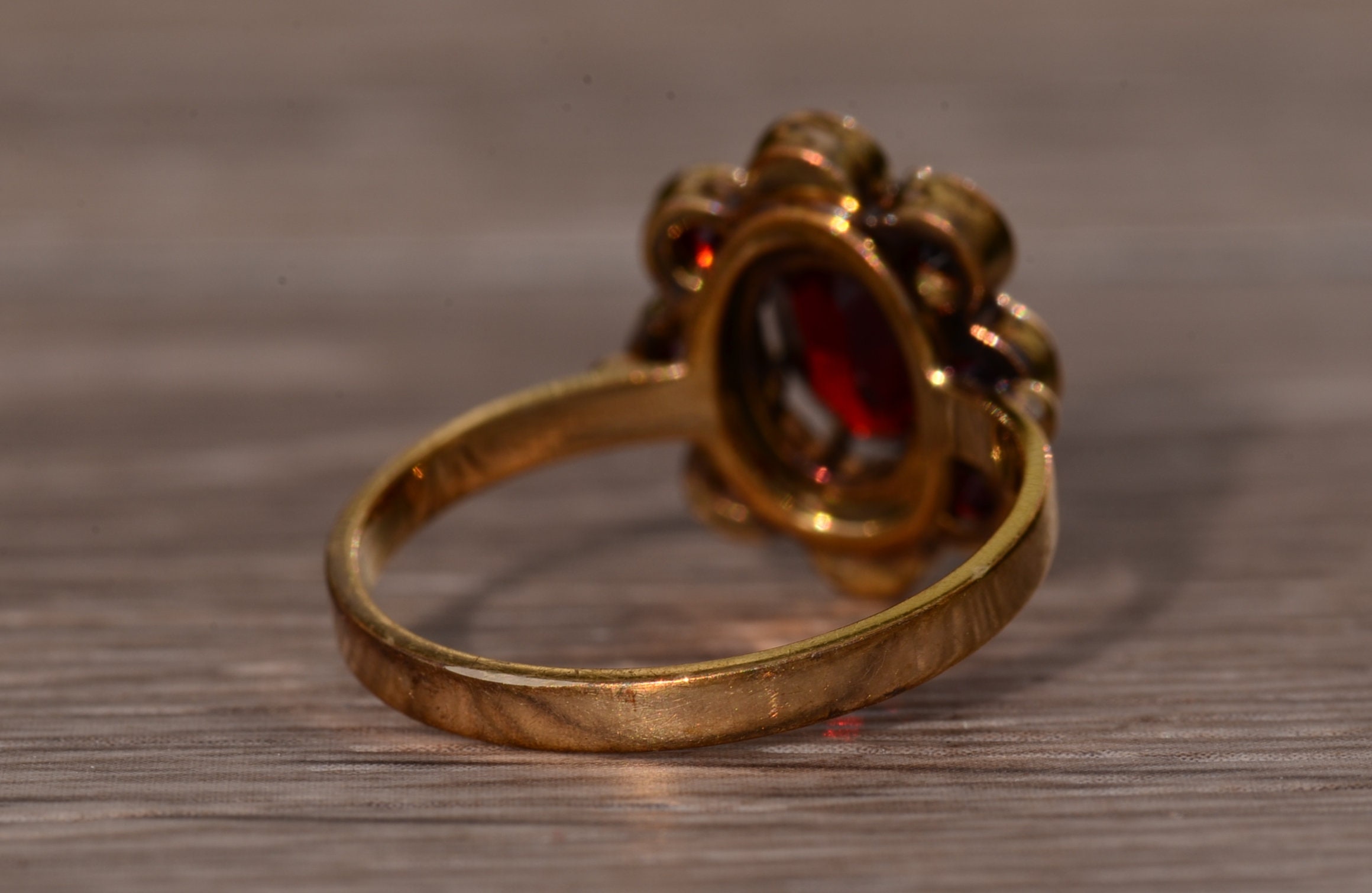 The St Augustine: Bohemian Rose Cut Garnet Ring in Yellow Gold